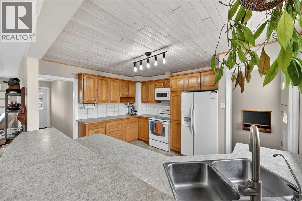 ACREAGE FEEL with the convenience of in-town living! This nearly HALF ACRE PROPERTY offers the privacy you’ve been searching for. Ideally located on the edge of town where you can enjoy peaceful sunrises from your private back deck and watch the sunsets from the spacious front deck. The OVERSIZED (32' x 24') HEATED SHOP is a standout feature with 12’ ceilings, a 10’ door, subpanel, and 220 power—perfect for hobbyists, storage, or a workshop. The shop roof was replaced in 2025. This solid BUNGALOW, with almost 2,300 sq ft of developed space, blends character and peace of mind, having been moved onto a new raised concrete foundation in 2001, completed with Delta MS and Delta FL water control measures. The main floor features original hardwood throughout, a bright and spacious living and dining area with access to the back patio, and a functional kitchen with an abundance of solid cabinetry. Down the hall are three generously sized bedrooms and a full 4-piece bathroom. The fully developed basement adds flexibility with a fourth bedroom, another full bathroom, and a massive rec room ideal for a teenager’s retreat, home gym, or games space. Stay comfortable year-round with CENTRAL A/C, and enjoy the benefits of updated plumbing and electrical. The home is serviced by a well—no water bill—and includes a filtration system, water softener, and reverse osmosis for added comfort. Outside, the fully fenced yard offers plenty of room for kids and pets, along with a firepit, raised garden beds, a storage shed, plus RV parking within the fenced yard. Out front there is ample parking for vehicles, trailers, or guests, as well. Located in the growing community of Langdon with great schools, shopping, restaurants, and a golf course nearby, this property truly delivers the best of country living with town convenience. Call your favourite realtor to view today! (id:63190)