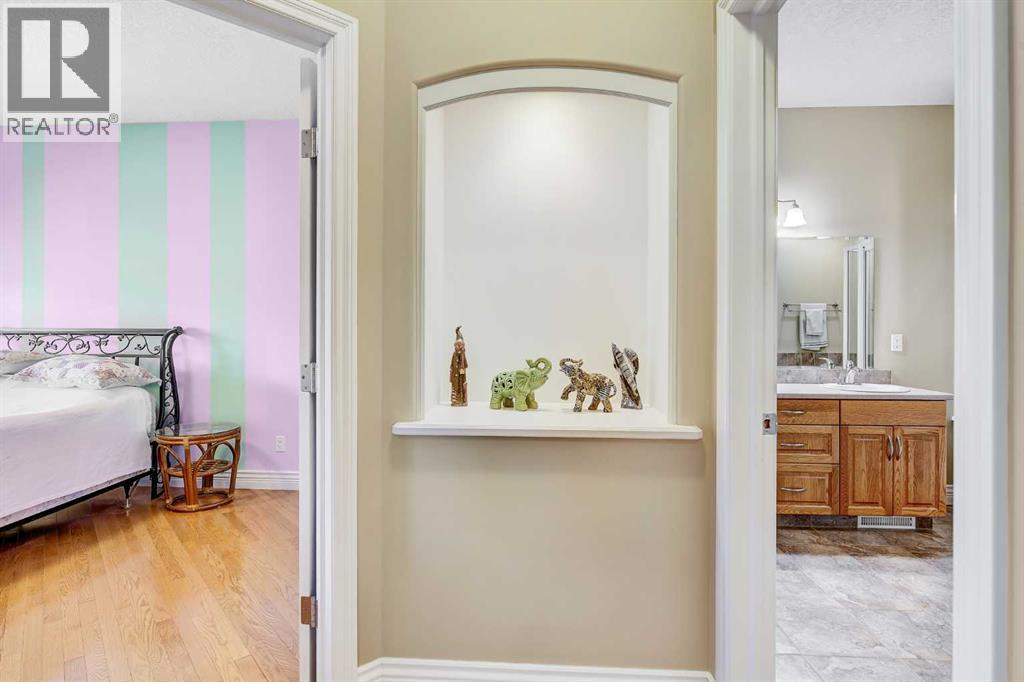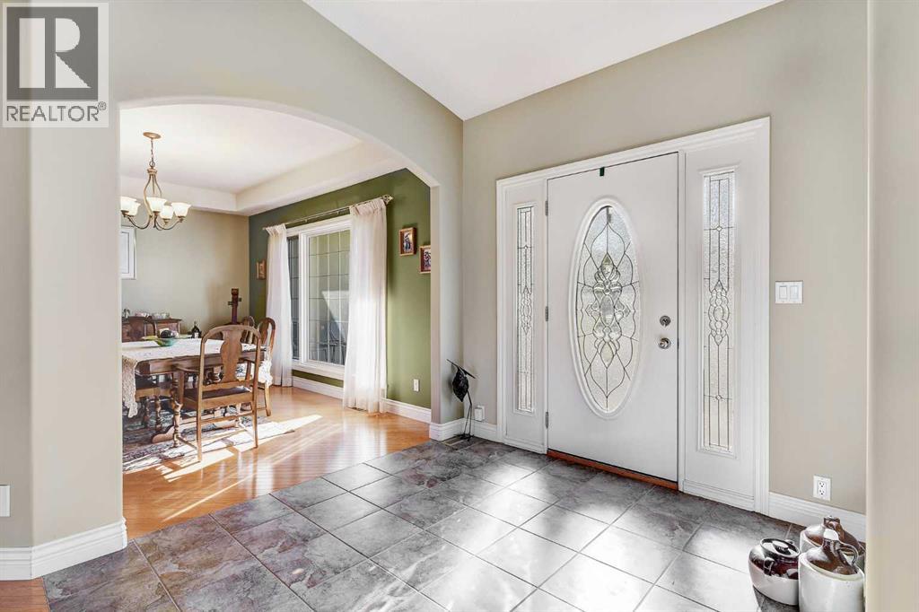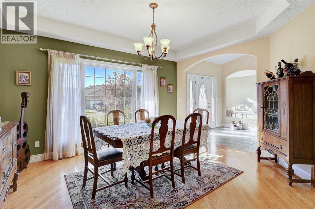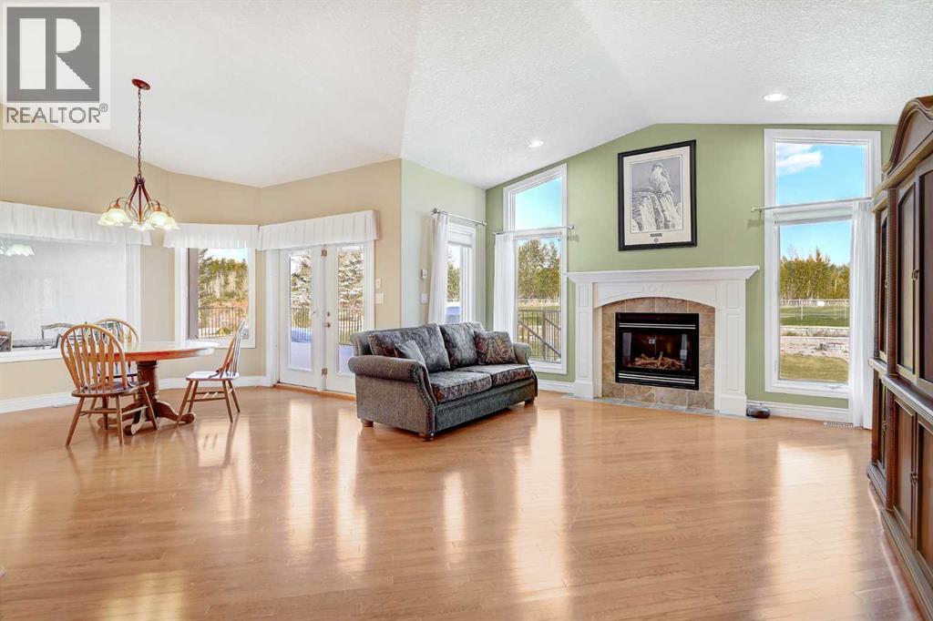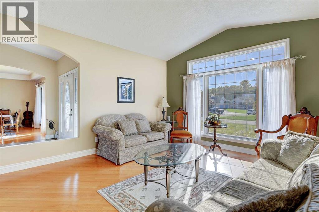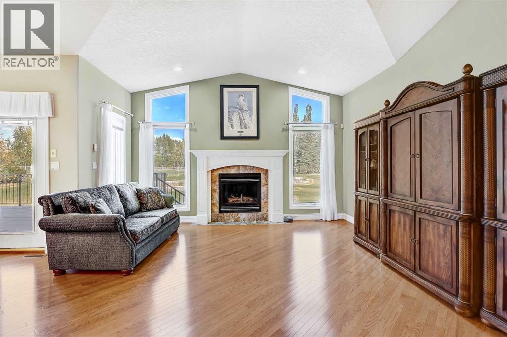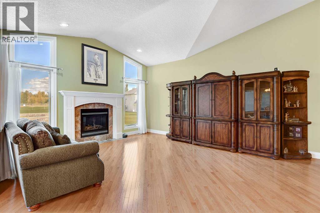 Backing directly onto the Dunes Golf Course, this custom bungalow offers room for both daily family life and entertaining. Hardwood floors run throughout the main level, setting a warm tone the moment you step inside. Off the foyer, a formal dining room with a trayed ceiling and a large window is made for dinner parties, while the vaulted living room offers another refined space for conversation. The kitchen opens up with solid wood cabinetry, a center island, tiled flooring, stainless steel appliances, and nearly 20 ft vaulted ceilings. The walk-in pantry provides even more storage. The breakfast nook, surrounded by windows and patio doors, frames uninterrupted views of the Dunes Golf Course. From here, the vaulted ceilings continue into the family living room, where a gas fireplace anchors the room and tall windows fill it with natural light. The generous size allows kids to sprawl with toys or homework while still keeping everyone connected. The primary suite sits privately on one side of the main floor, with patio doors opening directly onto the deck. With trayed ceilings, room for a king bed plus a sitting area, and a generous walk-in closet with shelving for every season, it feels like a retreat at the end of the day. The ensuite includes a soaker tub, walk-in shower, and wide vanity, while an adjoining jack and jill half bathroom gives opportunity for a primary with dual bathrooms. On the other side of the main floor you’ll find two additional spacious bedrooms and a full bathroom with a soaker tub and shower. A large laundry and mudroom with extensive cabinetry, a sink, and closets completes the main level. A curved staircase leads down to the finished basement with 9-foot ceilings and in-floor heating. The family room here is expansive, with space for billiards, a play area, or another family room. Two oversized bedrooms, full bathroom, and a massive storage room with built-in shelving extend the home’s functionality. The theatre room makes nights in feel s pecial, complete with a projector, large screen, and built-in speakers. A full wet bar with a sink, dishwasher, fridge, and cabinetry turns it into an unparalleled snack zone, keeping the evening flowing without needing to head upstairs. A half bathroom sits nearby for convenience. Outside, the yard is designed to be lived in. Paver walkways lead to a firepit, while the large deck with a gas line and hot tub overlook the golf course with no rear neighbours.The triple car garage offers not only parking, but space and security for vehicles, golf carts, and toys. This home is rounded out with a A/C, central vac, built-in sound system, double-pane windows, and city water. That’s not all, say goodbye to shovelling your driveway!! That’s right, the large driveway is cleared for you all winter long. - for a fee. Spacious, quiet, and set in one of Grande Prairie’s most prestigious neighbourhoods, this property offers a lifestyle few homes can match. Call your REALTOR® (id:63190)