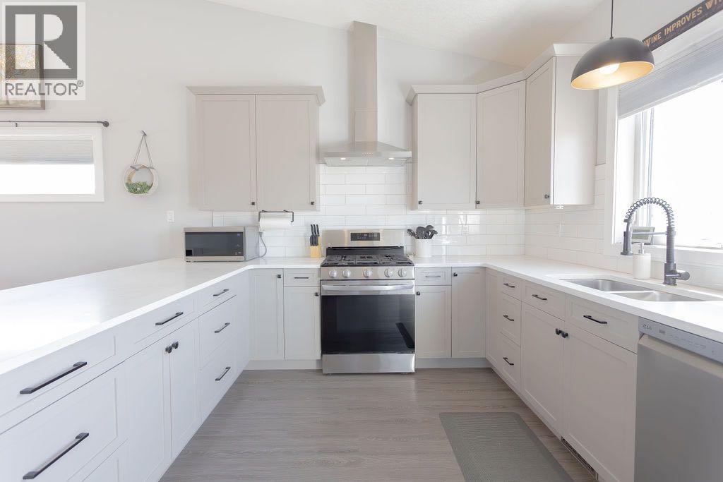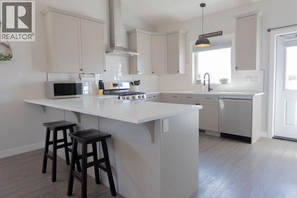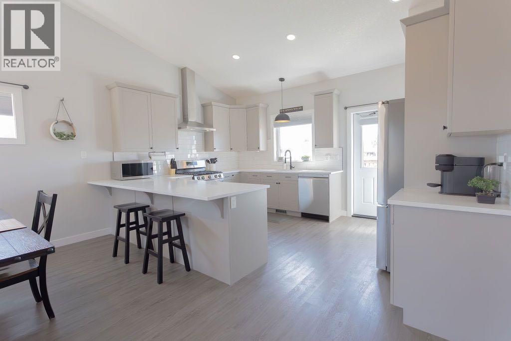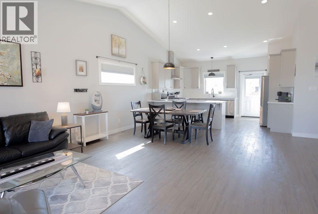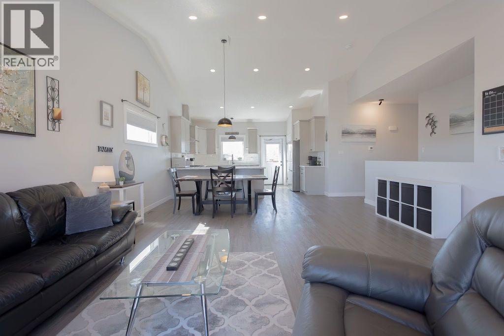 This exceptional, move-in ready home delivers a true “wow” factor from the moment you step inside. The bright, open-concept main floor showcases a spacious kitchen and living area filled with natural light, enhanced by soaring vaulted ceilings and recessed lighting for a refined, modern feel. The kitchen is beautifully appointed with quartz countertops, stainless steel appliances, and sleek finishes, while luxury vinyl plank flooring flows seamlessly throughout the main level.The main floor also features a stylish 4-piece bathroom and three generously sized bedrooms, including an impressive primary suite with a walk-in closet and a contemporary 3-piece ensuite.The fully finished basement offers exceptional additional living space, highlighted by 9-foot ceilings that create an open, airy atmosphere. Here you’ll find a large family/recreation room ideal for movie nights or entertaining, along with two additional spacious bedrooms, a modern 4-piece bathroom, laundry area, and utility room. Step outside to enjoy the rear deck and fully fenced backyard, perfect for relaxing or entertaining. Backing onto permanent green space, this property offers added privacy and direct access to walking trails, providing a convenient route to the nearby brand new elementary school and Rotary all-seasons park. Additional features include central air conditioning for year-round comfort and a heated, attached double garage for everyday convenience.This beautifully maintained property offers the perfect blend of style, function, and location—an outstanding opportunity to enjoy modern living at its finest. Be sure to check out the 3D virtual tour and get ready to call this place home! (id:63190)