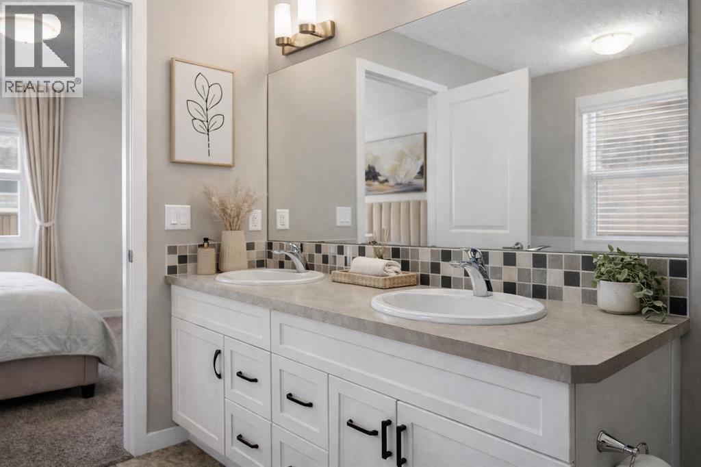 OPEN HOUSE SAT APRIL 18th 12-2pm & SUN APRIL 19th 12-2PM !! Welcome to 6 Kingsbury Close SE—FULLY FINISHED 2-storey home in impeccable condition, nestled in the sought-after community of Kings Heights, offering stunning west-facing mountain views paired with true turn-key, show home quality living. From the moment you arrive, the pride of ownership is undeniable. The home features a recently painted exterior, a fully landscaped yard complete with a dog run, and a heated, attached double garage. Step inside to a thoughtfully designed front entry with a built-in bench, ideal for keeping everyday life organized and functional. The main floor showcases a bright and airy open-concept layout, enhanced by beautiful hardwood flooring and large windows that flood the space with natural light. At the heart of the home is a timeless white kitchen, featuring granite countertops, a spacious pantry, and newer high-end stainless steel appliances. The kitchen flows effortlessly into the dining and living areas, where a cozy gas fireplace creates a warm and inviting focal point—perfect for both relaxed evenings and entertaining guests. Upstairs, you’ll find 3 generously sized bedrooms, including a primary retreat complete with a large walk-in closet and a spa-inspired ensuite featuring a double vanity, deep soaker tub, and separate shower. A spacious bonus room with soaring ceilings offers incredible versatility—ideal for a media room, play space, or home office—while upper-level laundry adds everyday convenience. The fully developed basement extends your living space with 2 additional bedrooms, a 3pc bathroom, and a substantial storage area, providing flexibility for growing families, guests, or multi-purpose use. This home is loaded with upgrades designed for comfort and efficiency, including central air conditioning, 16 solar panels, a brand new hot water tank, water softener, reverse osmosis water filtration system, smart lighting, and flood detection sensors. A sprinkler system rough-in is also in place for future ease. Perfectly situated in a family-friendly neighbourhood, just steps from schools, parks, scenic walking paths, and a nearby pond, this location offers the ideal balance of lifestyle and convenience. This is a rare opportunity to own a home that truly delivers on style, function, and condition—all in one of Airdrie’s most desirable communities. Call today to view! (id:63190)