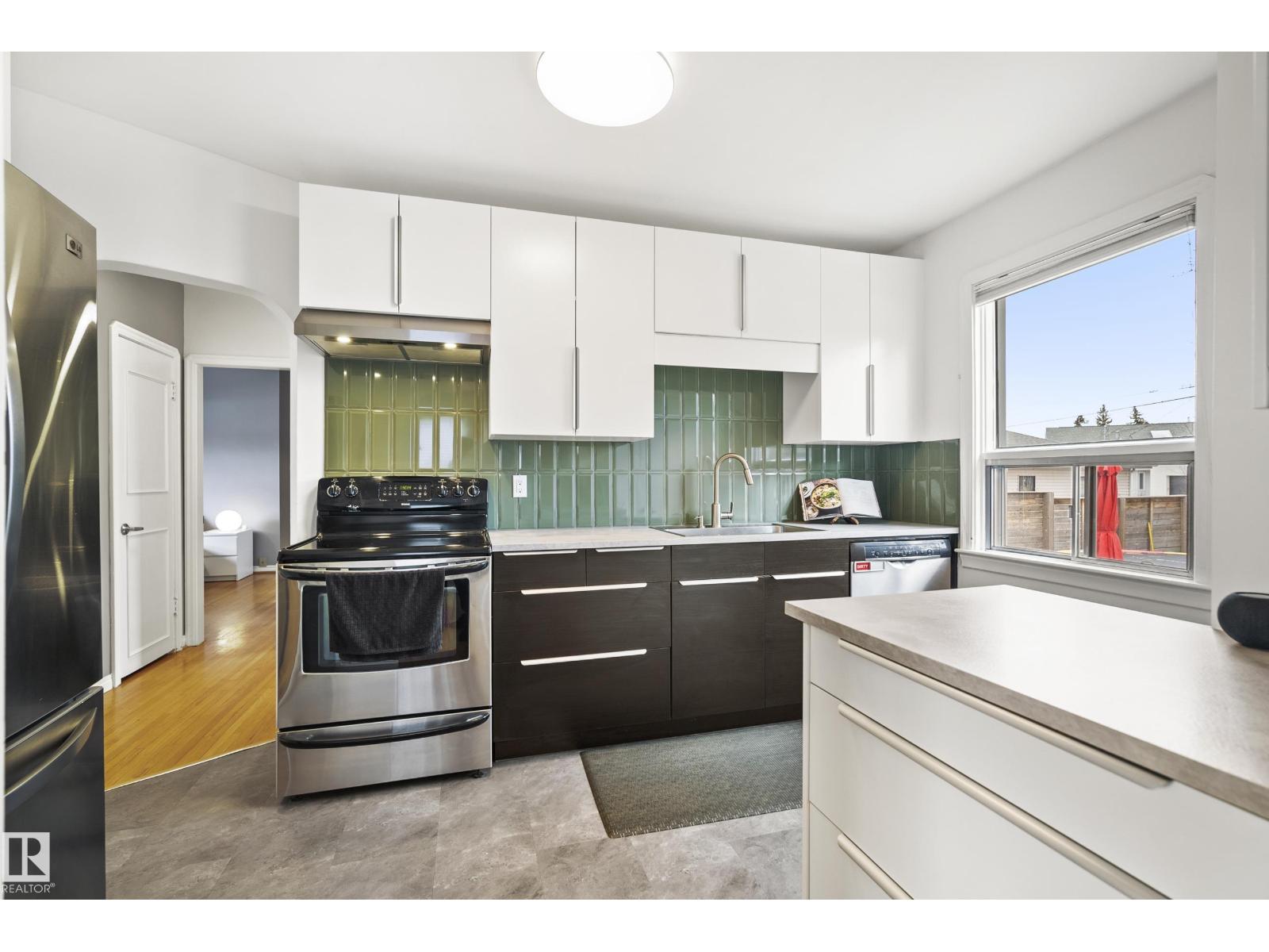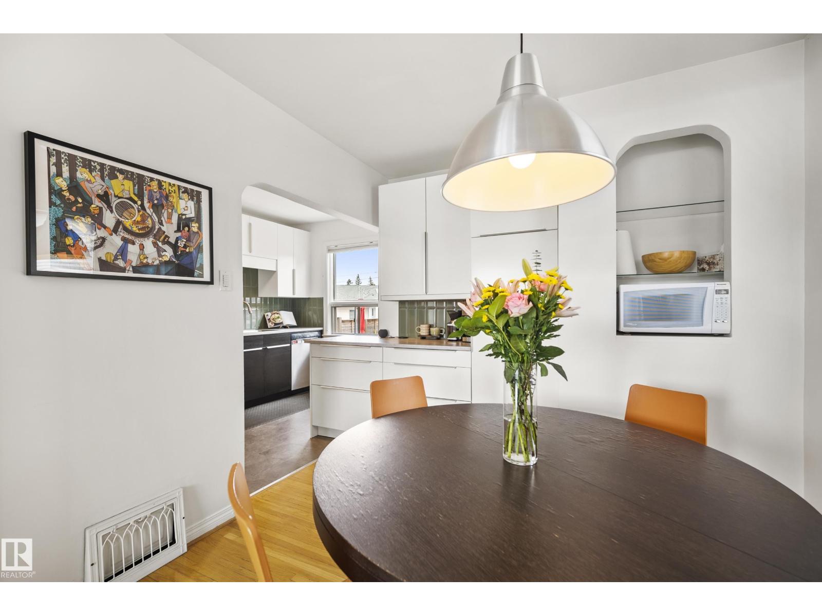 Welcome to this move in ready 1.5 storey home in the highly sought-after community of North Glenora! Offering 1,363 sq.ft. of living space, this property features 5 bedrooms and 1.5 bathrooms—perfect for growing families or those needing extra space. You’ll love the blend of character and modern updates, including original hardwood floors, a beautifully renovated kitchen, updated bathrooms, and a new roof for peace of mind. The oversized double detached garage is a standout feature, complete with a central drain, built-in cabinetry, and additional attic storage space—ideal for organization and functionality. Situated on a large lot, the south facing backyard provides plenty of space for kids to play or for outdoor entertaining. Enjoy an unbeatable central location—just 10 minutes to downtown, quick access to major roadways, and walking distance to grocery stores and everyday amenities. Close to three major high schools and within minutes to Grant MacEwan University and the University of Alberta. (id:63190)