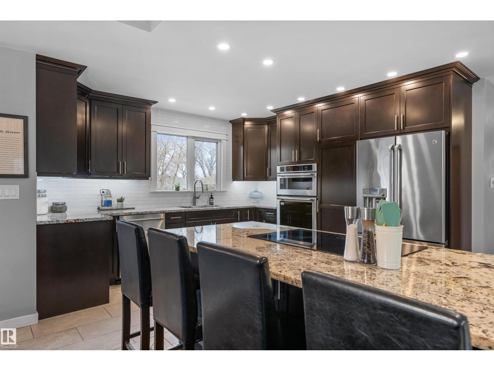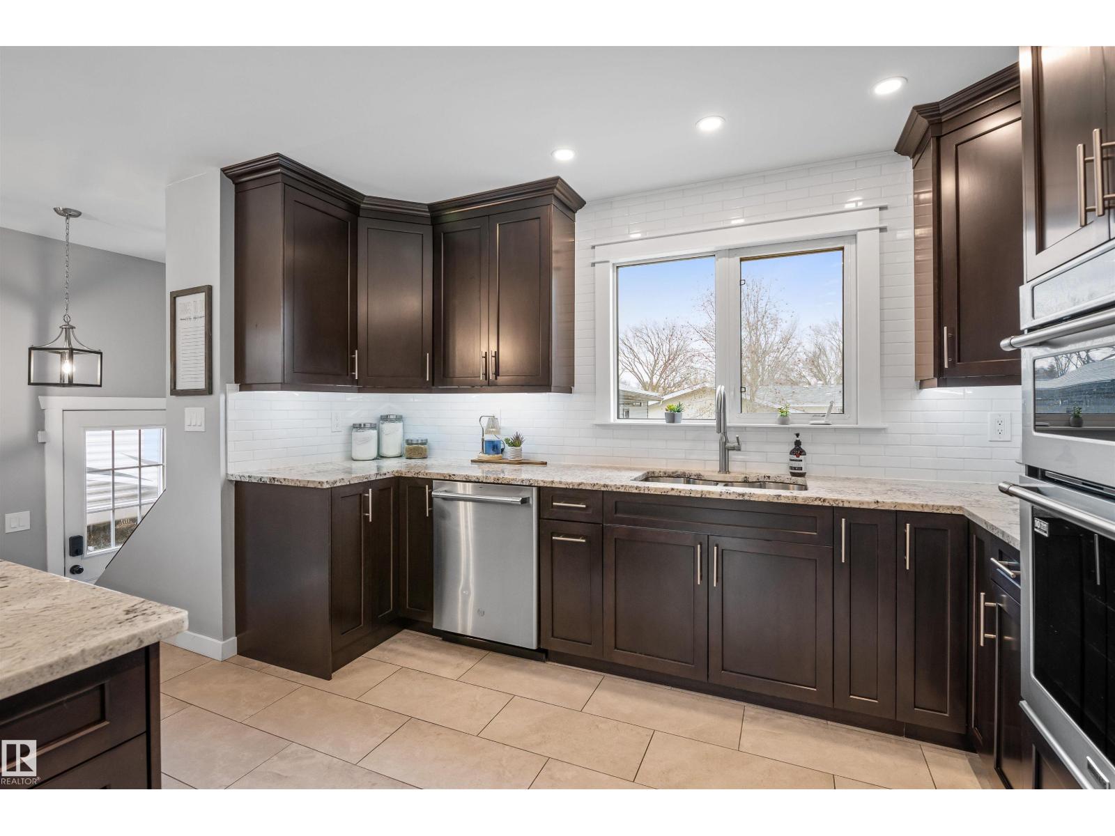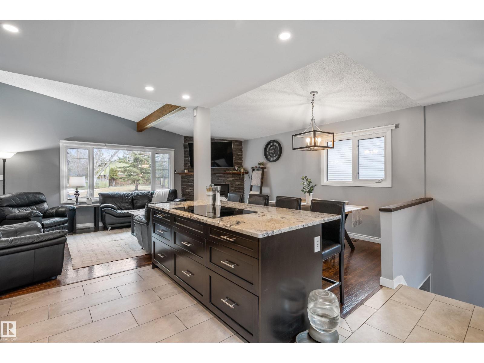 On a mature street in Pineview, discover this FULLY RENOVATED & spacious BUNGALOW. The entrance welcomes guests w/ laminate flooring that spreads through most of the main floor. There are soaring VAULTED CEILINGS w/ open beams in the main living areas. The living room has a corner gas f/p. The chef's kitchen feat a huge eating bar island, pantry, built-in oven, GRANITE countertops, full height cabinetry w/ crown trim, pot lighting, tile backsplash, pot/pan drawers & tile flooring. The dining room can accommodate large entertaining, as it is opens to the living room to expand the table. The renovated main 5pce bath has double sinks. There are 3 bedrooms. The primary bedroom has a 2pce ensuite. The basement has a large rec room, space for a gym & so much more. The media room has a ELECTRIC F/P. There is a 3pce bath w/ a JETTED TUB, under-stair storage & a mech/laundry room. The double detached HEATED garage (25x23) has OSB lined walls & a newer garage door. Enjoy privacy w/ a fully fenced & gated yard! (id:63190)