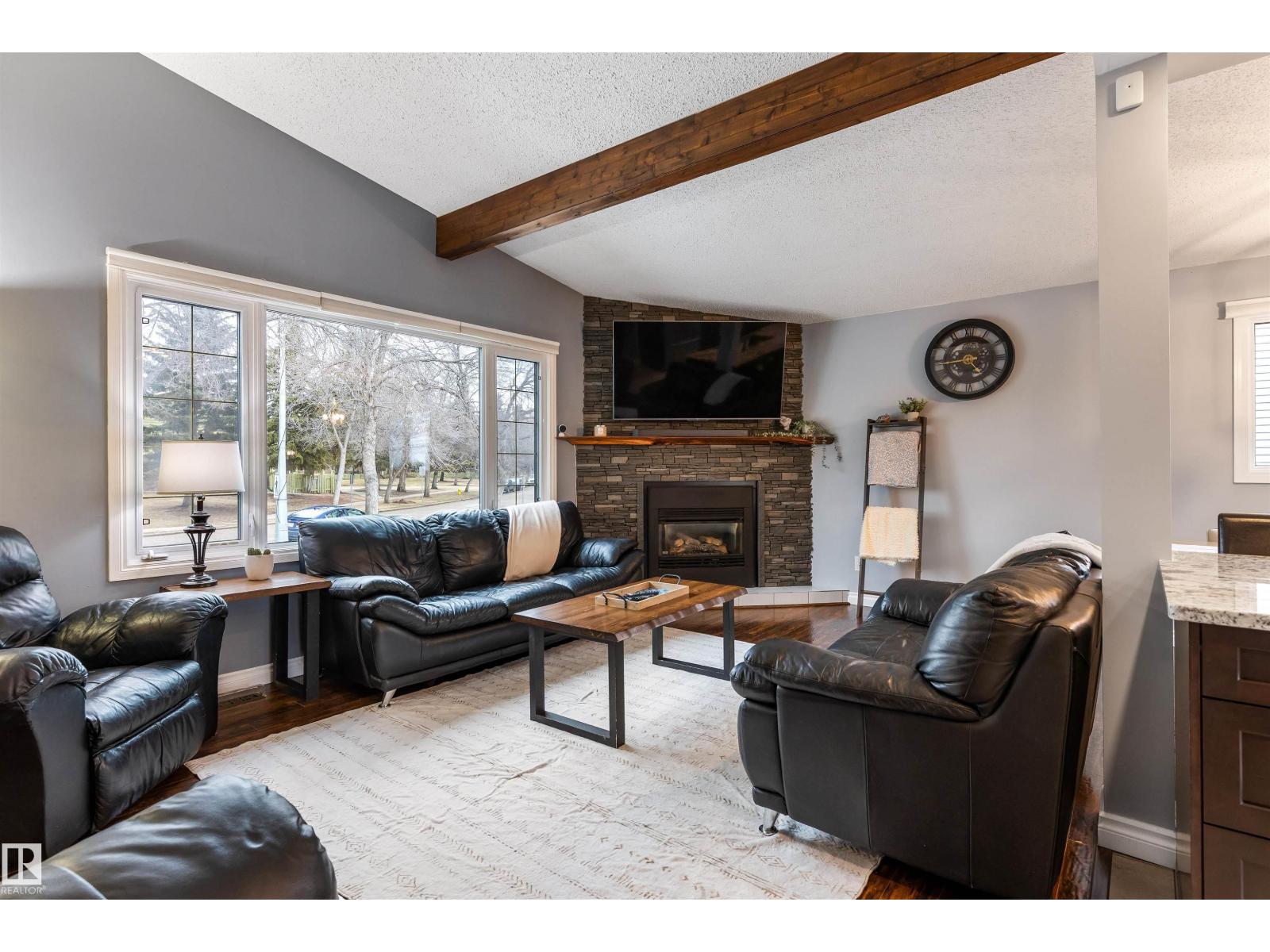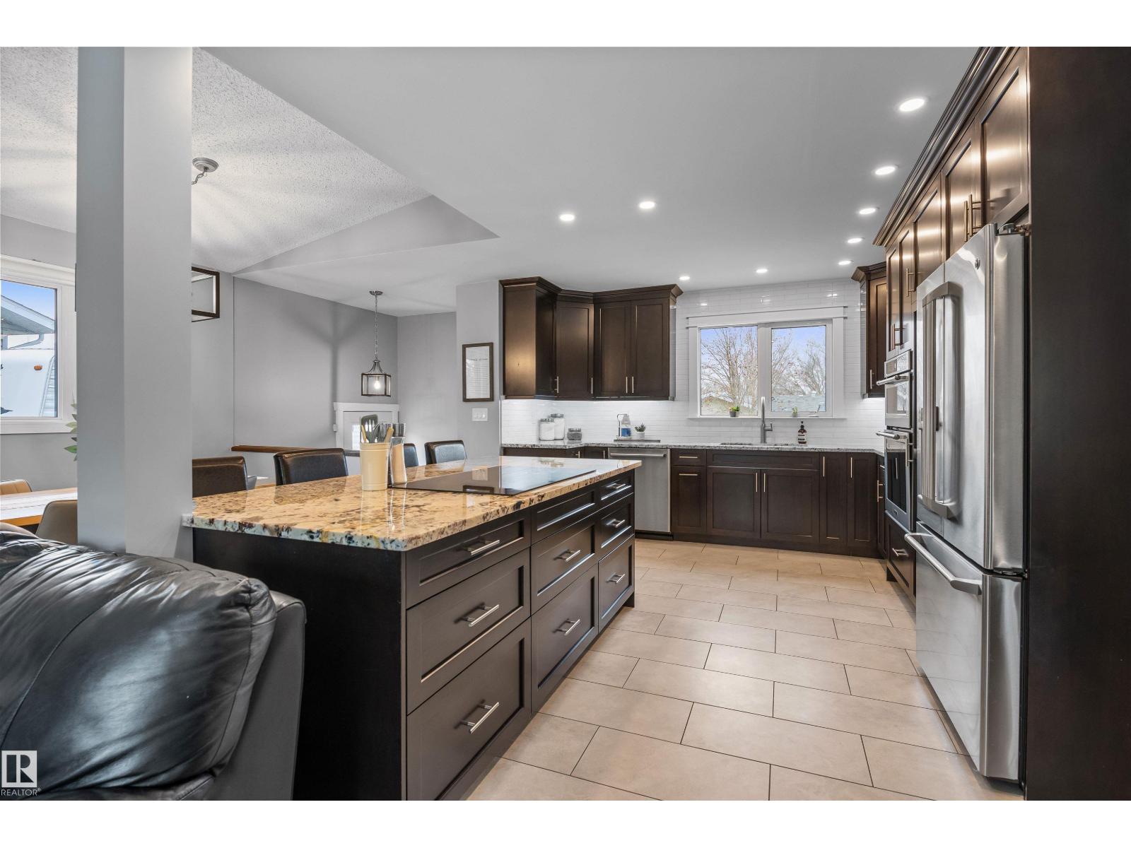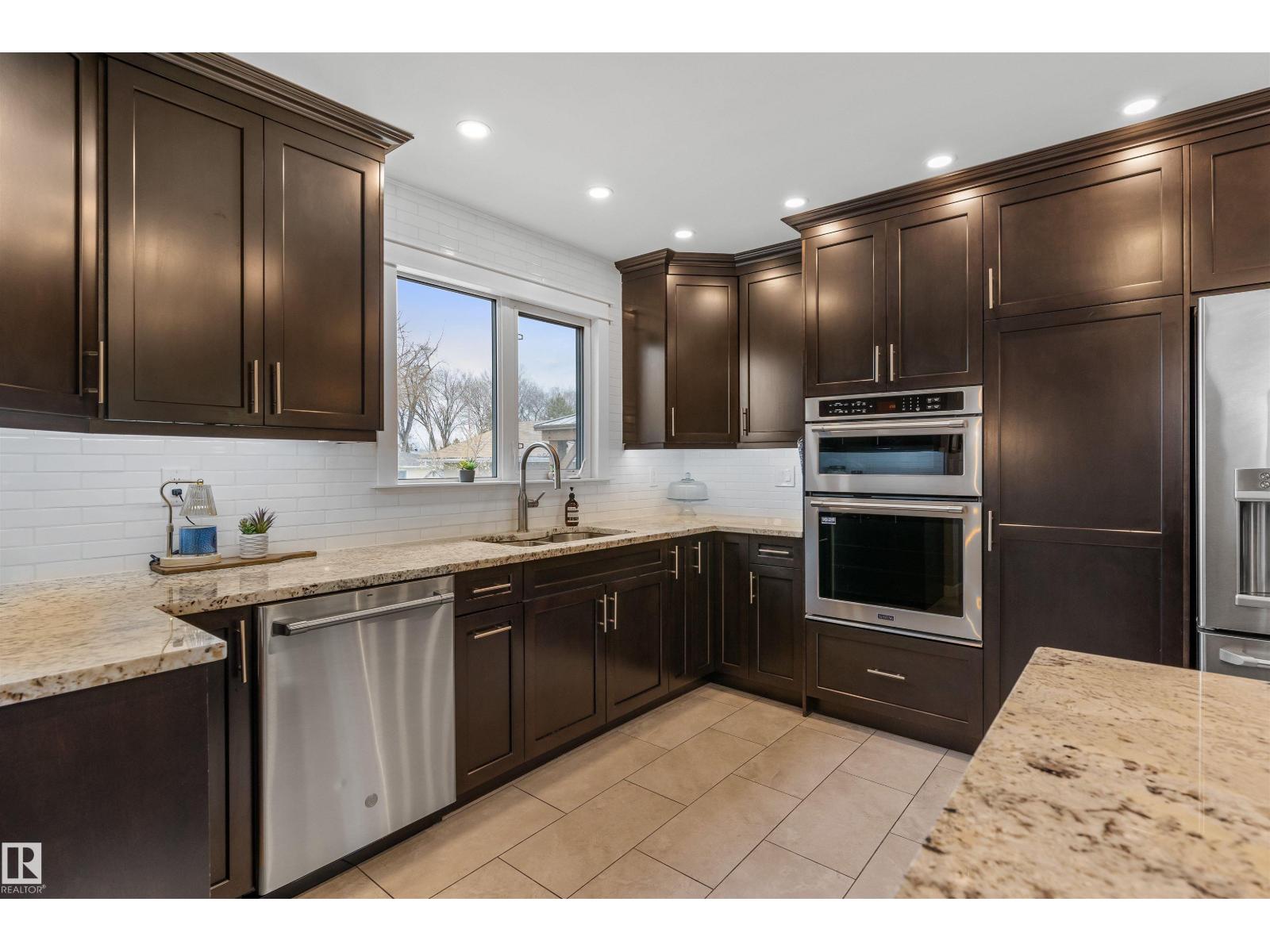 On a mature street in Pineview, discover this FULLY RENOVATED & spacious BUNGALOW. The entrance welcomes guests w/ laminate flooring that spreads through most of the main floor. There are soaring VAULTED CEILINGS w/ open beams in the main living areas. The living room has a corner gas f/p. The chef's kitchen feat a huge eating bar island, pantry, built-in oven, GRANITE countertops, full height cabinetry w/ crown trim, pot lighting, tile backsplash, pot/pan drawers & tile flooring. The dining room can accommodate large entertaining, as it is opens to the living room to expand the table. The renovated main 5pce bath has double sinks. There are 3 bedrooms. The primary bedroom has a 2pce ensuite. The basement has a large rec room, space for a gym & so much more. The media room has a ELECTRIC F/P. There is a 3pce bath w/ a JETTED TUB, under-stair storage & a mech/laundry room. The double detached HEATED garage (25x23) has OSB lined walls & a newer garage door. Enjoy privacy w/ a fully fenced & gated yard! (id:63190)