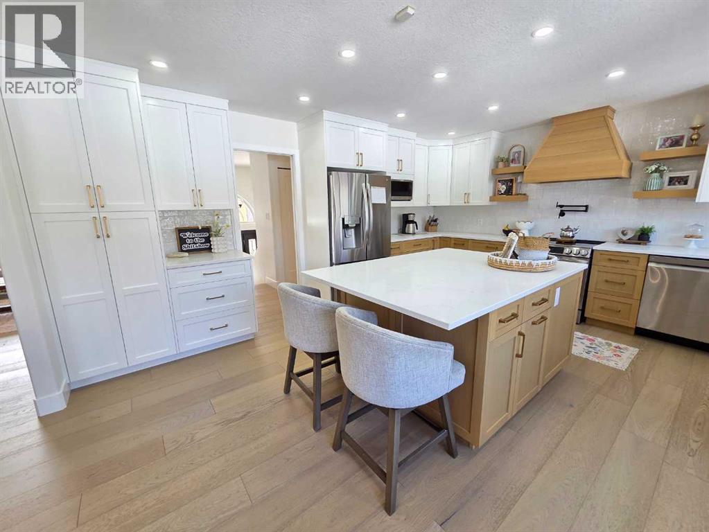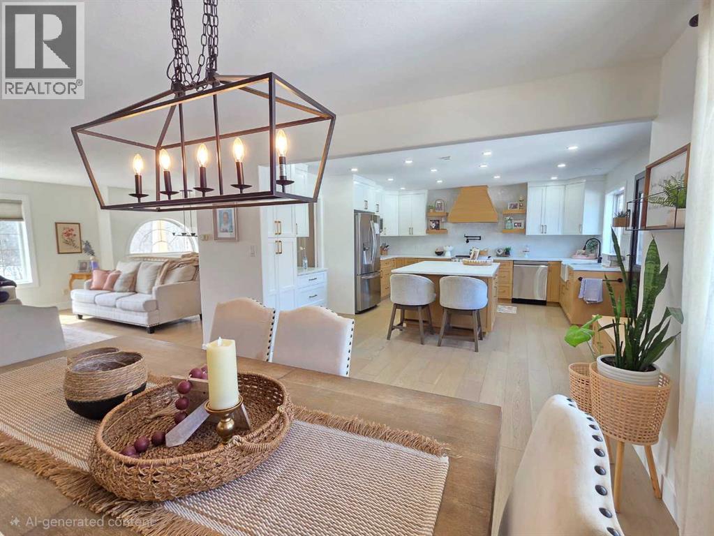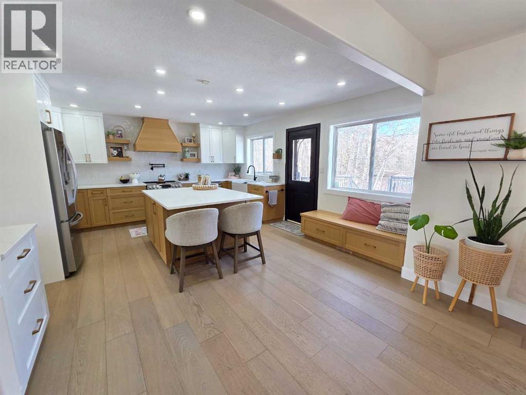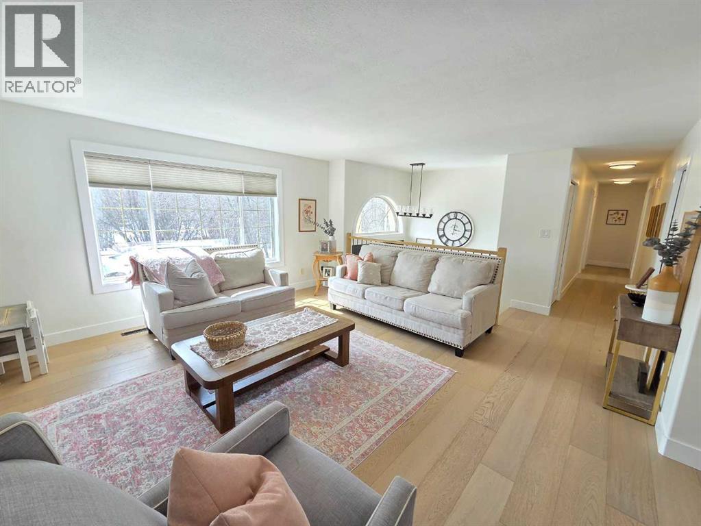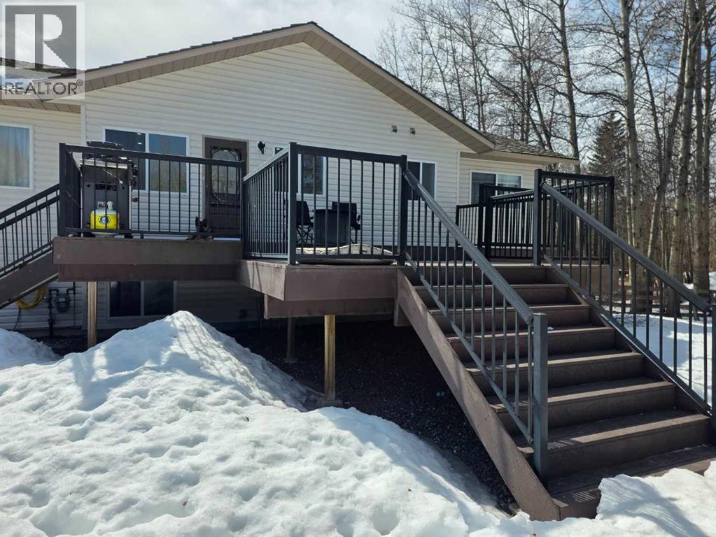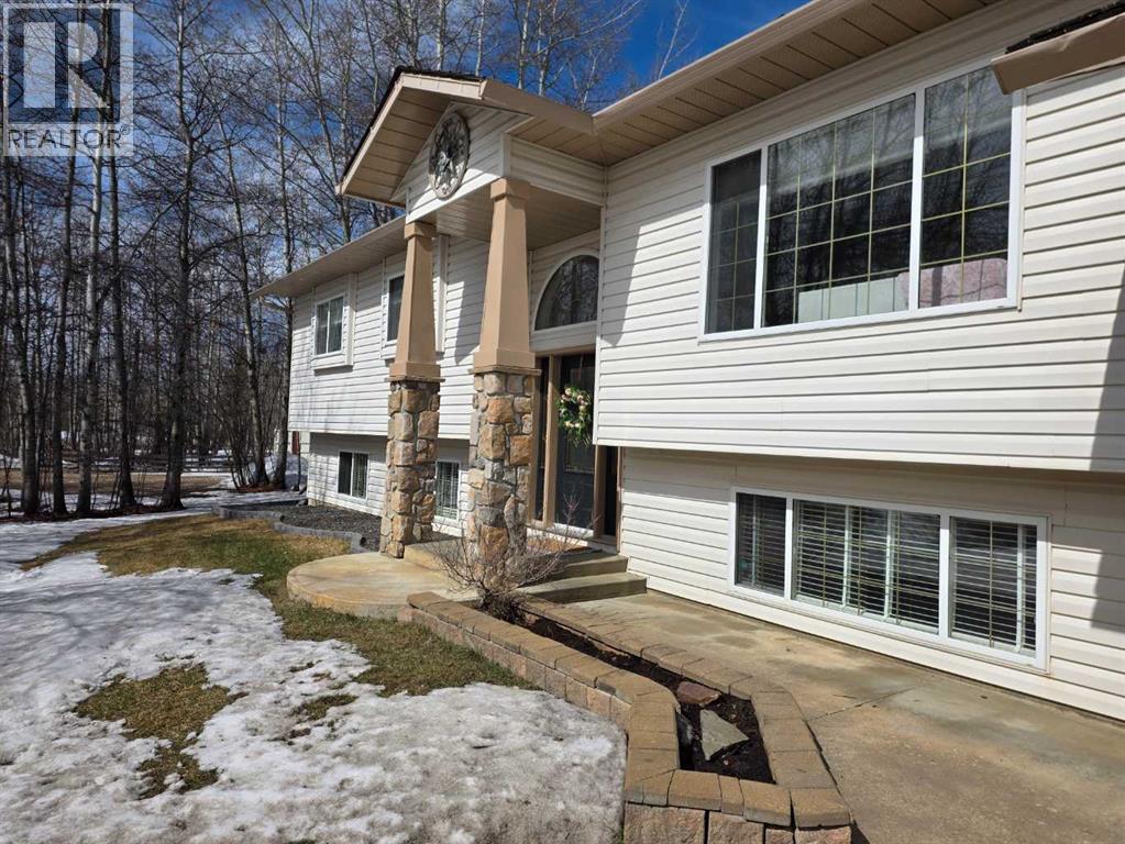 Looking for the perfect acreage just minutes from city limits—with pavement right to your front door? This property truly checks all the boxes!Situated on 4.27 acres, this private and treed setting offers a peaceful country feel, complete with a creek along the west side of the property—creating a beautiful natural backdrop and added privacy. This updated and well-maintained bi-level blends space, comfort, and convenience.Step inside to a stunning executive kitchen by Lafleur’s Cabinets, thoughtfully designed for entertaining. Featuring an island with an eating bar, a cozy breakfast nook, and a formal dining area, this space is both functional and inviting. The main floor has been extensively updated and offers three bedrooms, including a spacious primary suite with a walk-in closet and private ensuite.The bright and welcoming basement is filled with natural light and features a large family room with a gas fireplace, two additional bedrooms, a full bathroom, and a dedicated laundry room—perfect for growing families or guests.Outside, enjoy everything acreage living has to offer with an attached double heated garage, maintenance-free deck, playhouse, and a large garden area. There is also a separate, oversized gravel parking pad with its own west-side access—ideal for RVs, equipment, or additional vehicles.Peaceful country living with all the convenience of being just minutes from the city—this is a property you won’t want to miss. (id:63190)
