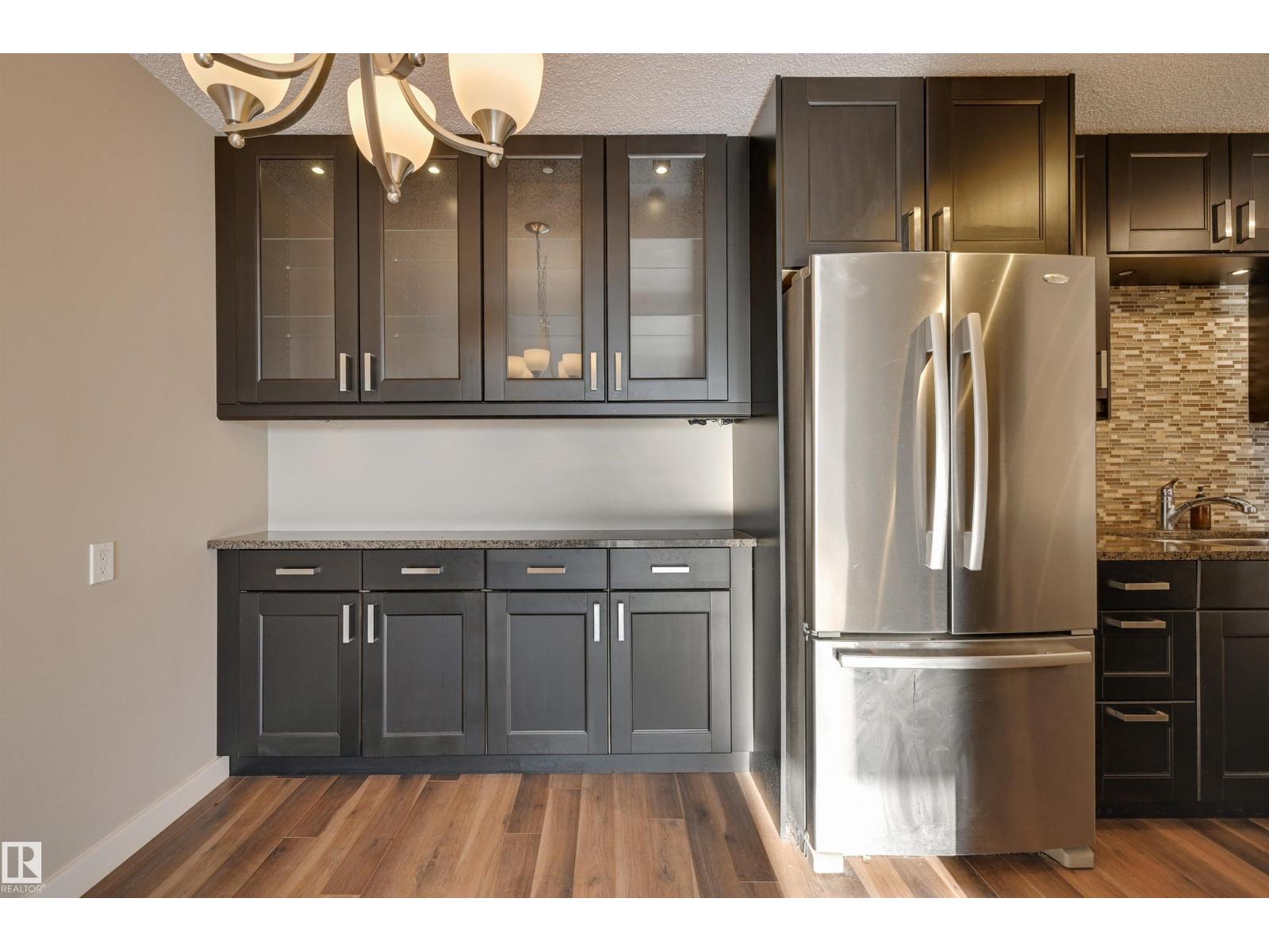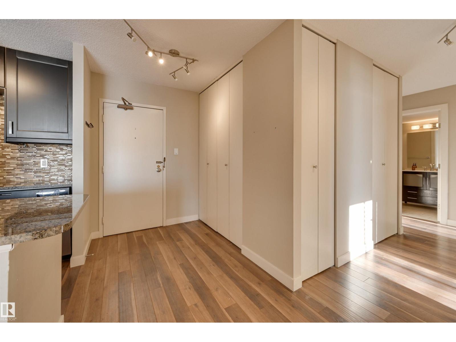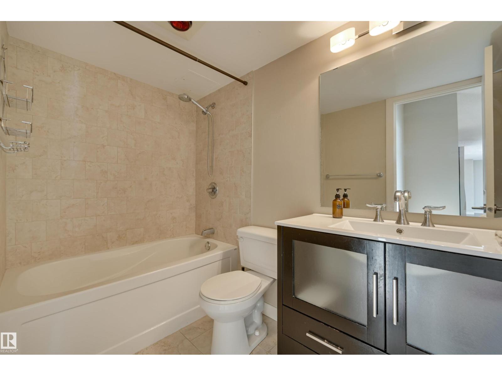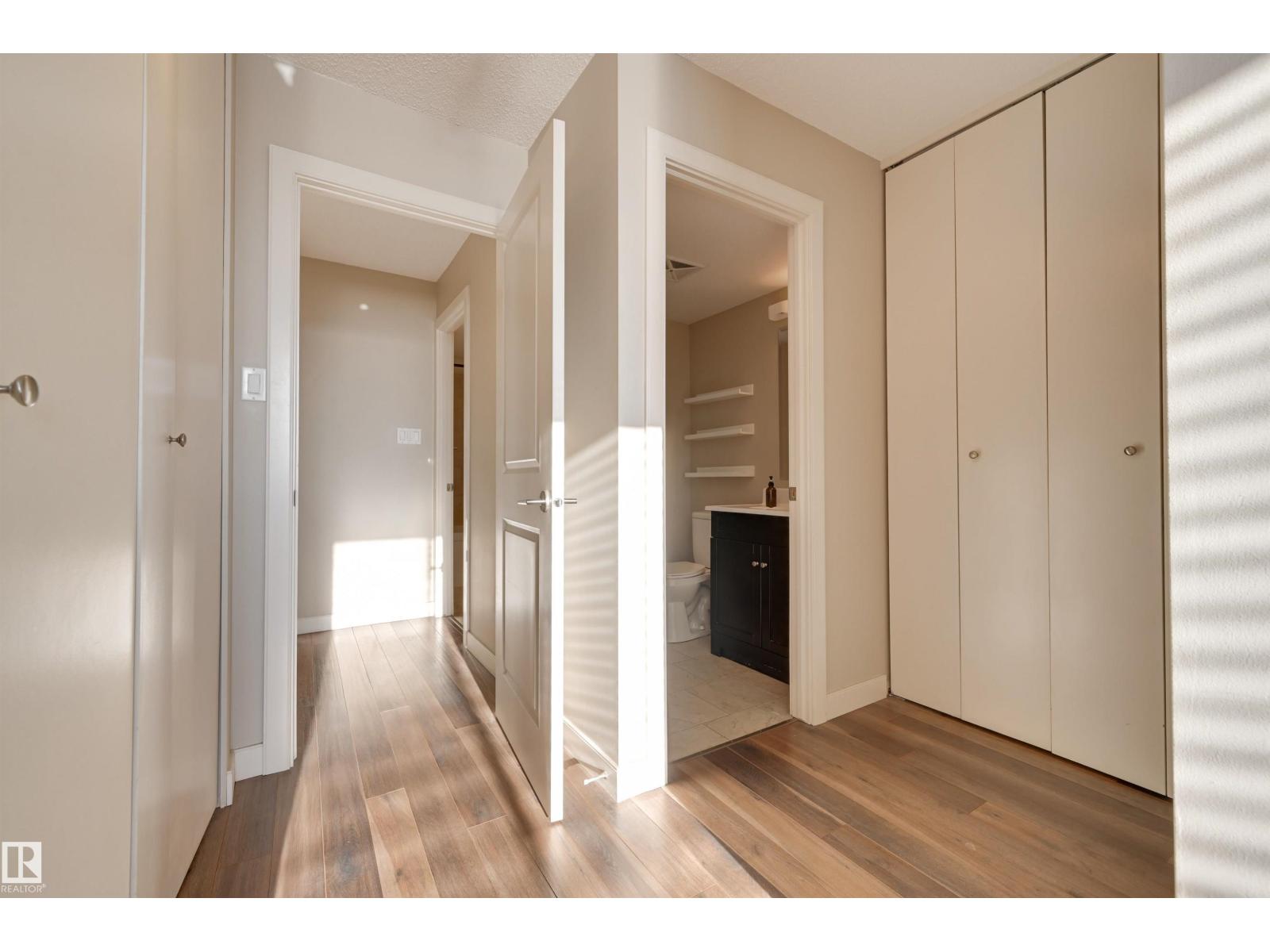 SPECTACULAR RIVER VALLEY VIEW from every window in this BRIGHT, COMPLETELY RENOVATED 1126 sq.ft. 2 bedroom 1.5 bathroom condo in TOP OF THE VALLEY conveniently located with transportation at your doorstep, close to unique shops, restaurants, coffee shops, Art Galleries, the Brewery District, the river valley walking/biking trails & quick access to the U of A. Spacious living room overlooking the river & access to the sunny south facing balcony. The gourmet kitchen is open to the living area with espresso color cabinetry, granite countertops, S/S appliances. The dining room has built-in cabinets. The primary suite is complete with a walk-in closet & a 2 piece bathroom. Spacious 2nd bedroom & a 4 piece bathroom with tile tub surround, new vanity & toilet. Laminate flooring throughout except for tile in the bathrooms. Large storage room. The condo fees include heat, water, power, laundry & underground parking. The building features a completely remodelled exercise room & lobby. Shows very well! (id:63190)