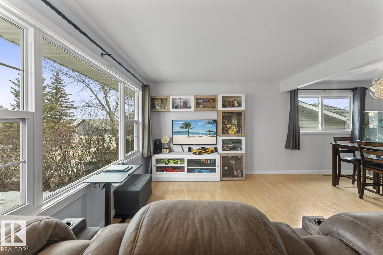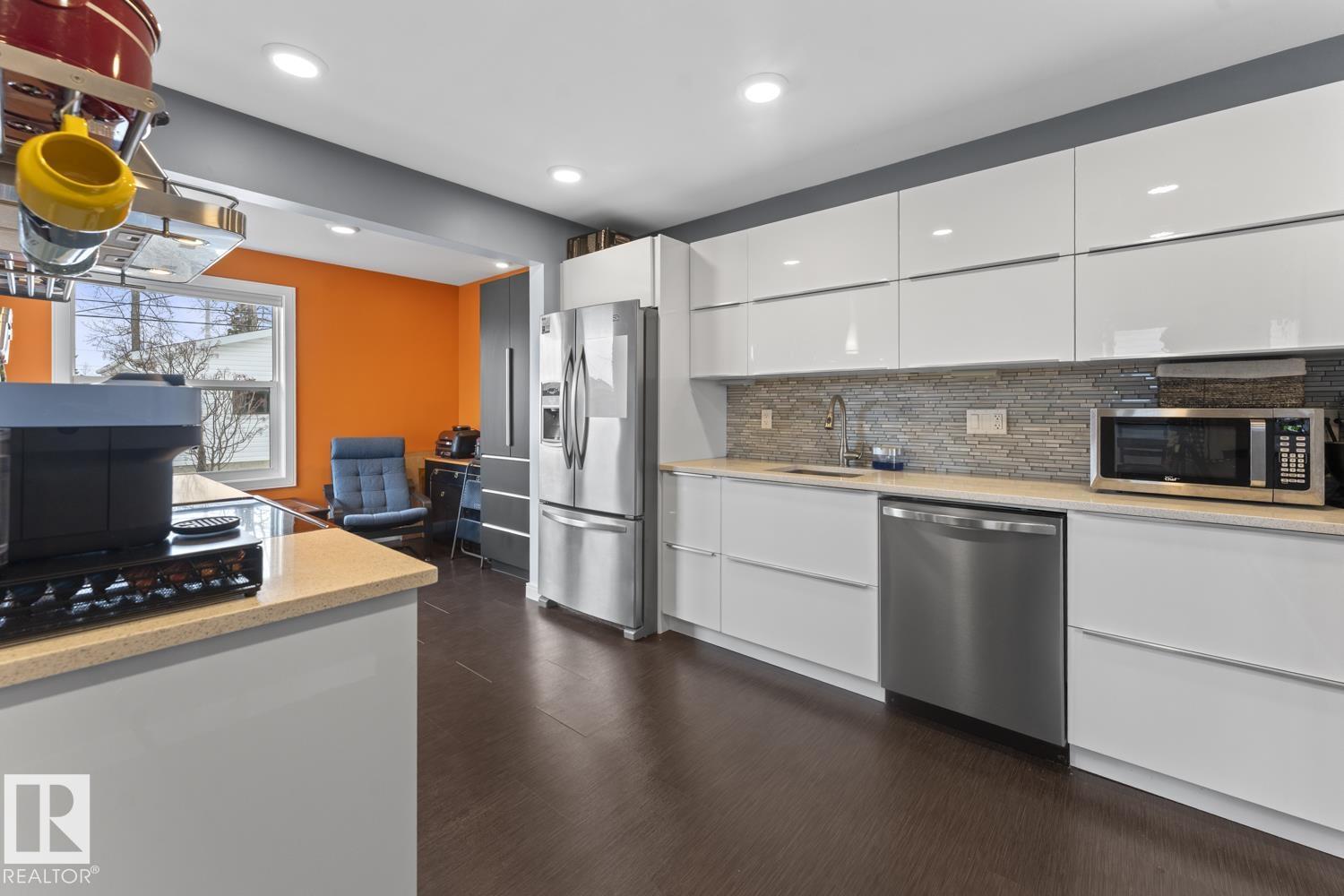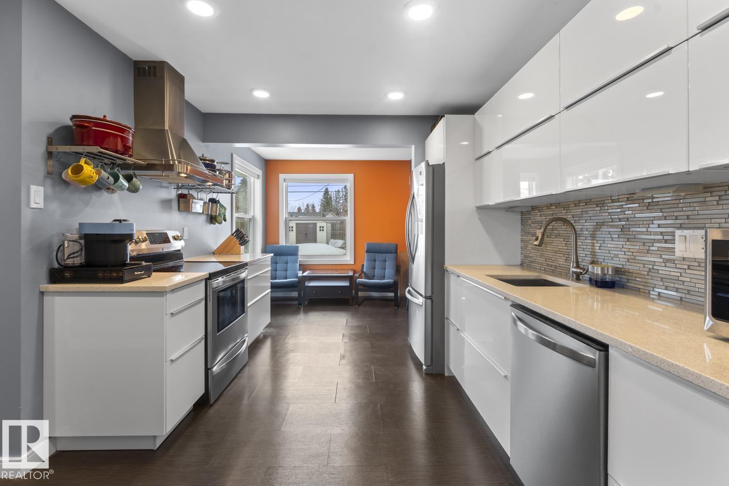 Do not let the age fool you! This beautiful bungalow in Cold Lake North with a fenced yard, hot tub included and a double detached garage is a must see! UPGRADES galore including: Lifetime metal roof, vinyl windows, NEW furnace, NEW A/C, hot water 2019, NEW front and back doors, newly renovated IKEA kitchen with quartz counters and updated bathrooms. The main level has a bright living room with adjacent dining room. Bright white kitchen with soft close drawers, breakfast nook space,stainless steel appliances & matching back splash. 3 bedrooms on this level with the primary housing a 3 piece ensuite. The yard is just perfect with back alley access, 4 man hot tub and a privately fenced space. Double detached garage with 110 power. One block to the marina and NEW Cold Lake path. (id:63190)