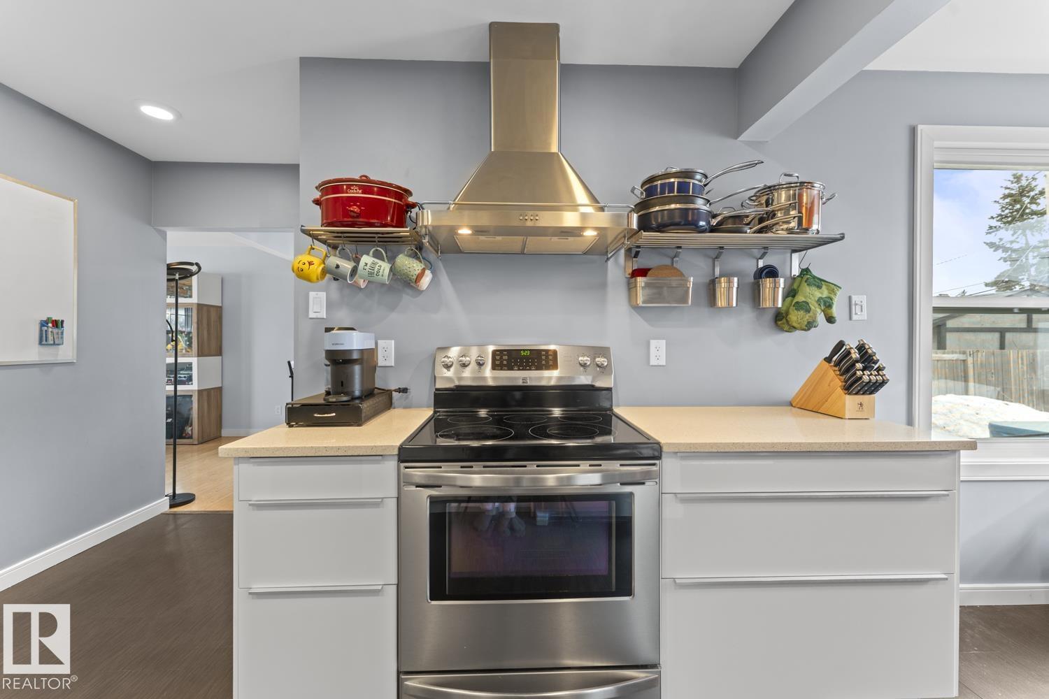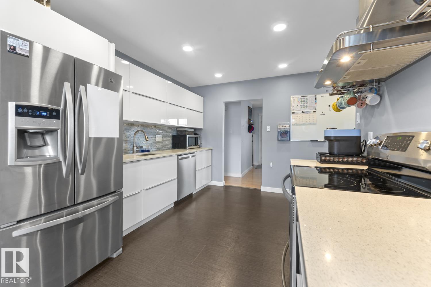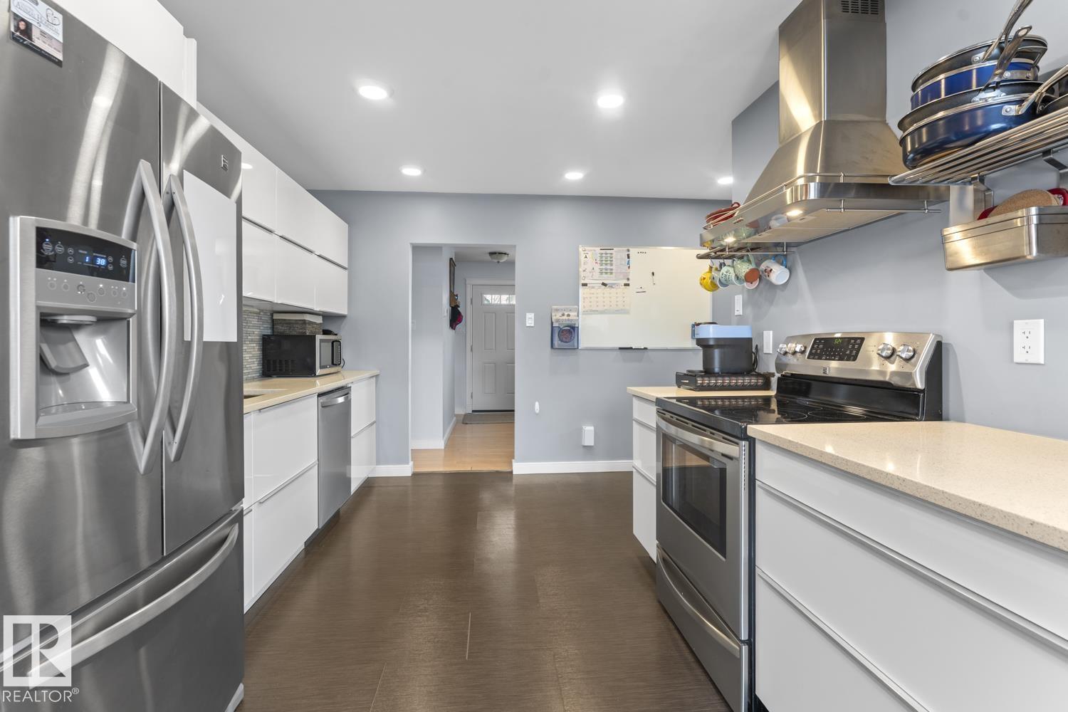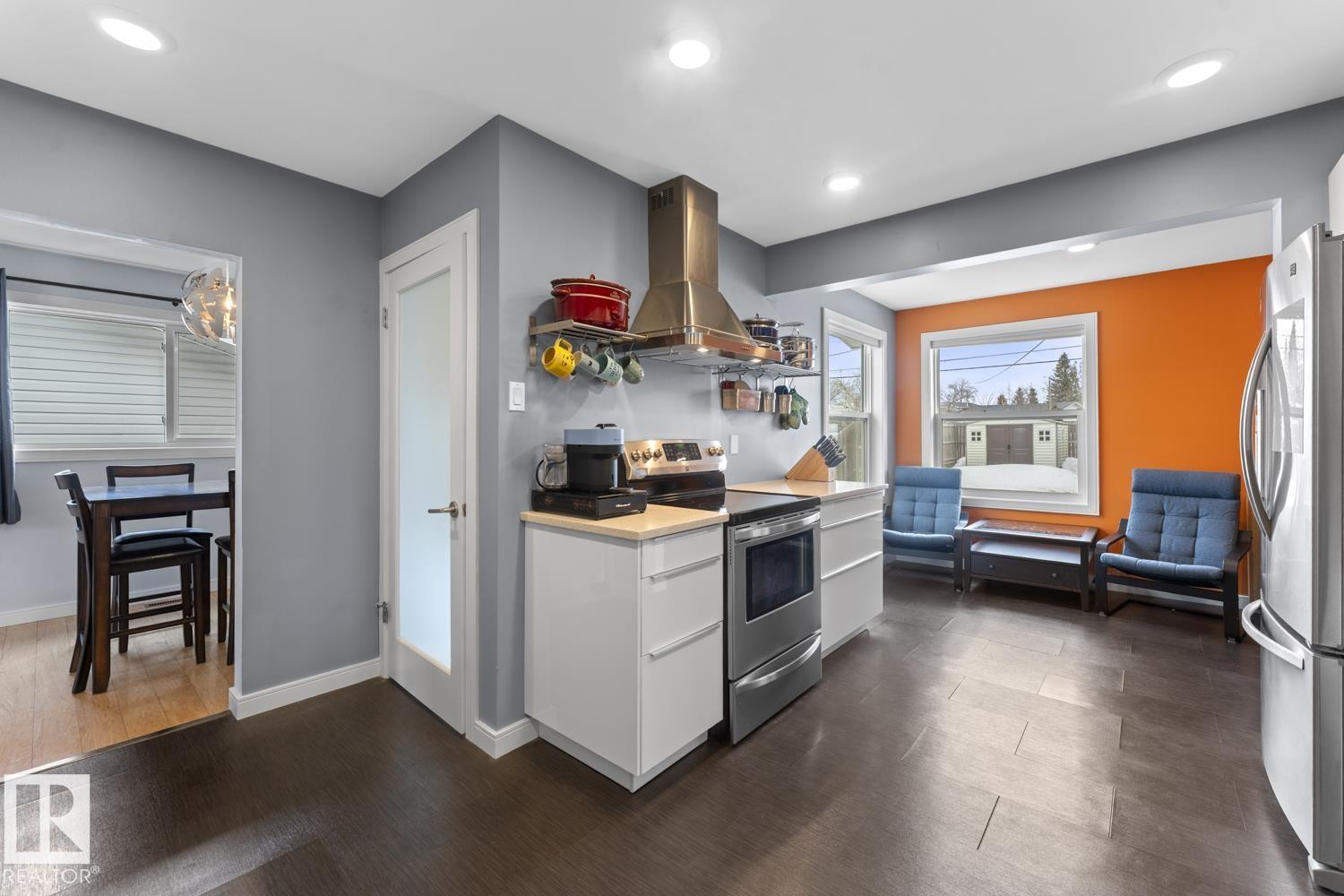 Do not let the age fool you! This beautiful bungalow in Cold Lake North with a fenced yard, hot tub included and a double detached garage is a must see! UPGRADES galore including: Lifetime metal roof, vinyl windows, NEW furnace, NEW A/C, hot water 2019, NEW front and back doors, newly renovated IKEA kitchen with quartz counters and updated bathrooms. The main level has a bright living room with adjacent dining room. Bright white kitchen with soft close drawers, breakfast nook space,stainless steel appliances & matching back splash. 3 bedrooms on this level with the primary housing a 3 piece ensuite. The yard is just perfect with back alley access, 4 man hot tub and a privately fenced space. Double detached garage with 110 power. One block to the marina and NEW Cold Lake path. (id:63190)