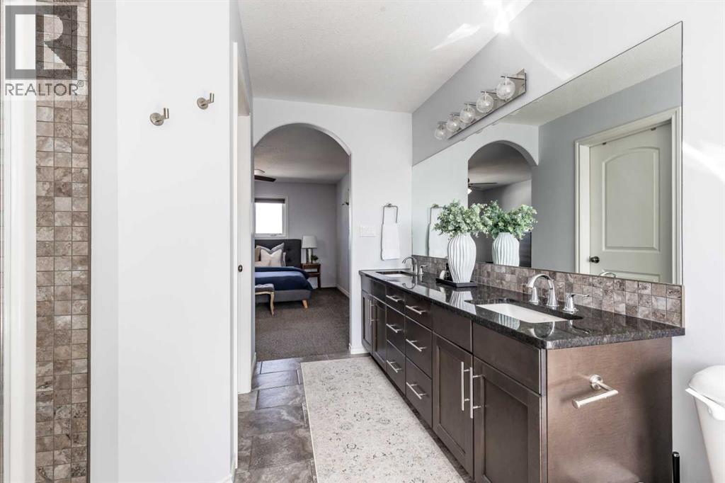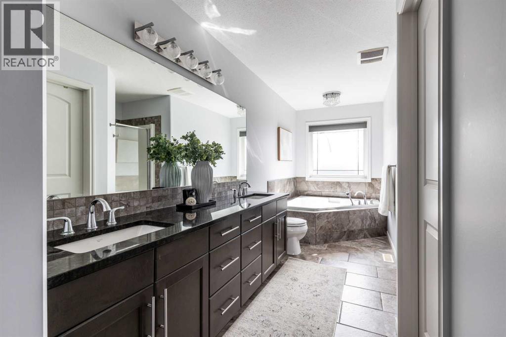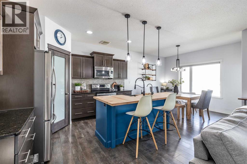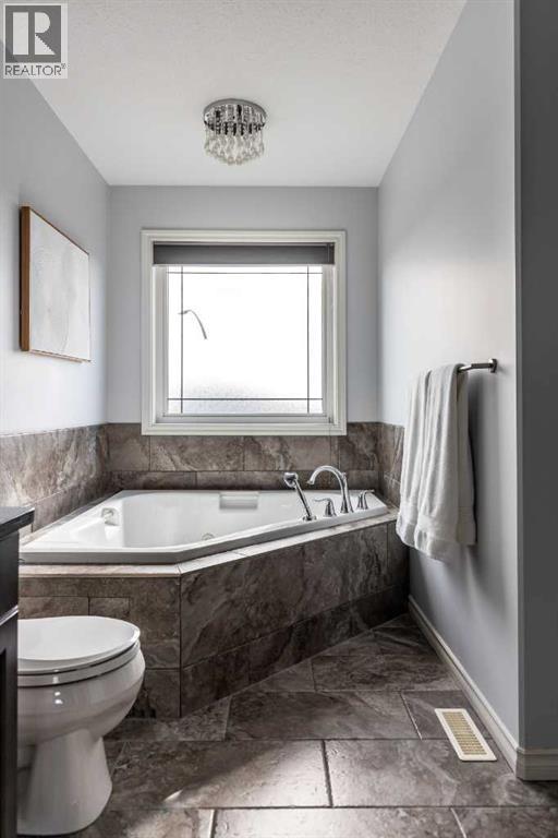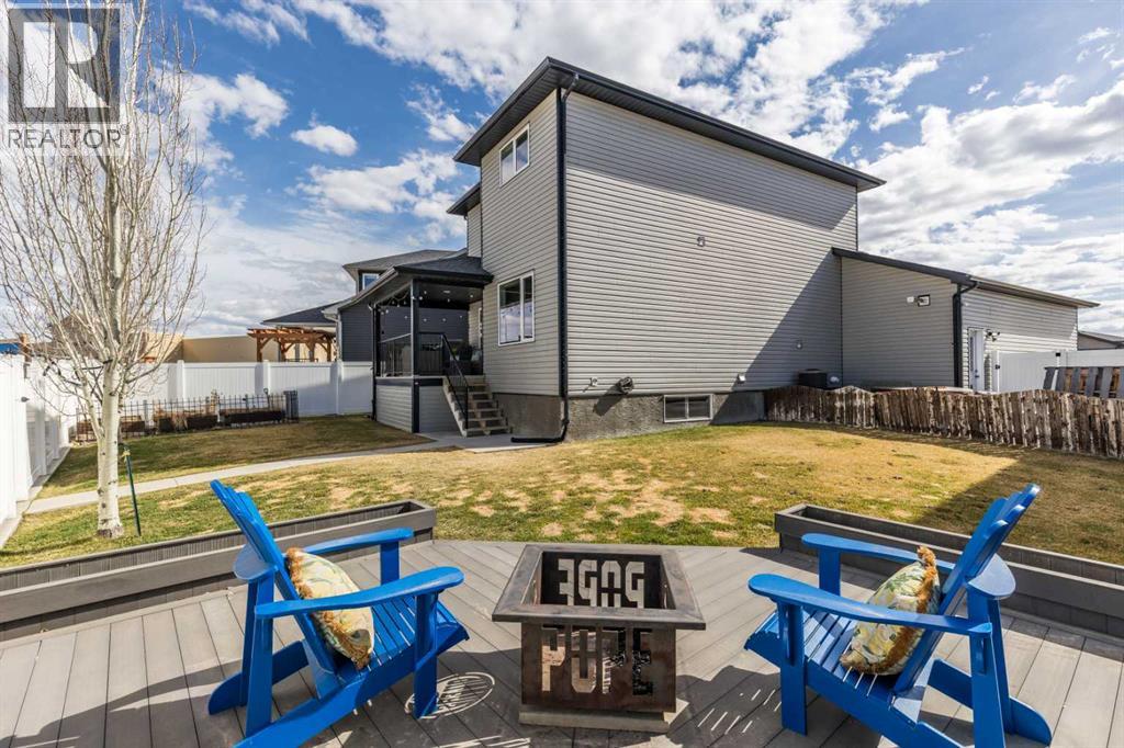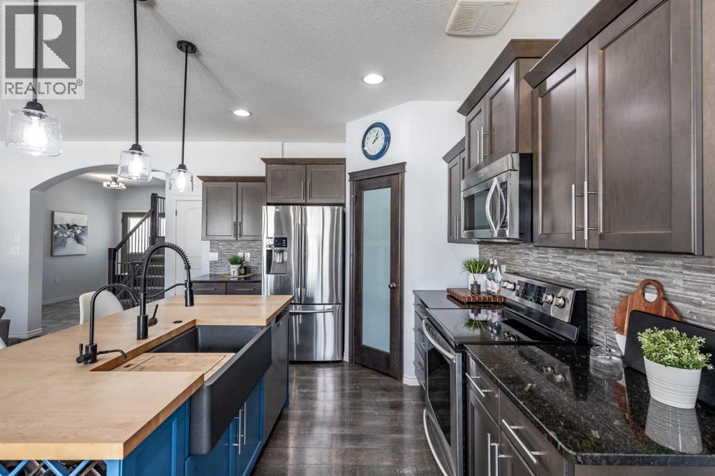 This is the one you've been waiting for!! Beautiful family home with a Triple Garage!! The quality craftsmanship and stylish finishes come together beautifully in this impressive family home, recently painted throughout the main and upper floor; it's fresh and modern. The heart of the home is a stunning kitchen with charcoal-stained maple cabinetry, granite countertops, tiled backsplash, and upgraded lighting. This is all anchored by the cool refreshed island with a custom Billy Blocks Countertop. A bright eating area spills onto a large covered deck, where you can watch the morning sunrise with your coffee in hand. The open living room with gas fireplace is made for gathering. Upstairs, three generous bedrooms await, including a master retreat complete with a corner jetted tub, separate shower, double sinks, and a large walk-in closet. Downstairs, the fully finished lower level offers a cozy family room, games area, and plenty of space for a fourth bedroom, all complemented by a three-piece bathroom. The triple-attached heated garage with floor drain is a standout bonus, featuring a welcoming landing with lift-up benches and tons of storage. Step outside to a yard built for living, buyers will love the gorgeous Trex patio, a boxed garden with underground sprinklers, and enclosed storage tucked neatly under the deck. Vinyl Fence and direct access to the walking path behind is so incredibly handy! Need groceries in a pinch while getting in your 10,000 steps?! This location is perfect! Not far off is one of the coolest parks in the city! Come see it for yourself — you won't be disappointed. (id:63190)