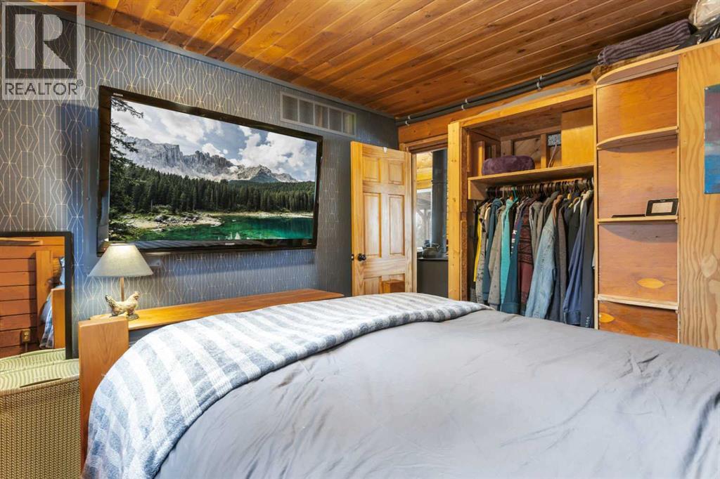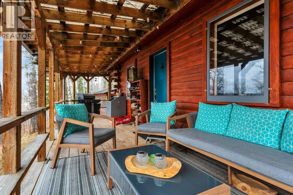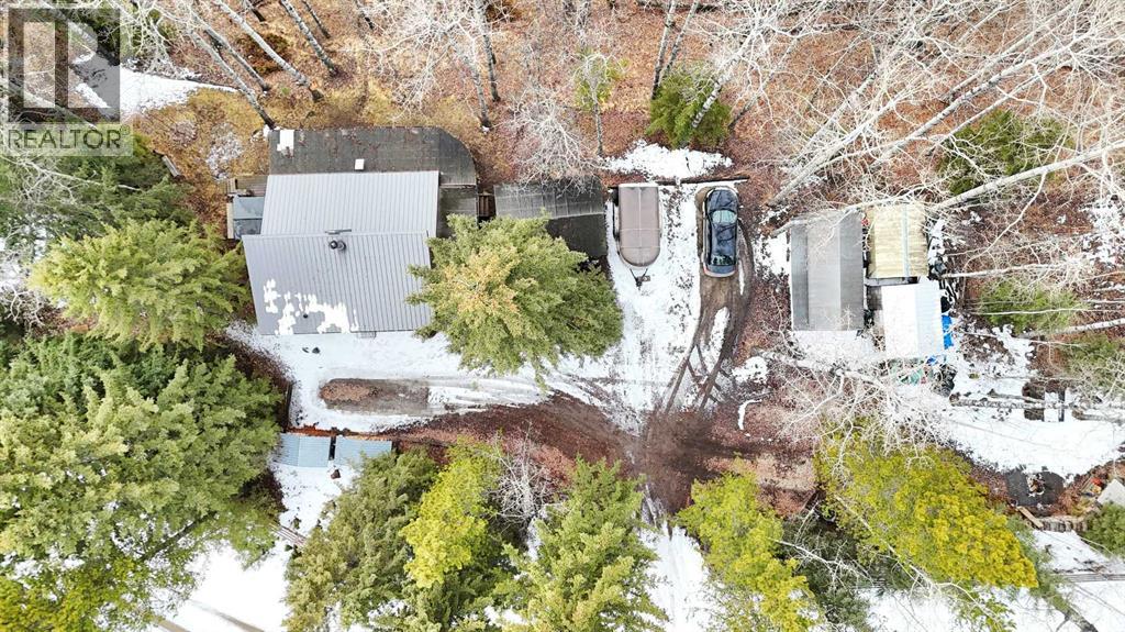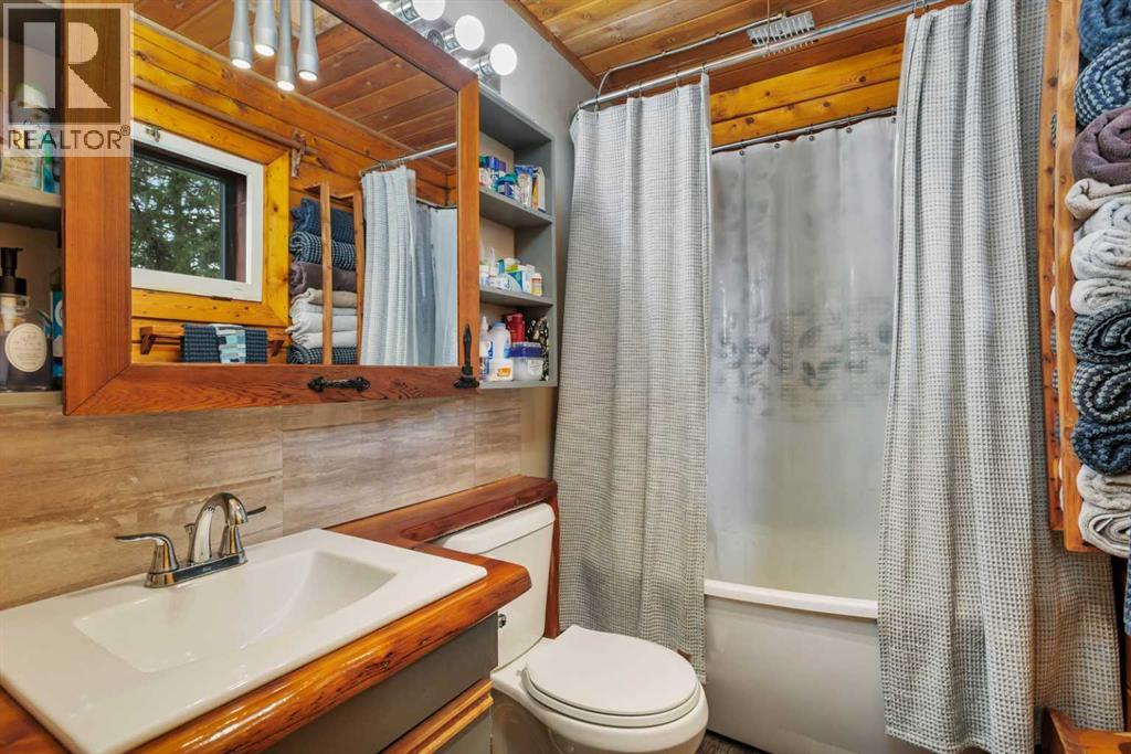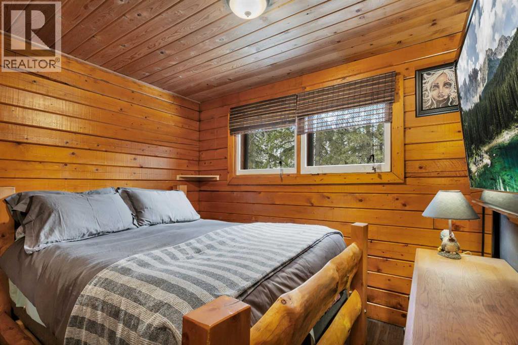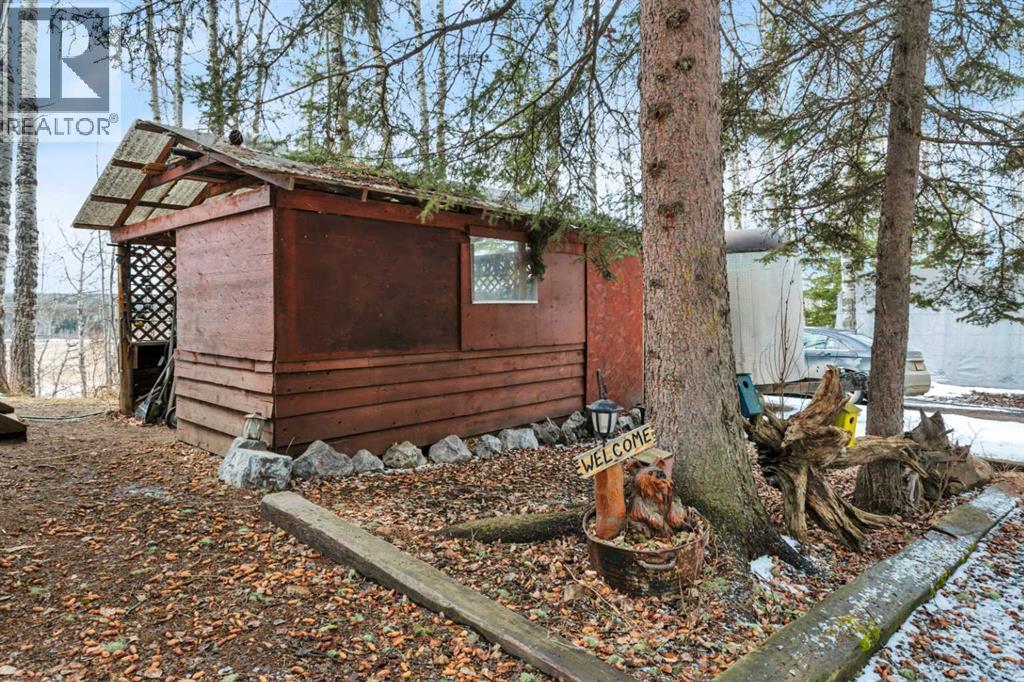 Tucked into nature just over 16 km west of Rocky Mountain House, this charming 880 sq ft D-style log home offers peaceful living with stunning views of forest, the North Saskatchewan River, and the mountains. Full of warmth and character, this thoughtfully designed tiny home blends rustic appeal with cozy functionality.The main floor features a welcoming living and dining area centered around a free-standing wood stove, a functional U-shaped kitchen, one bedroom, a 4-piece bathroom, and convenient stackable washer/dryer. Cottage-core details shine throughout, including built-in spice racks and dedicated canning storage.Upstairs, the original loft has been enclosed to create two small private bedrooms, accessed by a spiral staircase. The utility room is located in the crawl space and accessed from outside.A south-facing porch extends your living space outdoors—perfect for entertaining or simply relaxing while taking in the peaceful country setting.Perfect for nature lovers and foraging enthusiasts, the property is rich with wild berries and herbs. An ATV trail leads to the lower portion of the acreage, where you’ll find a large garden area. The upper yard is set up for enjoying the outdoors, complete with a firepit, storage shed, greenhouse, and chicken coop.Whether you're dreaming of a small-scale homestead or a quiet weekend retreat, this unique log home offers a true connection to nature and simple country living. (id:63190)