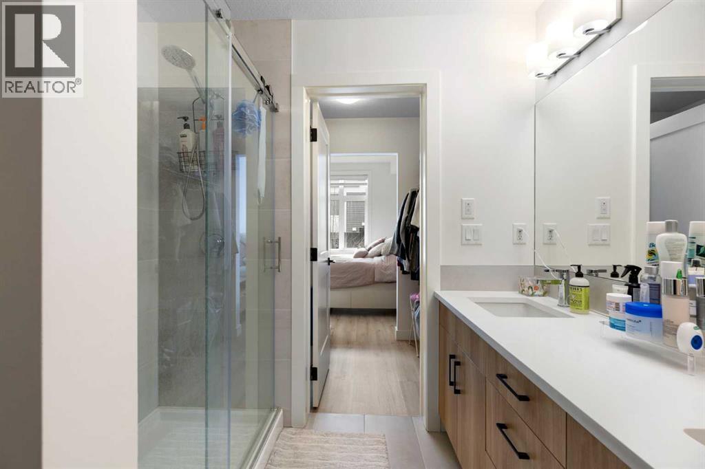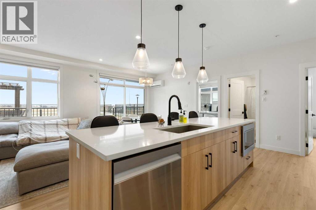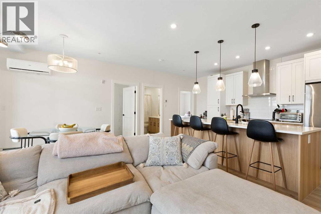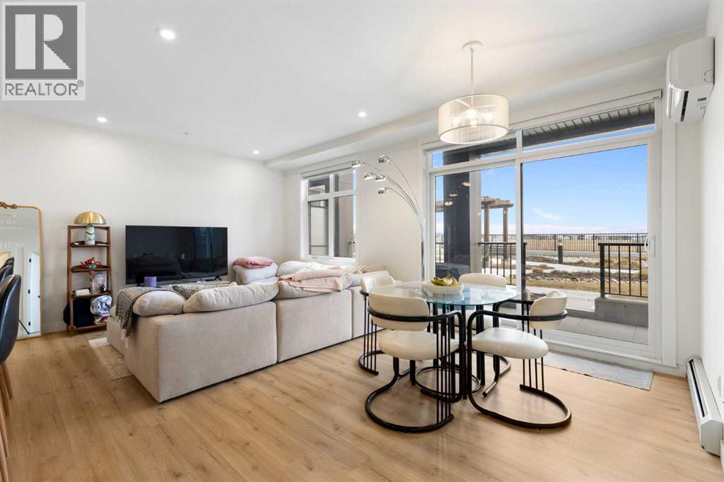 Highlights: 200 sq.ft elevated private patio area, Southeast exposure with green space views, Walkable to major amenities, Upgraded kitchen w/ Stainless Steel Appliance Package. Write-up: Walking into this 2024-built home, the first thing you notice is the sunlight. Because it faces east, the morning sun just pours in right when you wake up, and those south-facing bedroom windows keep things bright all day long. When summer hits, having the central AC is exactly what you want, but during those short Calgary winters, pulling in all that natural light is an absolute must and often overlooked. Everything in this home feels cohesive right from the front door, tied together by upgraded lighting, custom blinds, and luxury vinyl plank flooring for a polished, continuous flow. Some buyers might look at a 913 sq.ft. floor plan and wonder about the fit, but you quickly realize there is zero wasted space here. The layout lives incredibly well, anchored by a massive kitchen island with green space views, upgraded ceiling-height cabinetry, and that upgraded stainless steel appliance package. The living area opens up to that 200 sq.ft patio with a gas line ready for your BBQ. The secret to this spot? Even though you are on the ground level with your own attached grass area, the patio is uniquely elevated. Passing cars completely disappear from sight, giving you a private outdoor retreat overlooking that massive green space across the street, which can be enjoyed while doing the dishes at your new kitchen island. This location is totally dialled in. It is perfect for that medical professional working at the South Health Campus or anyone who wants an energetic, walkable lifestyle just a couple of blocks away. Leave your vehicle parked in the underground titled stall and simply walk over to "The Block" for dinner, drinks, or a movie at the VIP theatre. But remember, when you do need to drive, you have immediate access to major highways, so you can get anywhere in the city effortless ly. (id:63190)