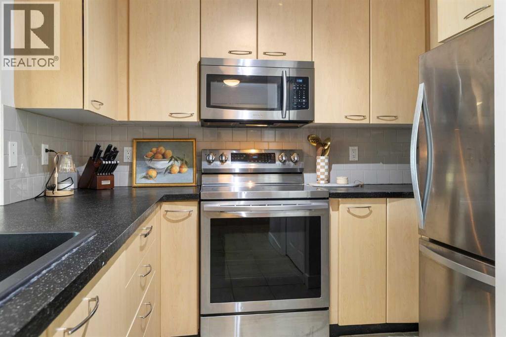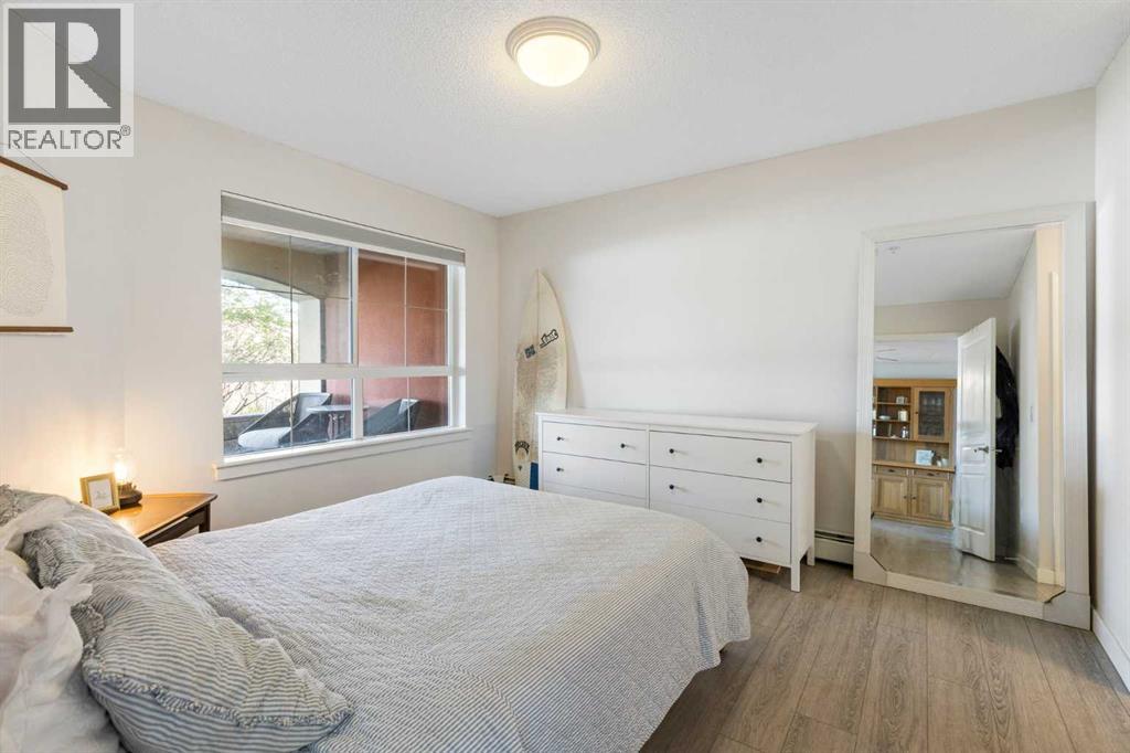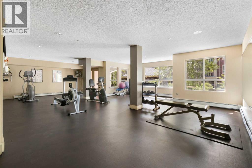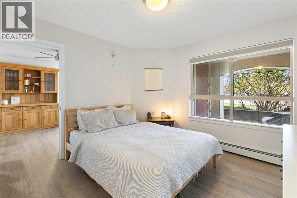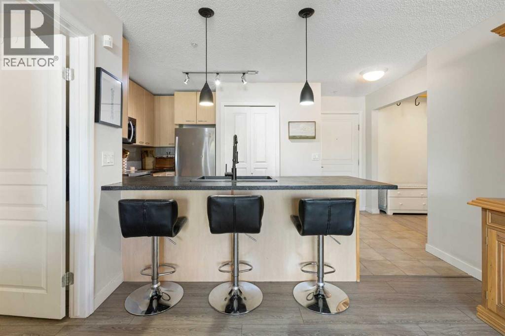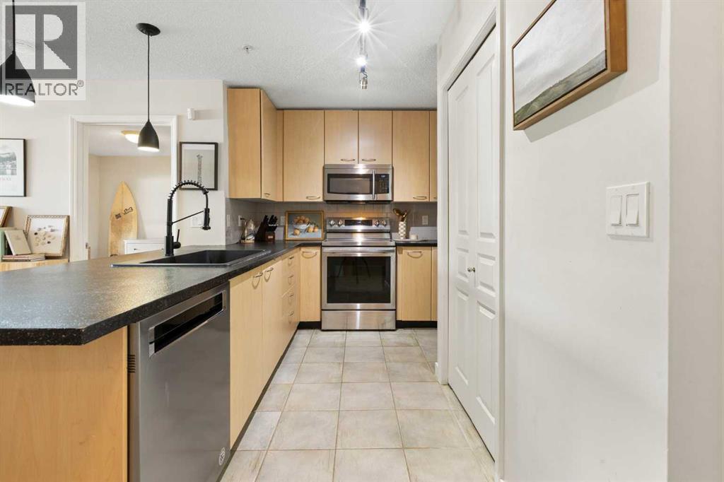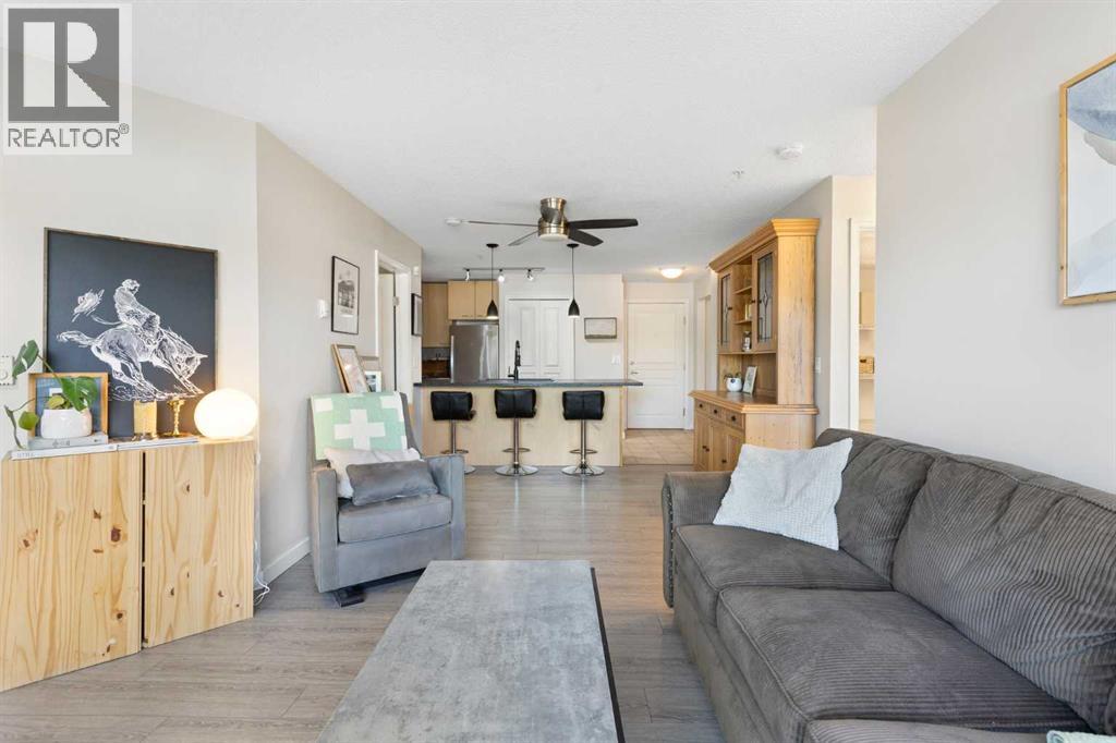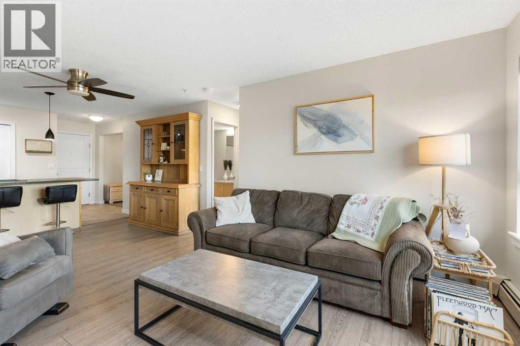 WELCOME HOME – amenities galore! This spacious and beautifully updated main floor unit features 2 bedrooms and 2 bathrooms, offering an ideal layout with bedrooms split by a spacious living and dining area. The unit opens up with a large front entryway, open-concept living, and stylish finishes throughout including newer vinyl plank flooring and a fresh modern colour palette. The well-appointed kitchen features upgraded stainless steel appliances, pantry, and plenty of cabinetry. The bright living room is highlighted by large windows and a cozy corner gas fireplace and opens onto a generous covered patio that backs onto green space—ideal for relaxing or for owners looking for easy outdoor access. The large primary bedroom includes a 4-piece ensuite, a walkthrough closet & a window overlooking the patio. A second bedroom sits across from a 3 piece bath, perfect for guests or roommates. There's also flexible den space—ideal for a home office or extra storage. Additional features include 2 titled underground parking stalls, in-suite laundry, and access to premium building amenities such as a fitness centre, party room, bike storage, visitor parking, and a beautiful private courtyard. Ideally located just steps from Mount Royal University, with easy access to Stoney Trail, Crowchild Trail, Glenmore Trail, downtown, and within walking distance to transit, coffee shops, restaurants, and shopping—this is a fantastic opportunity for first-time buyers, students, investors, or those looking to downsize without compromising lifestyle. Get in touch today and snag one of the best units in the building! (id:63190)