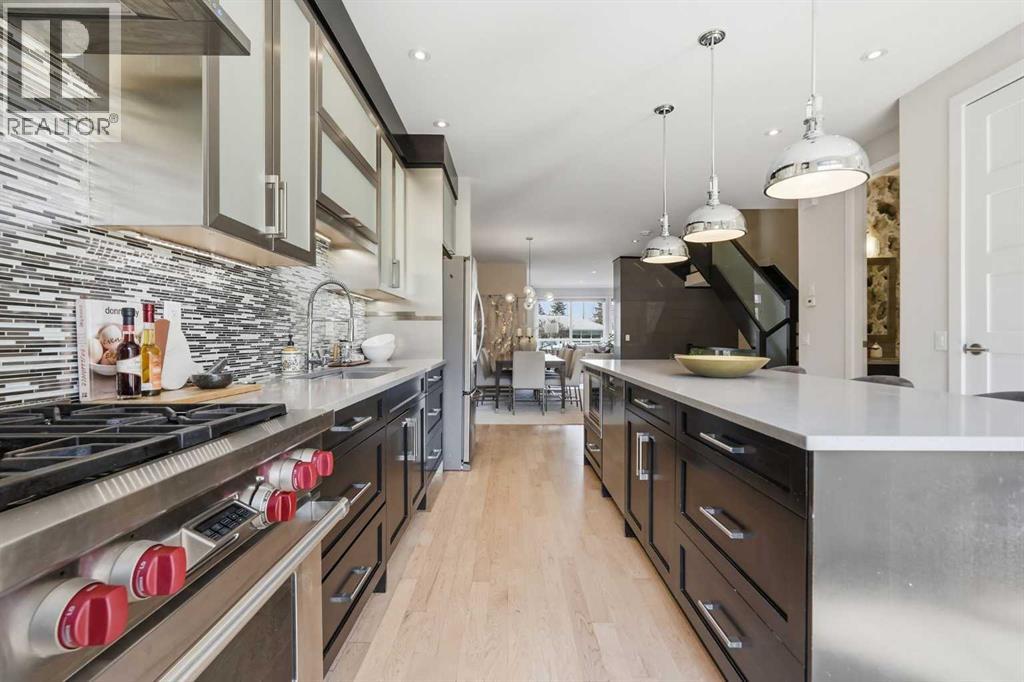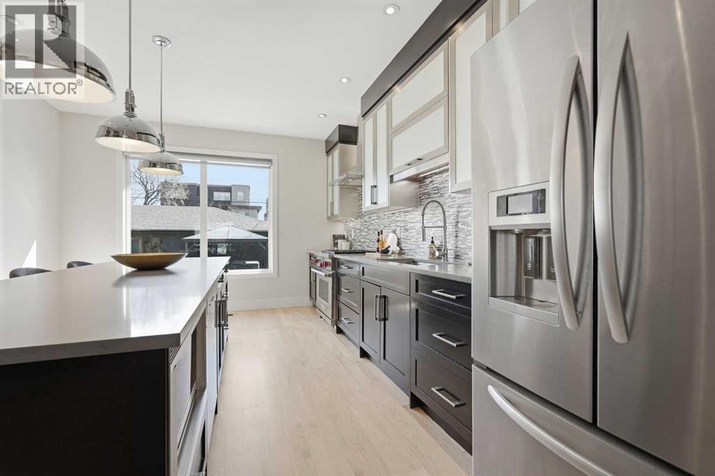 OPEN HOUSE SATURDAY, APRIL 25TH FROM 2-4 PM & SUNDAY, APRIL 26TH FROM NOON - 2 PM. Experience the pinnacle of Altadore living in this beautifully upgraded modern home. Discover over 2,900 sq ft of meticulously curated living space in this stunning 3+1 bedroom infill, situated on a rare extra-deep 139' lot with sunny south back yard. From the moment you enter, the home radiates a "like-new" glow, boasting fresh paint, refinished hardwoods, new carpeting and stylish new designer lighting throughout. The main level is anchored by a striking floor-to-ceiling fireplace in the living room, flowing seamlessly into a generous dining area designed for grand-scale hosting. The kitchen is a true chef’s sanctuary, featuring an expansive island with breakfast bar, a massive walk-in pantry, and high-end stainless steel appliances. A mudroom and a 2 piece powder room with a charming floral wallpaper accent complete the main level. An open riser staircase leads to the second level, where the primary retreat serves as a private oasis, complete with dual walk-in closets and a spa-like ensuite featuring an oversized shower. Two additional bedrooms (one with walk-in closet), a 4 piece main bath & laundry room with additional storage are the final touches to the second level. The fully developed basement includes a large recreation room, a fourth bedroom, and a 3 piece bath—ideal for guests or teens. Additional highlights include central air conditioning, a new central vacuum system, hot water on demand, and ICF party wall construction for enhanced comfort and sound attenuation. Outdoors, enjoy a beautifully landscaped front garden filled with mature perennials and a low maintenance south facing backyard with a spacious patio that acts as a sun-drenched extension of the home. Parking is effortless with an oversized double detached garage. This exceptional home is ideally located walking distance to Glenmore Athletic Park & Sandy Beach, and close to two golf courses, schools, shopping, p ublic transit, and offers quick access to both Crowchild and Glenmore Trails. (id:63190)