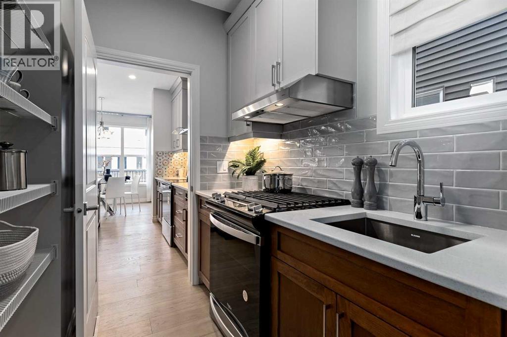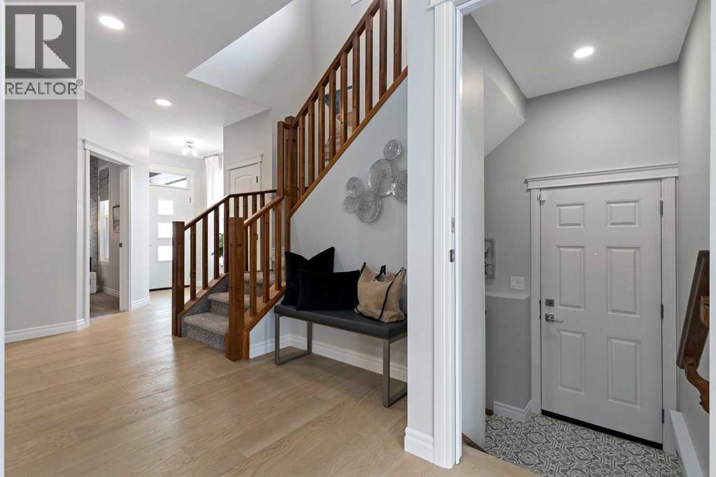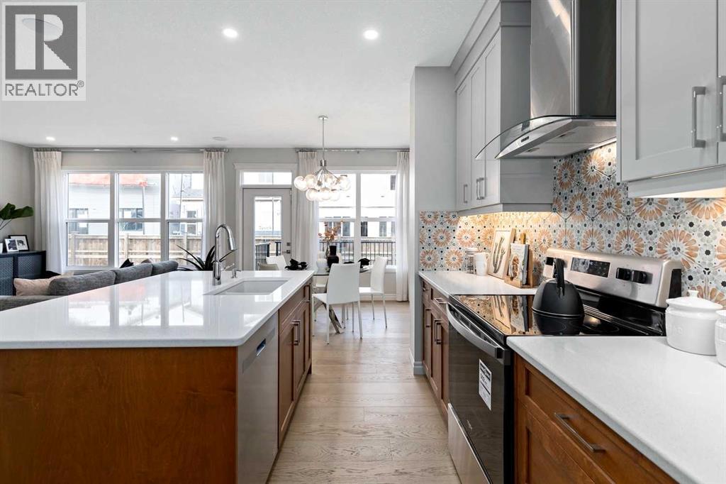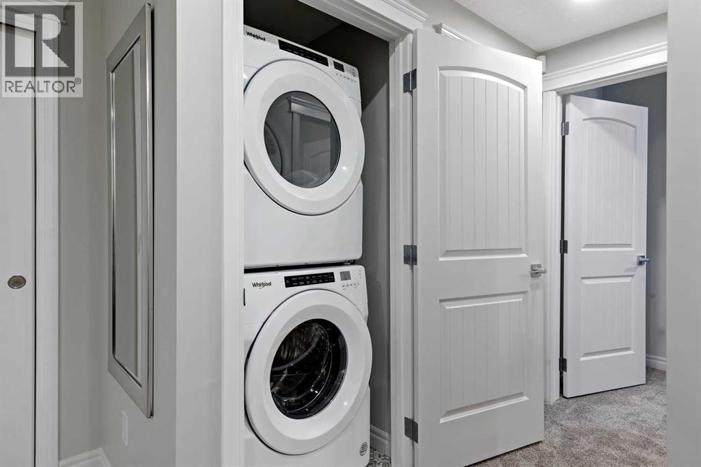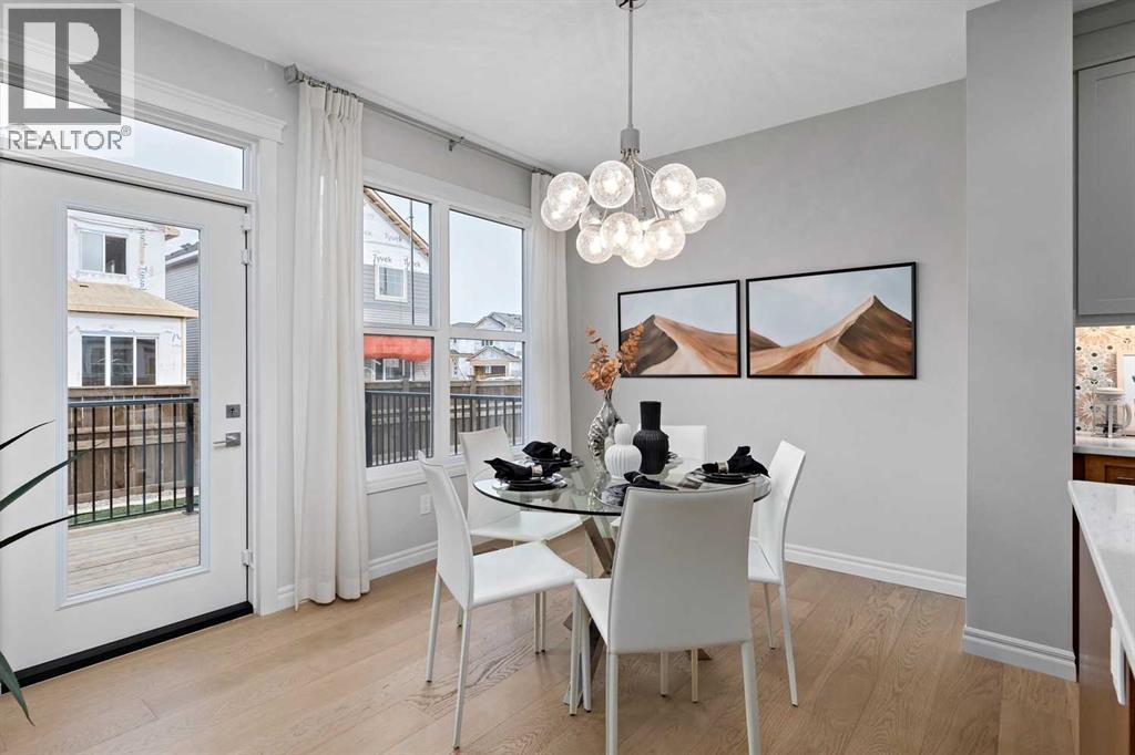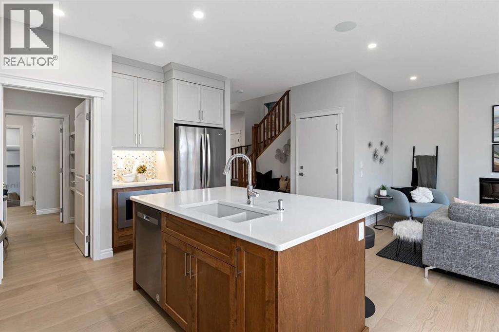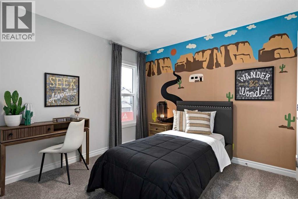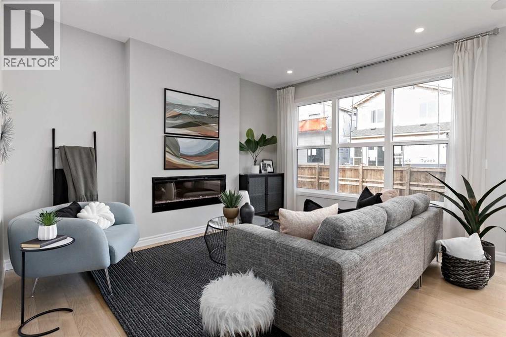Welcome to 293 Homestead Terrace NE, a beautifully finished showhome offering 2,325 sq. ft. above grade plus a fully developed 2-bedroom legal basement suite, providing exceptional flexibility for large or multi-generational families. Featuring 7 bedrooms and 5 bathrooms, this thoughtfully designed home blends modern finishes, functional living space, and investment potential in the growing community of Homestead.This property also presents a rare leaseback opportunity, allowing the builder to lease the home from the purchaser for approximately two years while continuing to maintain the property in pristine showhome condition. Immediate possession is available, with key release anticipated early to mid-2027.The main floor showcases engineered hardwood flooring and an open-concept layout designed for everyday living and entertaining. The kitchen features 1-¼” quartz countertops, two-tone cabinetry extended to the ceiling, and an upgraded chimney hood fan with built-in microwave. A fully equipped spice kitchen with gas range offers additional functionality, ideal for preparing meals while keeping the main kitchen organized. The living room is highlighted by a modern electric fireplace, creating a warm and inviting focal point. A main floor bedroom with full bathroom offers excellent flexibility for guests or extended family, while the flex room provides space for a home office or additional sitting area.Upstairs, the home offers 5 bedrooms above grade, including dual primary suites, making it ideal for growing families. The main primary retreat features a spacious walk-in closet and a beautifully appointed ensuite with double vanity and soaking tub. Secondary bedrooms are generously sized, and the central loft/bonus room provides valuable additional living space. Tile flooring enhances the upper bathrooms and laundry room, while plush carpet adds comfort throughout the bedrooms and upper floor.The 2-bedroom legal basement suite includes a separate entrance, fu ll kitchen, living area, bathroom, and dedicated laundry, offering excellent potential for rental income or private living space for extended family.Additional highlights include central air conditioning, front yard landscaping, lino flooring in basement kitchen and bath areas, and a 21’ x 20’ double attached garage with man door. The 12’ x 10’ rear deck with steps to grade provides an ideal outdoor space for relaxing or entertaining.Located close to parks, playgrounds, walking paths, and future amenities, this home offers both comfort and convenience. With premium upgrades, a legal suite, and leaseback income potential, 293 Homestead Terrace NE presents a unique opportunity to own a professionally finished showhome designed for modern living. *All furniture, window coverings and appliances are included. Excluded: the art/decor and sonos sound system. (id:63190)