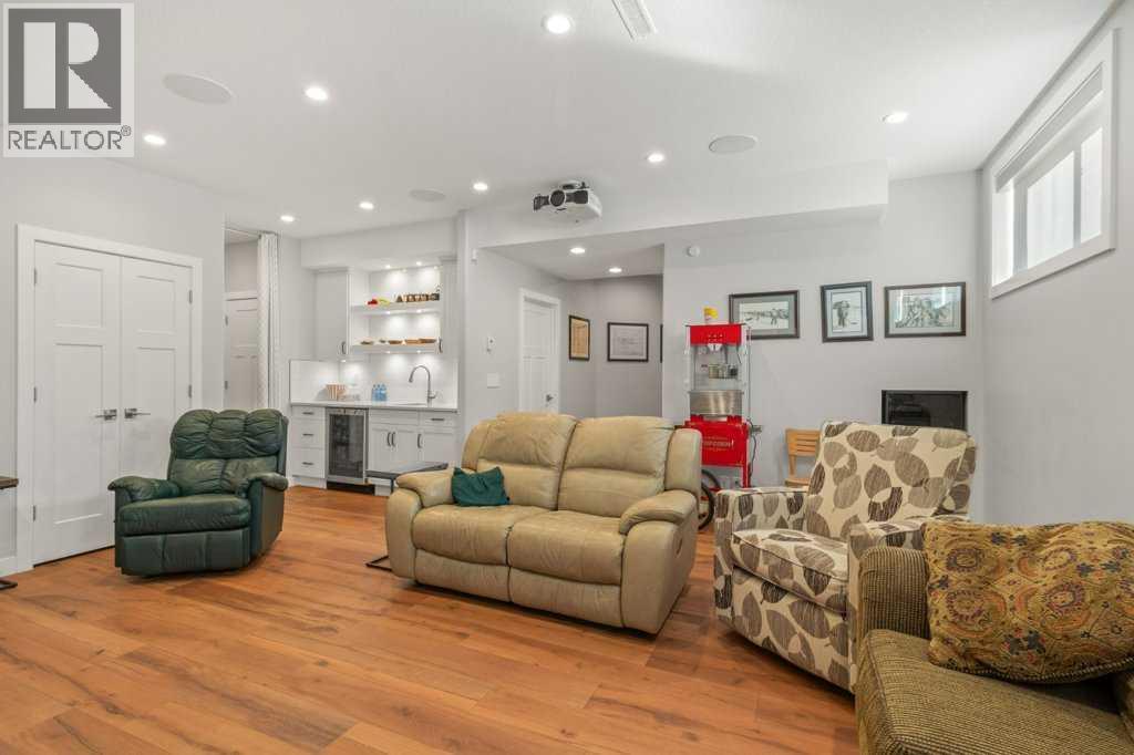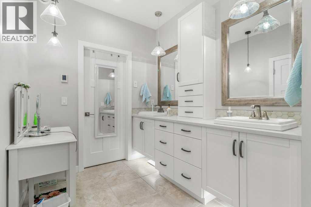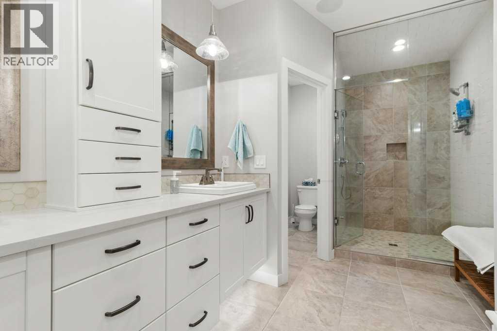 ***EXCEPTIONAL 10/10 FULLY FINISHED, TWO STOREY HOME WITH FULLY FINISHED BASEMENT, BACKING ON TO GREENSPACE!*** Presenting a flawless home in the picturesque Crestview community of Sylvan Lake—this 2496sqft (plus basement), 4 bedroom, 4 bathroom home is fully upgraded, and meticulously finished, leaving no stone unturned. Pride of ownership is very evident in this perfectly kept home, like new condition. Step into a large entryway that leads to a modern, open-concept design with rich vinyl floors covered in tons of natural light from large windows, overloooking the rear greenspace. The home's neutral color palette and high-end finishes enhance its appeal. The chef’s kitchen is a standout feature, showcasing an abundance of cabinets and counter space, a stylish tiled backsplash, and elegant quartz countertops. It is equipped with stainless steel appliances with gas stove, an under-mount sink, and a large walk-through butler's pantry with tons of storage space and extra counters. The large island with eat up bar is perfect for casual dining and socializing. The adjacent living room, complete with a stunning gas fireplace with wrap around mantle, shelving, and full stone wall - extends up to the oversized, open beam ceiling with speaker system throughout, flowing seamlessly into the expansive dining area. The main level also includes a well-appointed mudroom, extra storage, as well as a conveniently located bathroom. Upstairs, you’ll find 3 spacious bedrooms (south facing windows are triple pane to reduce sun heat), including a luxurious master suite. The master features a stunning 4-piece ensuite with heated tile floor, quartz countertops, a custom tiled steam shower, and an extensive walk-in closet. The upper level also includes a 5-piece bathroom with double sinks and quartz countertops, 2 spacious bedrooms with built in bench with storage, perfect games/great room, and large laundry room. The fully finished basement offers a perfect retreat with a generous livin g room/media room, wet bar, an additional oversized bedroom, 4 piece bathroom, and a gorgeous 2 tiered bench sauna. Extra features include In-floor heat, speakers throughout with multiple zone sounds system, extensive lighting controls in each room with fully integrated smart security features, newer hot water tank, water softener, HRV, A/C, mirrored finish tint on south windows, and more! The oversized fully finished, attached garage is heated, central vac, sink, and epoxy finished floor - perfect for all your toys. Head out back and enjoy the greenspace view with huge maintenance free partially covered deck with privacy shades, electric heaters, and beautiful lighting - overlooking the fully finished yard with vinyl fence, planters, and tons of storage. Located close to walking trails, parks, and schools, this home perfectly combines luxury and convenience. Don’t miss the chance to make this exceptional property your own. (id:63190)