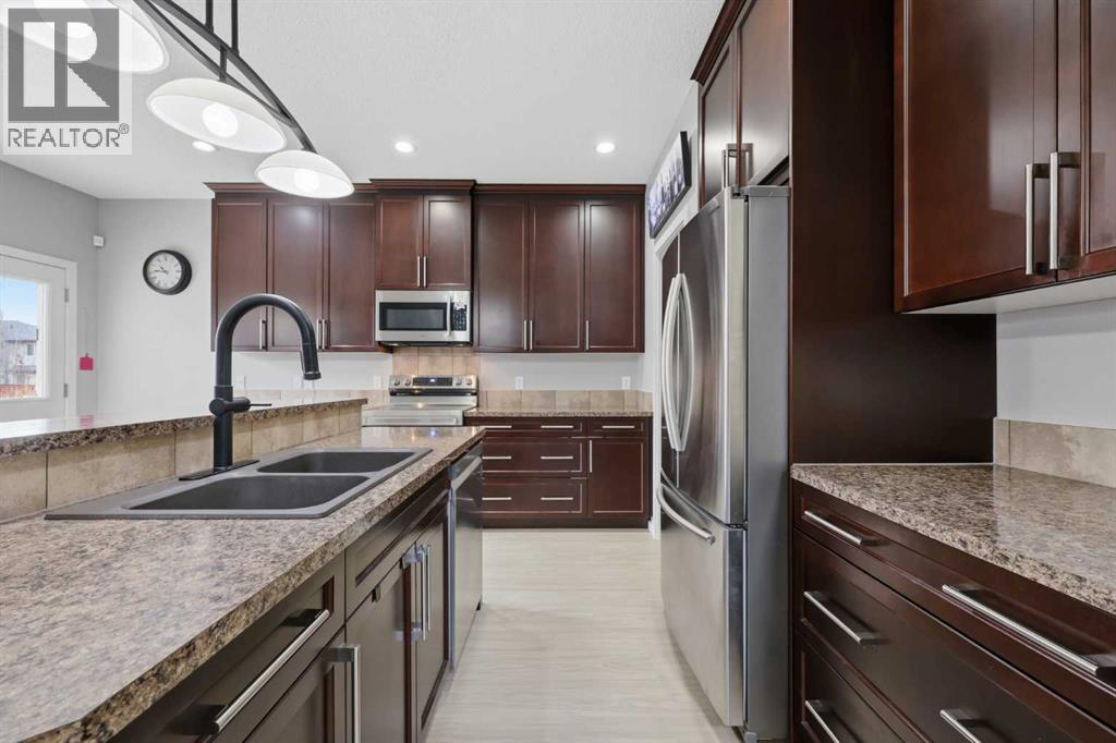 **Open House Sunday April 26, 12-2PM**Welcome to 1198 Kingston Crescent SE in Airdrie, where space, upgrades, and lifestyle all come together.This is the kind of home that just feels right the second you pull up… and the kind of street where the kids still play outside (“CAR!!!… game off… okay, game on!”). This fully finished 2 storey offers over 2,100 sq ft above grade with a layout that just works. The main floor features a bright, open living space, dedicated home office, and a kitchen/dining area that flows seamlessly to the backyard, perfect for everyday living and entertaining. You’ll also appreciate the brand new vinyl plank flooring throughout the main level and a new hot water tank (March 2026) for added peace of mind.Upstairs offers 3 spacious bedrooms, including a well appointed primary retreat, plus a bonus room ideal for family movie nights or a kids’ hangout and the convenience of upstairs laundry. The fully finished basement adds even more flexibility with a 4th bedroom, additional living space, and room for guests, a gym, or a media area. Step outside and you’ll see where this home really shines: featuring a massive deck with gazebo, planter boxes for gardening, and space to relax or entertain all summer long.Out front, a unique river-style water feature with a charming bridge creates standout curb appeal you won’t find just anywhere.Location is a win here...just a quick commute to Calgary with 40th Ave SE open, steps to Heloise Lorimer School and École des Hautes-Plaines (Airdrie Francophone School), and close to Kings Heights outdoor rink, soccer fields, and Lanark Landing Pump Track. Plus, all your shopping and daily amenities are just minutes away. Complete with a double attached garage, this home checks all the boxes. Bring the whole family and make this house, your home! (id:63190)