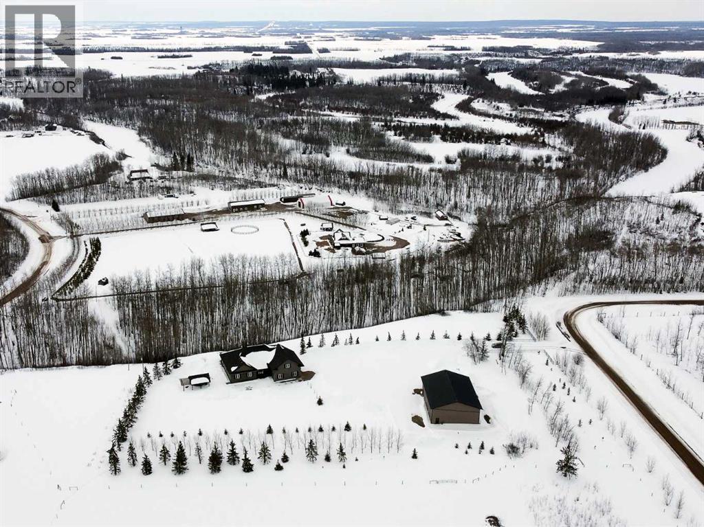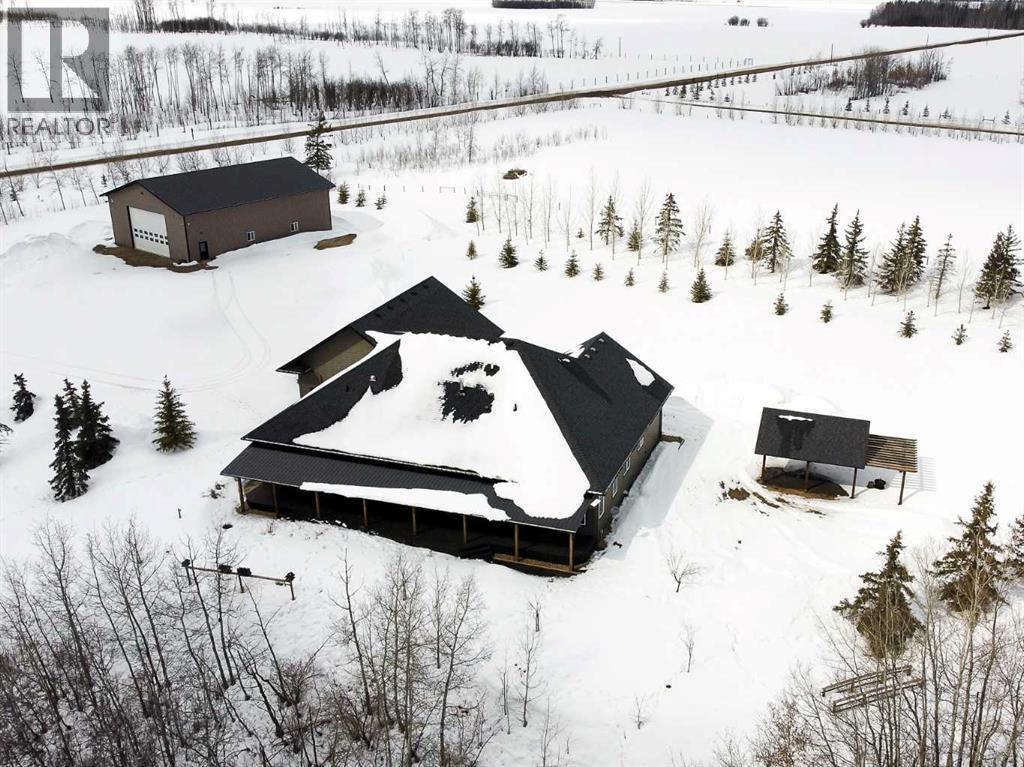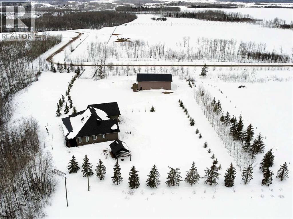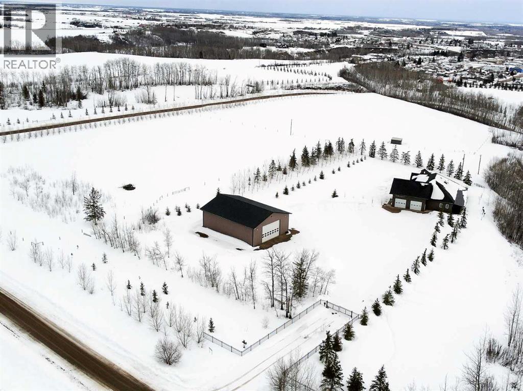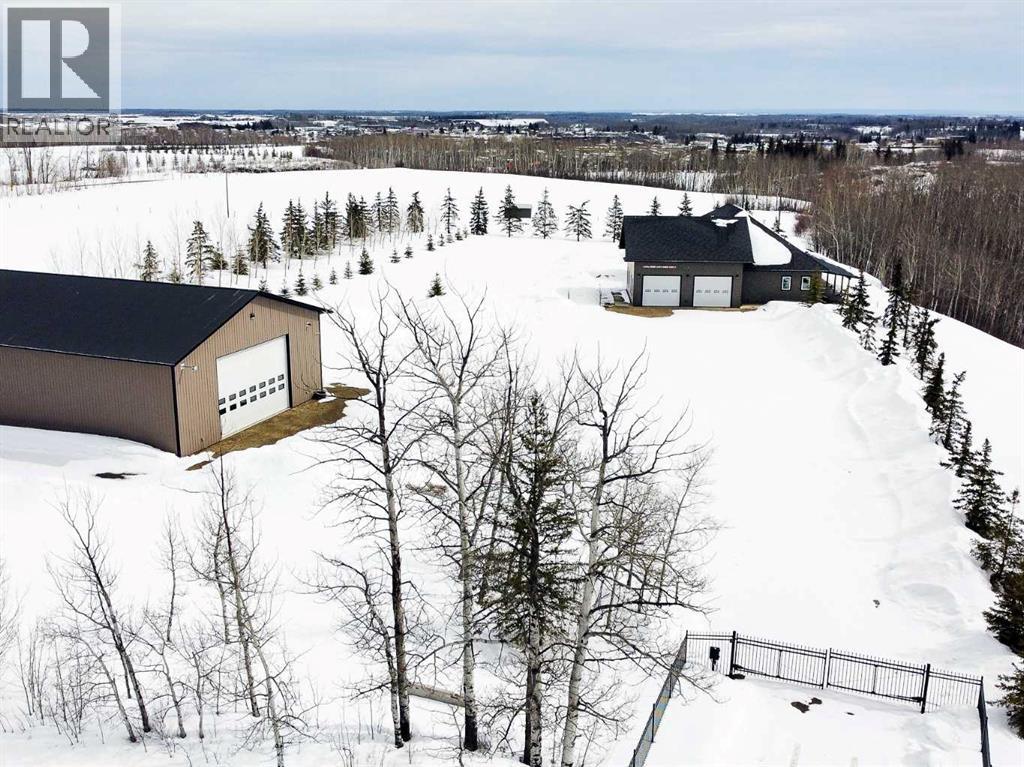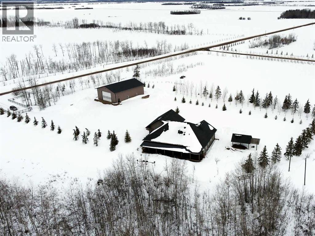 Experience refined country living on this exceptional 21.77-acre property. Ideally located just 1 km west of Manning, it offers privacy, space, and convenience. This remarkable 4-bedroom, 2-bathroom home delivers an elevated lifestyle, surrounded by natural beauty. Designed with both style and functionality in mind, the centrepiece is a stunning chef-inspired kitchen. It features an oversized eat-up island, exquisite granite countertops, stainless steel appliances, and a spacious corner pantry. Step out onto the expansive covered deck—perfect for entertaining or relaxing while taking in the views. The open-concept design flows into the dining and living areas. Here, a striking gas fireplace and expansive windows create a warm, light-filled atmosphere. The primary suite is a private sanctuary, complete with direct deck access, a generous walk-in closet, and a spa-like 5-piece ensuite. The ensuite showcases dual vanities, a luxurious jacuzzi tub, a tiled walk-in shower, and a heated towel rack. Three additional spacious bedrooms and a beautifully appointed 4-piece bathroom, with a tiled shower and soaker tub, complete the main level. Upstairs, a large loft offers versatile space for a home office, studio, or additional lounge. Premium features include central vacuum, radiant in-floor heat, on-demand hot water, and energy-efficient triple-pane windows. These ensure year-round comfort and efficiency. The attached double garage is equally well-equipped with in-floor radiant and electric heat. It also has its own 2-piece bathroom. Outdoors, the property continues to impress with a 48x64 shop (built in 2013) featuring 18-foot ceilings, a 16x24 overhead door, in-floor heating, overhead radiant heat, and a 2-piece bathroom. This space is ideal for business, hobbies, or storage. The meticulously landscaped grounds feature a mature shelterbelt, thoughtfully designed flower beds, a rock garden, a firepit area, a garden space, and a charming gazebo. Complete with concrete walkwa ys, it creates an inviting setting for everyday living and entertaining. Additionally, underground water is already in place to service the livestock pasture, making this property ideally suited for hobby farming. A private automatic gate welcomes you home, offering security and a sense of arrival. This is more than a home, it’s a private estate delivering luxury, tranquillity, and endless possibilities just minutes from town. Book your showing today! (id:63190)