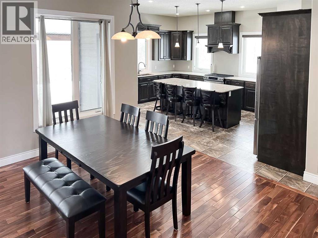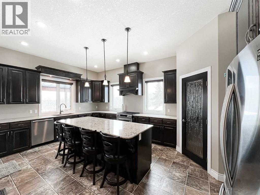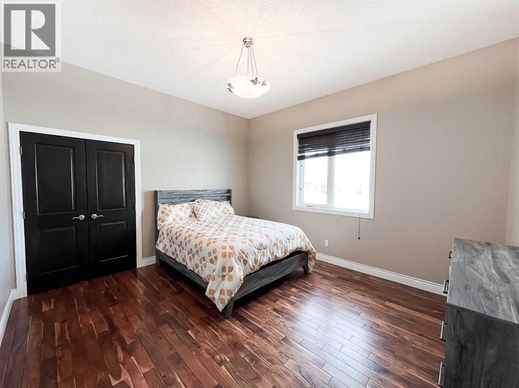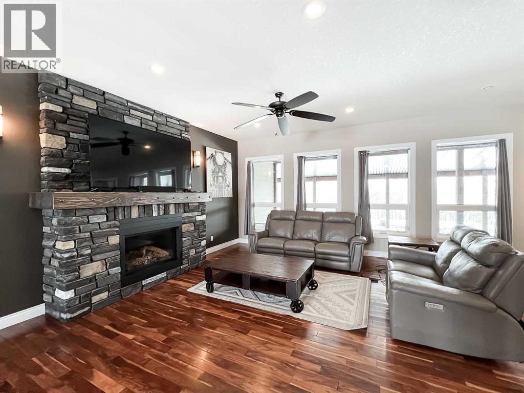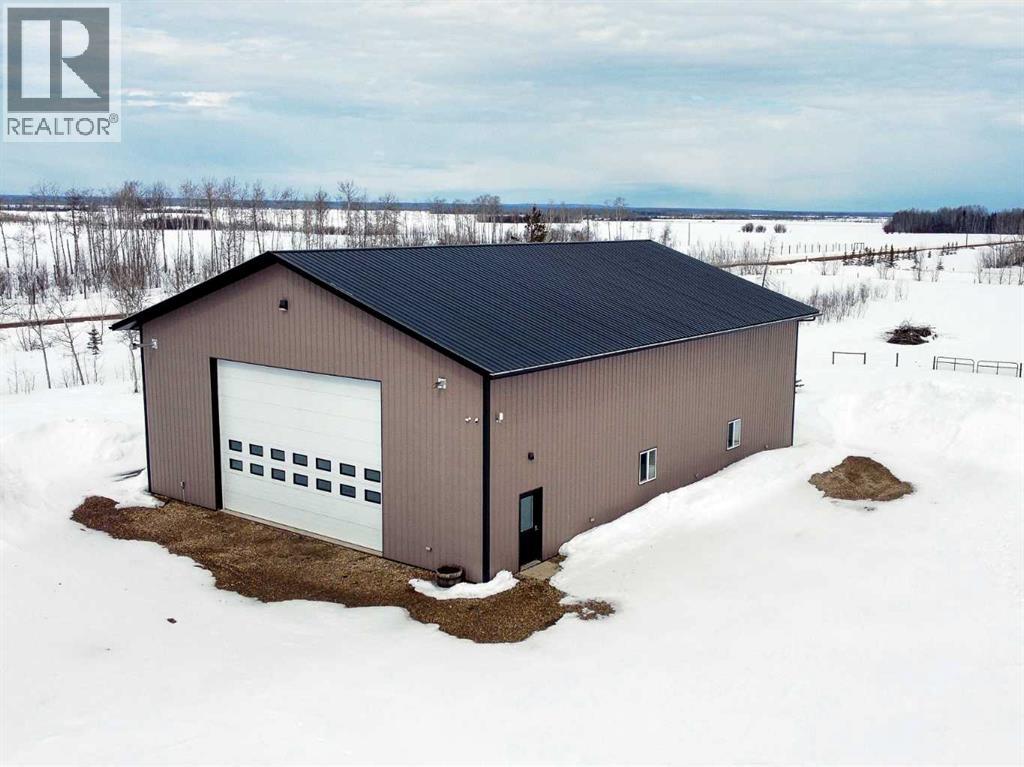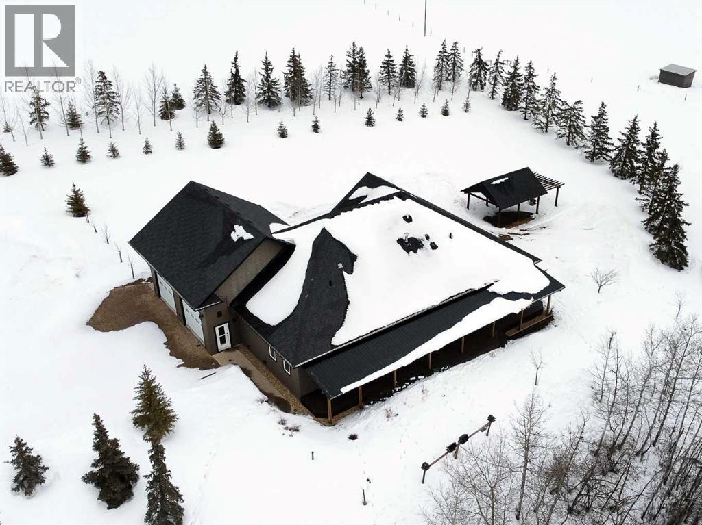 Experience refined country living on this exceptional 21.77-acre property. Ideally located just 1 km west of Manning, it offers privacy, space, and convenience. This remarkable 4-bedroom, 2-bathroom home delivers an elevated lifestyle, surrounded by natural beauty. Designed with both style and functionality in mind, the centrepiece is a stunning chef-inspired kitchen. It features an oversized eat-up island, exquisite granite countertops, stainless steel appliances, and a spacious corner pantry. Step out onto the expansive covered deck—perfect for entertaining or relaxing while taking in the views. The open-concept design flows into the dining and living areas. Here, a striking gas fireplace and expansive windows create a warm, light-filled atmosphere. The primary suite is a private sanctuary, complete with direct deck access, a generous walk-in closet, and a spa-like 5-piece ensuite. The ensuite showcases dual vanities, a luxurious jacuzzi tub, a tiled walk-in shower, and a heated towel rack. Three additional spacious bedrooms and a beautifully appointed 4-piece bathroom, with a tiled shower and soaker tub, complete the main level. Upstairs, a large loft offers versatile space for a home office, studio, or additional lounge. Premium features include central vacuum, radiant in-floor heat, on-demand hot water, and energy-efficient triple-pane windows. These ensure year-round comfort and efficiency. The attached double garage is equally well-equipped with in-floor radiant and electric heat. It also has its own 2-piece bathroom. Outdoors, the property continues to impress with a 48x64 shop (built in 2013) featuring 18-foot ceilings, a 16x24 overhead door, in-floor heating, overhead radiant heat, and a 2-piece bathroom. This space is ideal for business, hobbies, or storage. The meticulously landscaped grounds feature a mature shelterbelt, thoughtfully designed flower beds, a rock garden, a firepit area, a garden space, and a charming gazebo. Complete with concrete walkwa ys, it creates an inviting setting for everyday living and entertaining. Additionally, underground water is already in place to service the livestock pasture, making this property ideally suited for hobby farming. A private automatic gate welcomes you home, offering security and a sense of arrival. This is more than a home, it’s a private estate delivering luxury, tranquillity, and endless possibilities just minutes from town. Book your showing today! (id:63190)