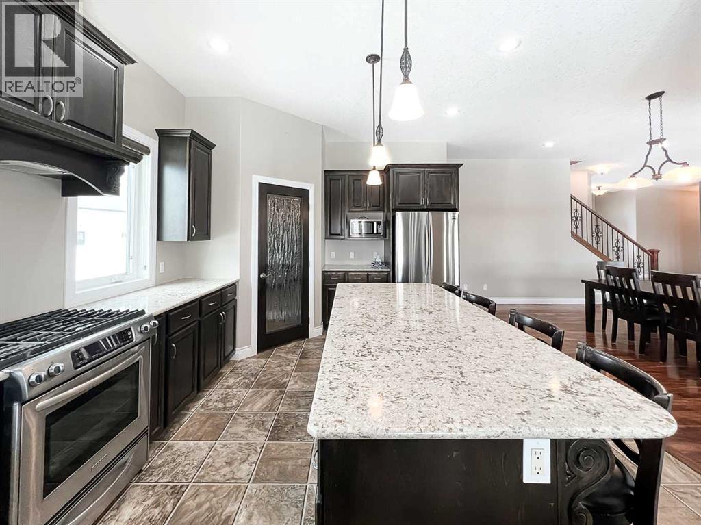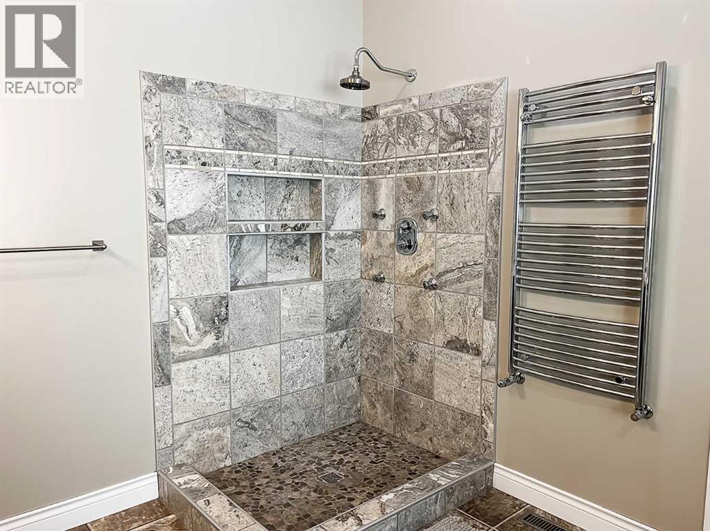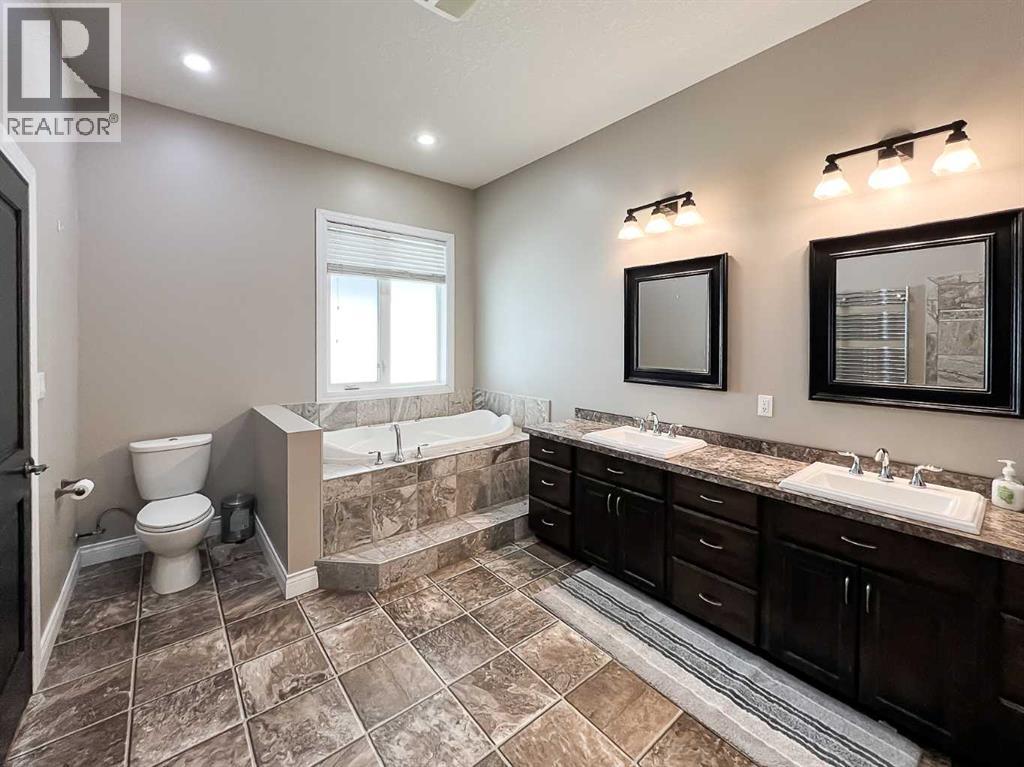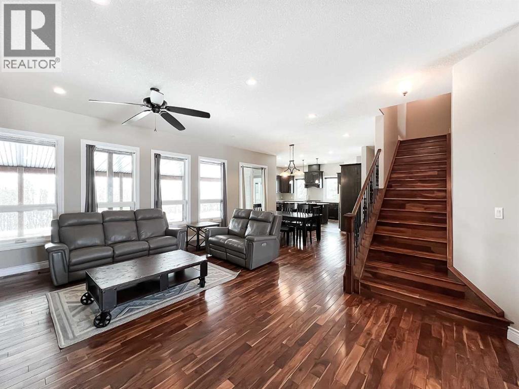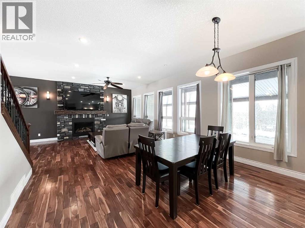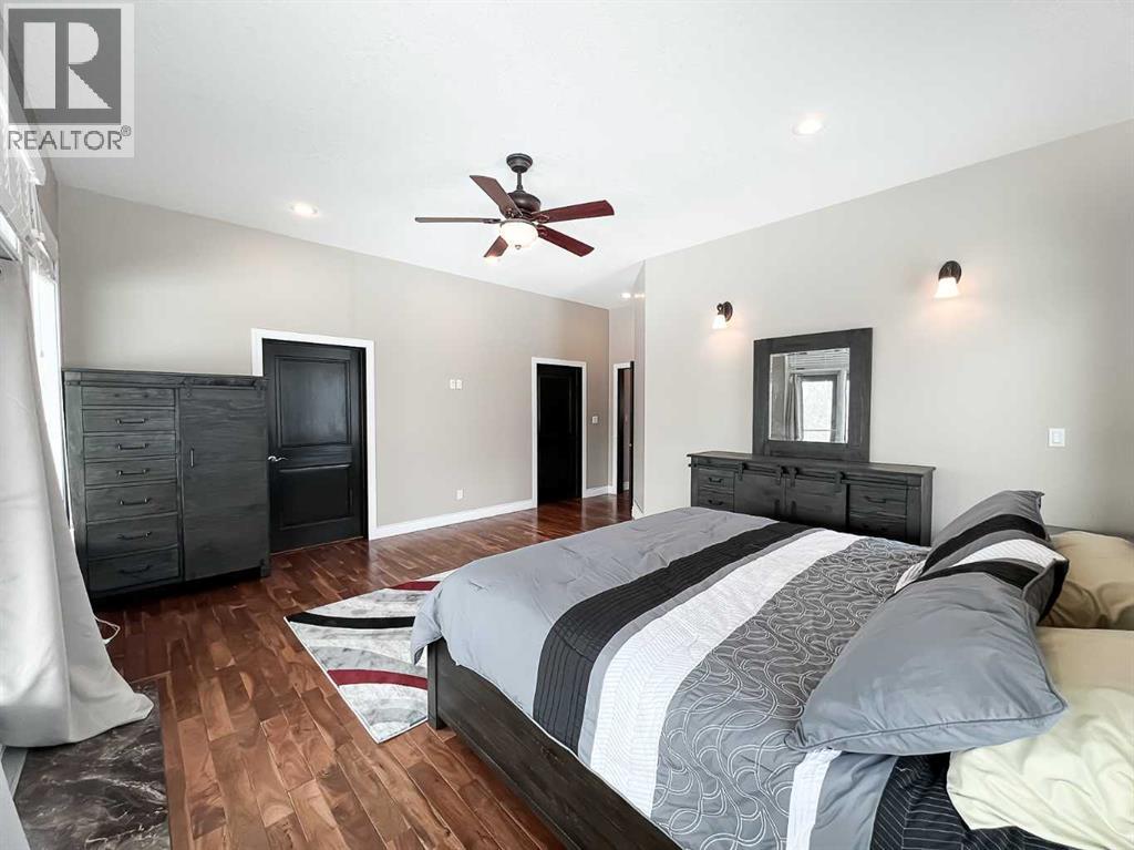 Experience refined country living on this exceptional 21.77-acre property. Ideally located just 1 km west of Manning, it offers privacy, space, and convenience. This remarkable 4-bedroom, 2-bathroom home delivers an elevated lifestyle, surrounded by natural beauty. Designed with both style and functionality in mind, the centrepiece is a stunning chef-inspired kitchen. It features an oversized eat-up island, exquisite granite countertops, stainless steel appliances, and a spacious corner pantry. Step out onto the expansive covered deck—perfect for entertaining or relaxing while taking in the views. The open-concept design flows into the dining and living areas. Here, a striking gas fireplace and expansive windows create a warm, light-filled atmosphere. The primary suite is a private sanctuary, complete with direct deck access, a generous walk-in closet, and a spa-like 5-piece ensuite. The ensuite showcases dual vanities, a luxurious jacuzzi tub, a tiled walk-in shower, and a heated towel rack. Three additional spacious bedrooms and a beautifully appointed 4-piece bathroom, with a tiled shower and soaker tub, complete the main level. Upstairs, a large loft offers versatile space for a home office, studio, or additional lounge. Premium features include central vacuum, radiant in-floor heat, on-demand hot water, and energy-efficient triple-pane windows. These ensure year-round comfort and efficiency. The attached double garage is equally well-equipped with in-floor radiant and electric heat. It also has its own 2-piece bathroom. Outdoors, the property continues to impress with a 48x64 shop (built in 2013) featuring 18-foot ceilings, a 16x24 overhead door, in-floor heating, overhead radiant heat, and a 2-piece bathroom. This space is ideal for business, hobbies, or storage. The meticulously landscaped grounds feature a mature shelterbelt, thoughtfully designed flower beds, a rock garden, a firepit area, a garden space, and a charming gazebo. Complete with concrete walkwa ys, it creates an inviting setting for everyday living and entertaining. Additionally, underground water is already in place to service the livestock pasture, making this property ideally suited for hobby farming. A private automatic gate welcomes you home, offering security and a sense of arrival. This is more than a home, it’s a private estate delivering luxury, tranquillity, and endless possibilities just minutes from town. Book your showing today! (id:63190)