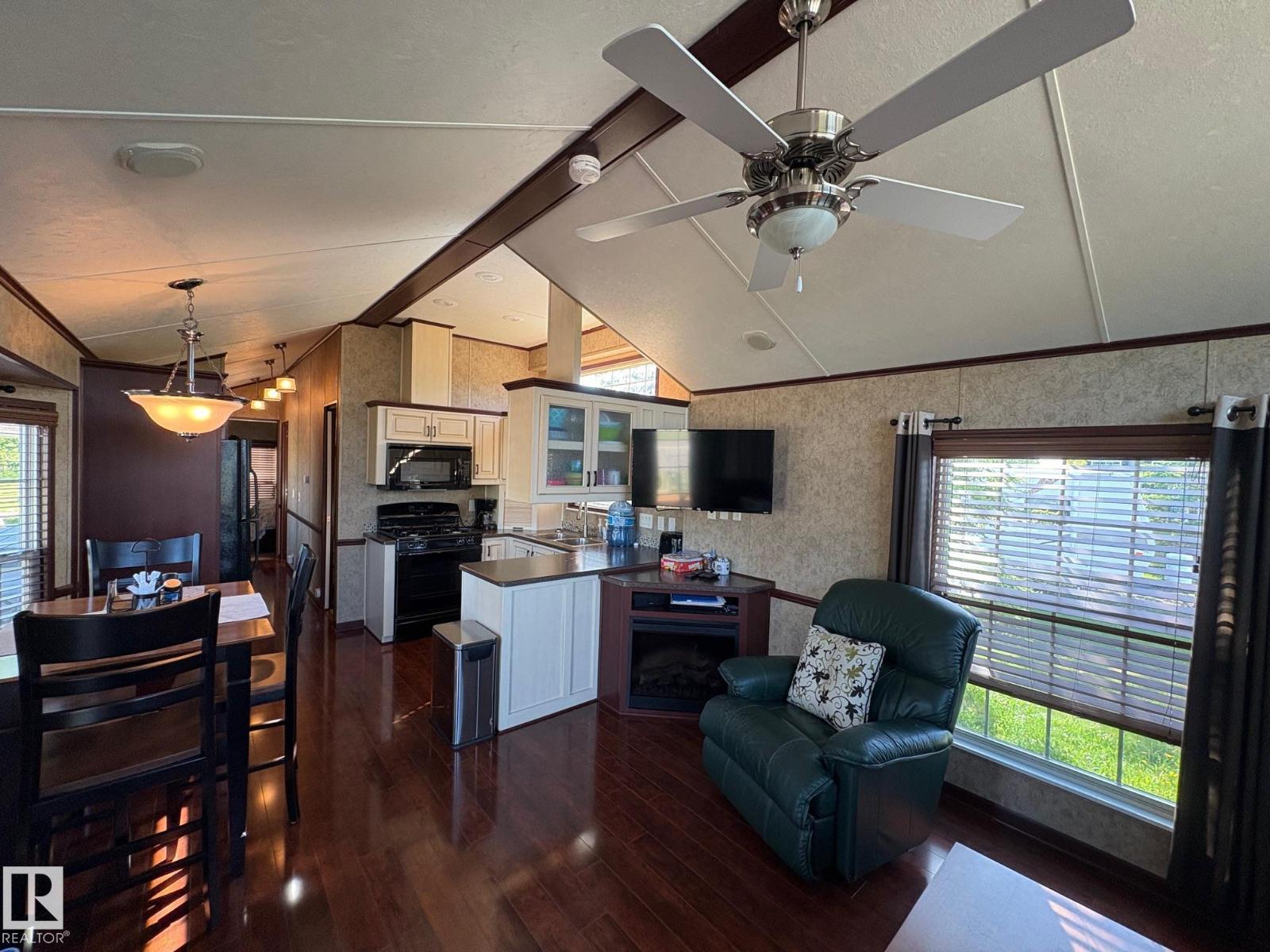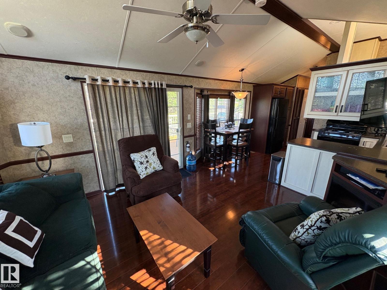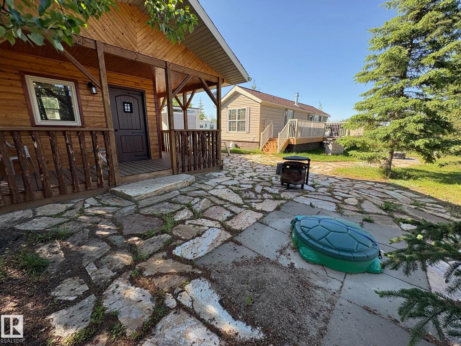 Welcome To Wood Creek Resort at Moose Lake! This seasonal park model is in like-new condition with many additional amenities. Fully equipped with all the comforts of being at home including central heating & air conditioning system, central vac, built in speaker system, vaulted ceilings throughout & built in cabinetry. The main living space is open & spacious, the living room is complete with a gas fireplace, patio door onto the deck & the kitchen is sure to impress! Full appliance package, fridge, gas stove & dishwasher. Outside you will find a huge maintenance free sun deck, an amazing flagstone fire pit & picnic area complete with built in bar. The bunkhouse gives room for occasional visitors. Features a 750 gal cistern, a 750 gal septic holding tank, 100 amp electrical service & paved parking pad! Located in a gated, lakefront community with all the amenities; playground, walking trails, boat & swim piers, paved roads & only 10 minutes from Bonnyville! Live the lake lifestyle this summer! (id:63190)