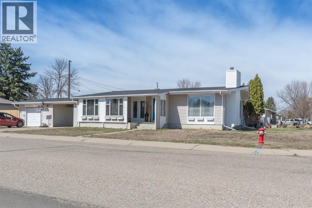 Welcome to this charming bungalow in the quiet, central neighbourhood of Norwood! Situated on a spacious corner lot, this 1,026 sqft home offers incredible versatility with 5 bedrooms and 2 full bathrooms—perfect for growing families or those needing extra space. You’ll love the location and functionality here, with ample parking thanks to the attached single garage, carport, and generous lot size. The private covered front deck is an ideal spot to relax and unwind. Step inside to a bright and inviting main floor featuring vaulted ceilings, fresh paint, and updated vinyl flooring throughout the main living space. The layout seamlessly connects the living and dining, with the kitchen close by, making it perfect for both everyday living and entertaining. The renovated 4 pc bathroom and 3 main floor bedrooms complete this level. Downstairs, you’ll find even more room to spread out with a spacious rec room, 2 additional bedrooms, a 3 pc bathroom, a large laundry area with shelving, and plenty of storage. The backyard offers fruit trees, new fencing on one side, and plenty of potential to create your own outdoor oasis. With new shingles and an updated furnace, plus a fantastic location close to schools, parks, and amenities, this home is move-in ready with room to make it your own. (id:63190)