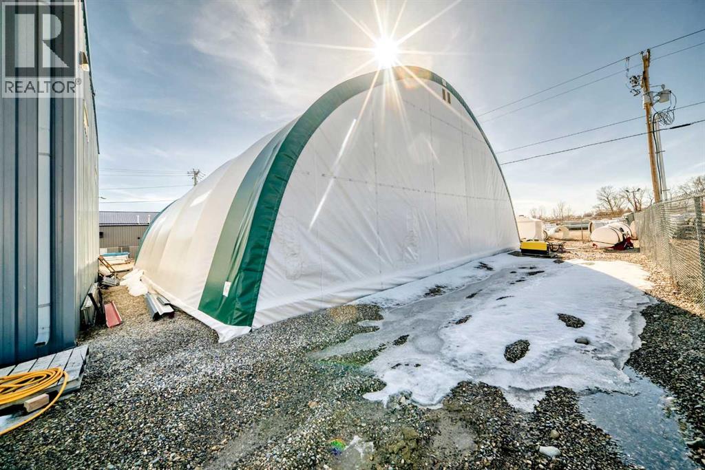 1 Acre Lot. Highly Functional Light Industrial Building. 8064 square feet main level plus 1225 square foot mezzanine. Additional Engineered fabric Structure for Cold Storage . 46 x 60 2760 square feet. Owner-Users and Investors seeking quality industrial space with yard capability. High Function Layout suitable for trades, fabrication, logistics, and service companies. Bring Your Business to Strathmore, AB Fully Developed Commercial/Industrial Space . 7 private offices – ready to move into Reception & meeting area – welcoming and functional Conference room – ideal for team collaboration Flex area – adaptable to your business needs. Storage room – organized space for supplies bathrooms – convenience for staff and clients 4 Attached Industrial Bays – 46’ x 34’6 with 16’ x 14’ electric doors. Secured Fenced Yard 3 Storage Sheds. Excellent Access for trucks and equipment. Located in the growing community of Strathmore, AB Bring your Business. Ready for relocation and expansion. Great Proximity to Calgary and Major Employers County of Wheatland. De Havilland Canada. CGC's Wallboard Plant Western Canada. Phyto Organix. Nutrien. Strathmore Alberta's growth is not speculative- it is measurable, diversified, and accelerating. Supported by Strong Economic Fundamentals and Major Regional Projects. Regional Hub Serving 40,000+ People. Strathmore's population is 15,853. One of Alberta's most dynamic and diversified growth corridors. (id:63190)