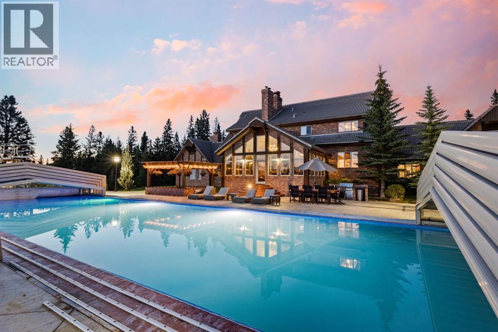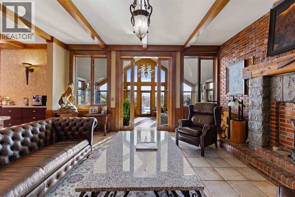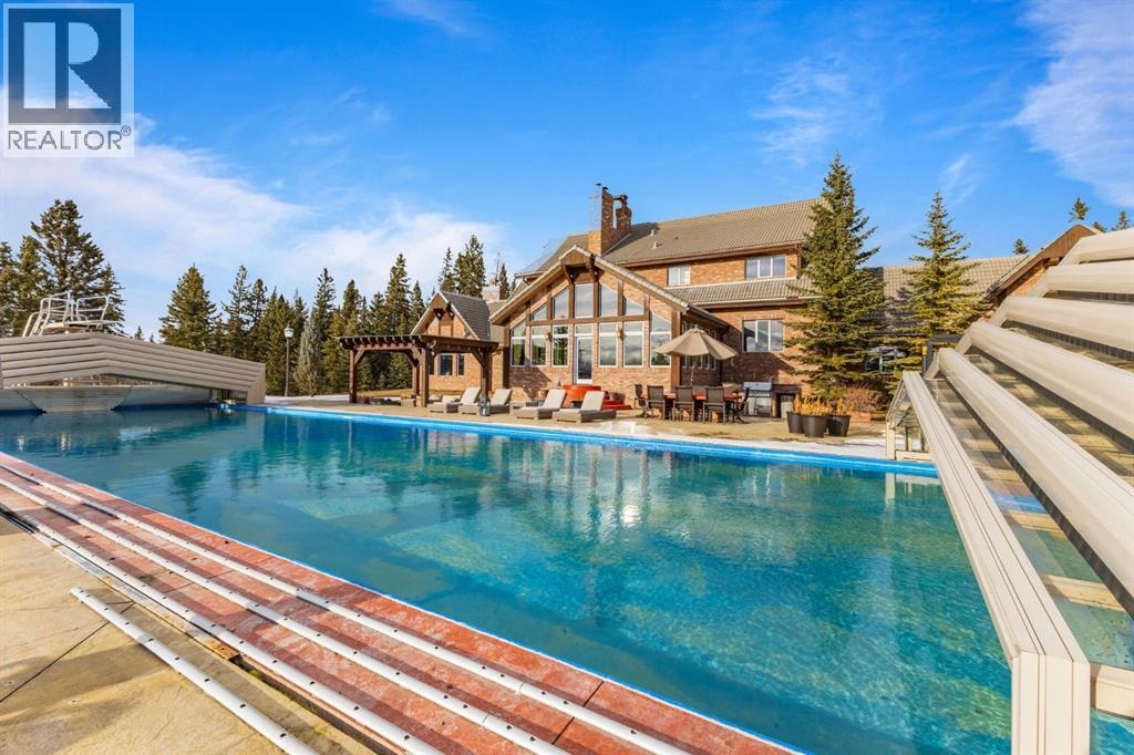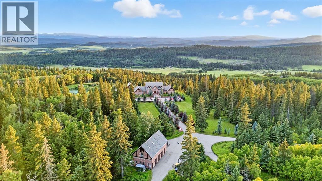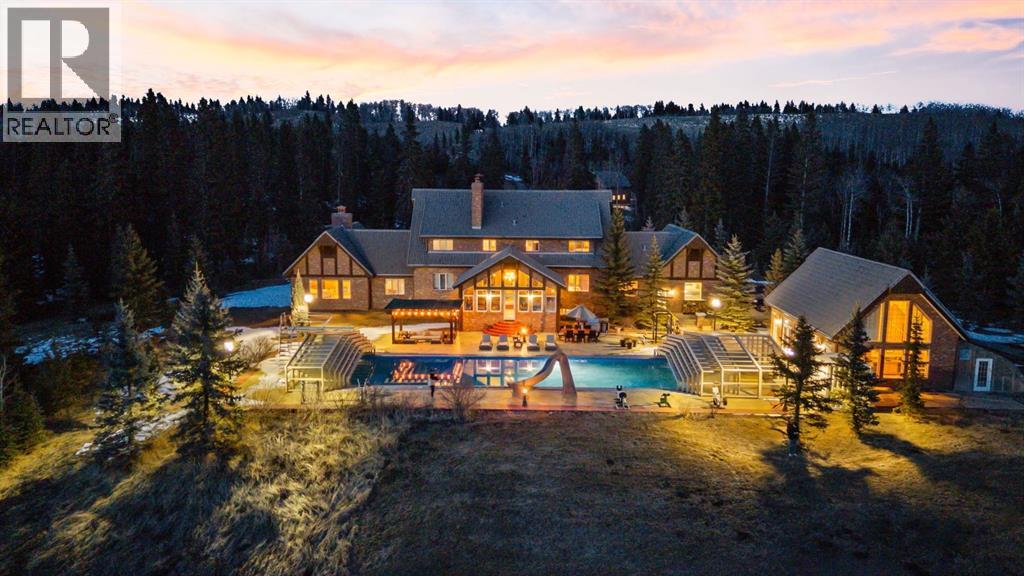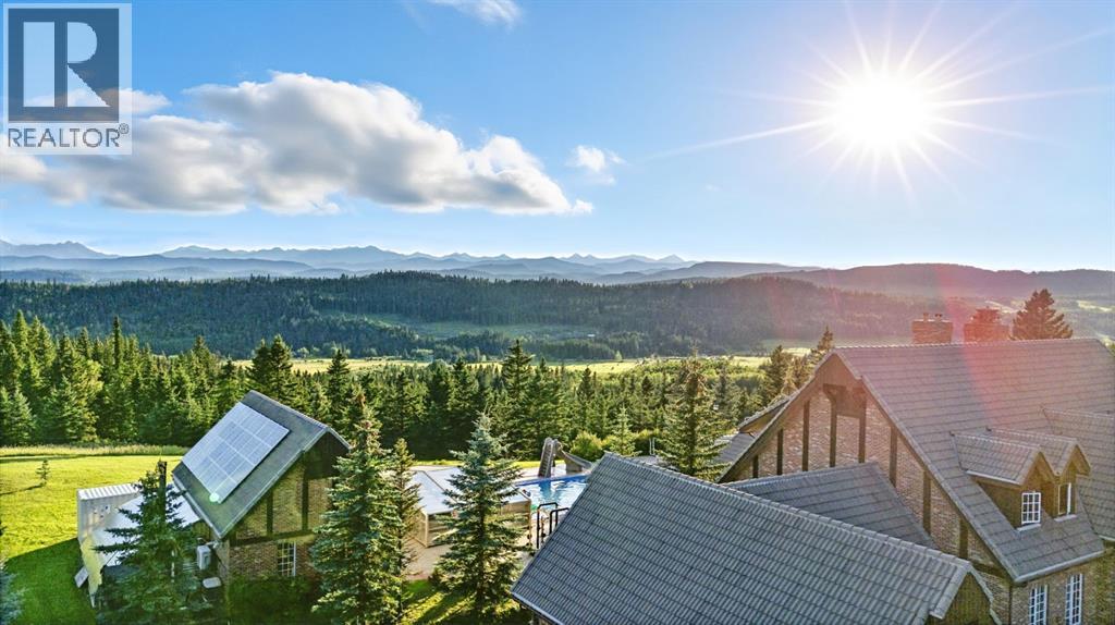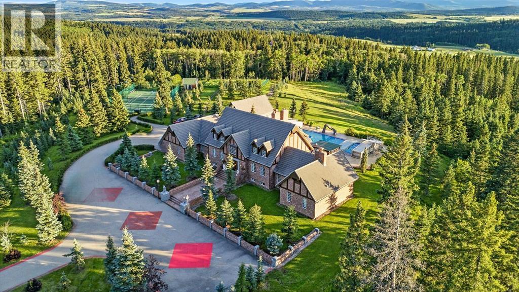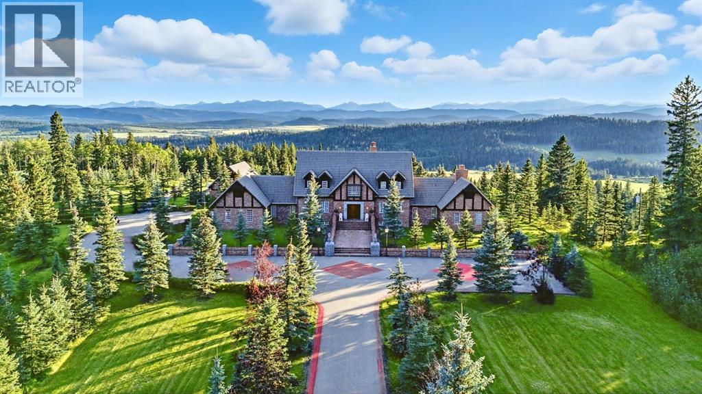 This is a rare and exceptional opportunity to own a 192-acre estate in the highly sought-after Millarville area. Perched at an elevation of 5,000 feet, this extraordinary property offers breathtaking mountain views and an array of premium amenities. At its heart lies a custom-built, European-style two-story residence, thoughtfully designed for both luxury living and recreation. Spanning over 8,000 sq. ft., the stately brick residence features seven bedrooms and 6/2 bathrooms, including five en-suites. The home offers a formal study, an elegant dining room, a main-floor primary suite (with an additional primary suite on the second level), and private nanny quarters. A stunning sunroom with floor-to-ceiling windows provides an idyllic space to take in the breathtaking views of the pool and Rocky Mountains. Meticulously crafted with exceptional detail, the home showcases custom hand-carved woodwork, coffered ceilings, four fireplaces (one wood-burning and three gas), and a combination of hardwood and custom tile flooring. Italian marble finishes add a touch of sophistication to most bathrooms. The chef’s kitchen, features an open-concept layout with beamed ceilings, a unique brick island and dining table, a rare AGA range and high-end built-in appliances blend seamlessly with the custom cabinetry. The main-floor primary suite is a true retreat, boasting a grand gas fireplace, spectacular mountain views, and an opulent ensuite with separate his-and-her bathrooms, walk-in closets, dual showers, and a stunning clawfoot tub as the centrepiece. The estate is designed for year-round enjoyment, featuring a 24x80 heated outdoor saltwater pool enclosed within a custom glass structure. This impressive pool—measuring four meters at its deepest point—includes a 10-foot diving board, a slide, and panoramic 180-degree mountain views. Heated flooring surrounds the pool area, while a beautifully designed pergola provides the perfect space for entertaining. Adjacent to the pool , the pool house offers added convenience, complete with a kitchenette, a loft, washer/dryer, a/c, and a bathroom featuring a steam shower. For sporting enthusiasts, the property boasts world-class shooting facilities, including: Rifle ranges, Skeet shooting range, Olympic double shooting range, Rabbit clay setup, High sporting clay doubles and mini doubles. Dirt bike riders will appreciate the professionally designed 2-3 km motocross track, featuring 60-80 jumps at the northern end of the property. Equestrian enthusiasts will find 20 acres of open fields, ideal for grazing. Nearby, a 2-3 acre pond—equipped with aerators and stocked with 800 trout—adds to the property’s natural beauty. Additionally the Estates features include a Tennis court, a 40x20 carriage house (easily convertible into a barn with dutch doors) with an upstairs man cave, a 80x30 quonset, and a Charming 300 sq. ft. log cabin with loft and wood-burning fireplace. This one-of-a-kind property must be seen to be truly appreciated. (id:63190)