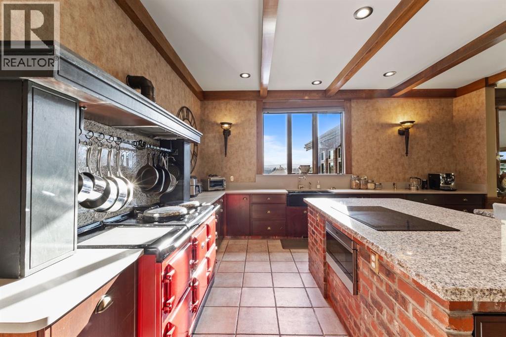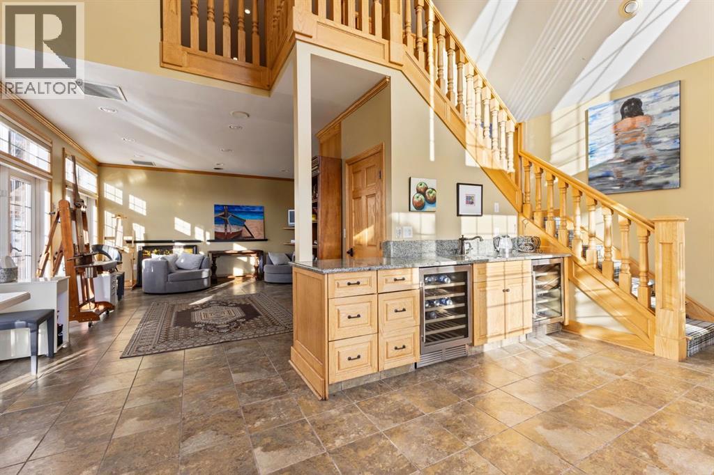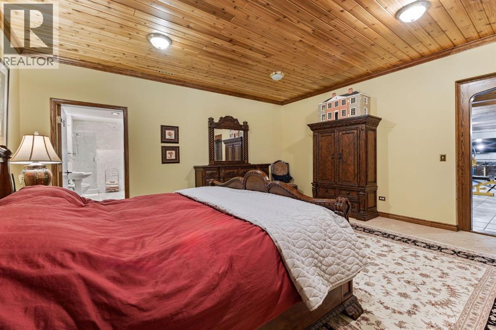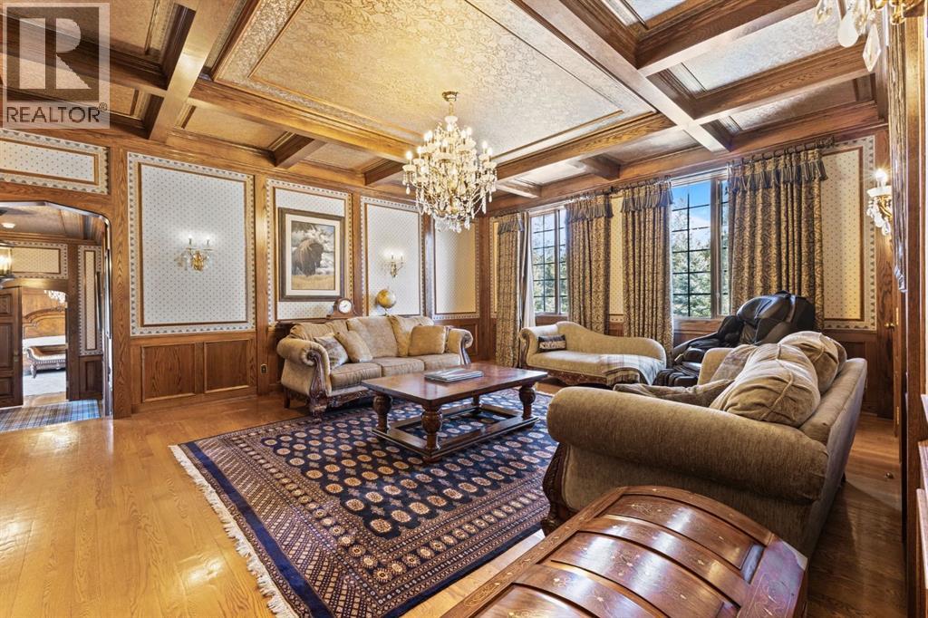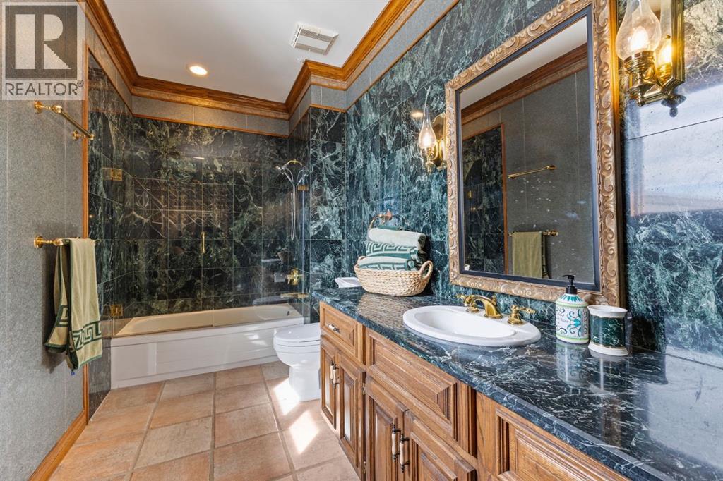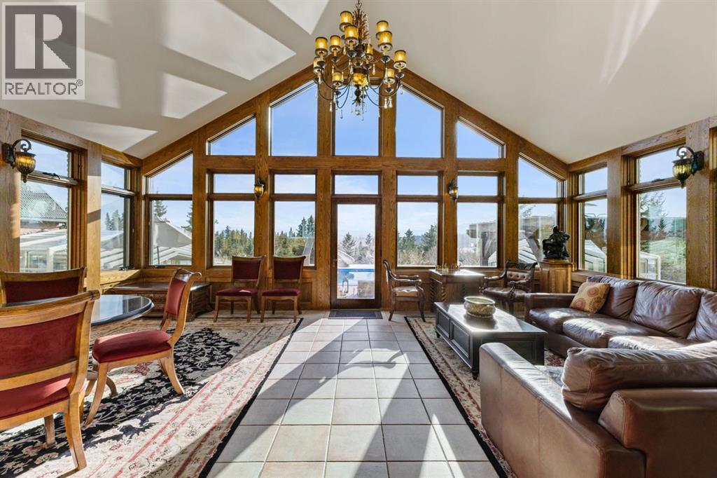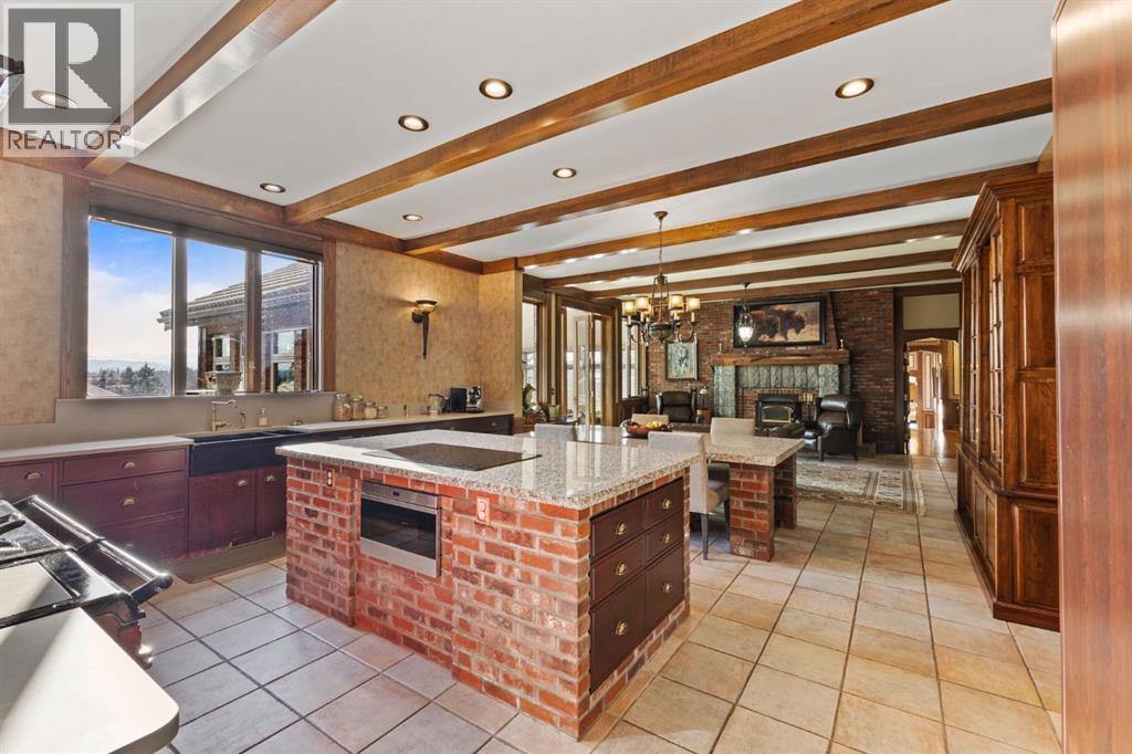 This is a rare and exceptional opportunity to own a 192-acre estate in the highly sought-after Millarville area. Perched at an elevation of 5,000 feet, this extraordinary property offers breathtaking mountain views and an array of premium amenities. At its heart lies a custom-built, European-style two-story residence, thoughtfully designed for both luxury living and recreation. Spanning over 8,000 sq. ft., the stately brick residence features seven bedrooms and 6/2 bathrooms, including five en-suites. The home offers a formal study, an elegant dining room, a main-floor primary suite (with an additional primary suite on the second level), and private nanny quarters. A stunning sunroom with floor-to-ceiling windows provides an idyllic space to take in the breathtaking views of the pool and Rocky Mountains. Meticulously crafted with exceptional detail, the home showcases custom hand-carved woodwork, coffered ceilings, four fireplaces (one wood-burning and three gas), and a combination of hardwood and custom tile flooring. Italian marble finishes add a touch of sophistication to most bathrooms. The chef’s kitchen, features an open-concept layout with beamed ceilings, a unique brick island and dining table, a rare AGA range and high-end built-in appliances blend seamlessly with the custom cabinetry. The main-floor primary suite is a true retreat, boasting a grand gas fireplace, spectacular mountain views, and an opulent ensuite with separate his-and-her bathrooms, walk-in closets, dual showers, and a stunning clawfoot tub as the centrepiece. The estate is designed for year-round enjoyment, featuring a 24x80 heated outdoor saltwater pool enclosed within a custom glass structure. This impressive pool—measuring four meters at its deepest point—includes a 10-foot diving board, a slide, and panoramic 180-degree mountain views. Heated flooring surrounds the pool area, while a beautifully designed pergola provides the perfect space for entertaining. Adjacent to the pool , the pool house offers added convenience, complete with a kitchenette, a loft, washer/dryer, a/c, and a bathroom featuring a steam shower. For sporting enthusiasts, the property boasts world-class shooting facilities, including: Rifle ranges, Skeet shooting range, Olympic double shooting range, Rabbit clay setup, High sporting clay doubles and mini doubles. Dirt bike riders will appreciate the professionally designed 2-3 km motocross track, featuring 60-80 jumps at the northern end of the property. Equestrian enthusiasts will find 20 acres of open fields, ideal for grazing. Nearby, a 2-3 acre pond—equipped with aerators and stocked with 800 trout—adds to the property’s natural beauty. Additionally the Estates features include a Tennis court, a 40x20 carriage house (easily convertible into a barn with dutch doors) with an upstairs man cave, a 80x30 quonset, and a Charming 300 sq. ft. log cabin with loft and wood-burning fireplace. This one-of-a-kind property must be seen to be truly appreciated. (id:63190)