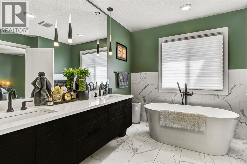 Welcome to this exceptional two-storey home built by Deeproot Homes, perfectly situated in the peaceful community of Whispering Ridge. Located on one of the area’s most sought-after, well-established streets, this property enjoys a prime setting directly across from a scenic pond. Offering 2,395 sqft above grade, this fully upgraded two-storey with a triple heated garage and Air conditioned home. The exterior features durable and attractive Hardie Plank siding and stone, providing long-lasting protection with modern curb appeal. The home also features soffit lighting. Step inside to an inviting, open-concept main floor designed for everyday living and entertaining. You’ll find a front office, a bright and spacious living room with a fireplace, a convenient powder room, and a practical garage entry with built-in storage. The dining area flows seamlessly into a beautifully appointed kitchen, complete with quartz countertops, a large island, and a butler’s pantry with additional cabinetry and prep space.Upstairs, the home continues to impress with a generous bonus room, a full main bathroom, and three well-sized bedrooms, including a large primary suite featuring a walk-in closet with direct access to the laundry room and a unique two-sided fireplace, creating a warm and relaxing atmosphere. The luxurious ensuite includes dual sinks, a freestanding tub, and a beautifully tiled glass shower. This home is filled with natural light, enhanced by large windows and a desirable south facing backyard that offers a spacious deck and mature evergreen trees. The yard is nicely landscaped with a low maintenance lawn and a fire pit area that backs onto paved walking trails. With all the upgrades already complete and a location that’s second to none, this is a rare opportunity to own a truly standout home in Whispering Ridge! (id:63190)