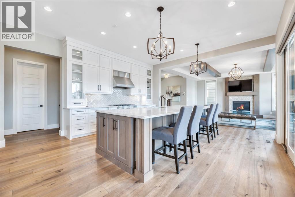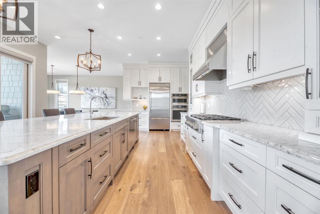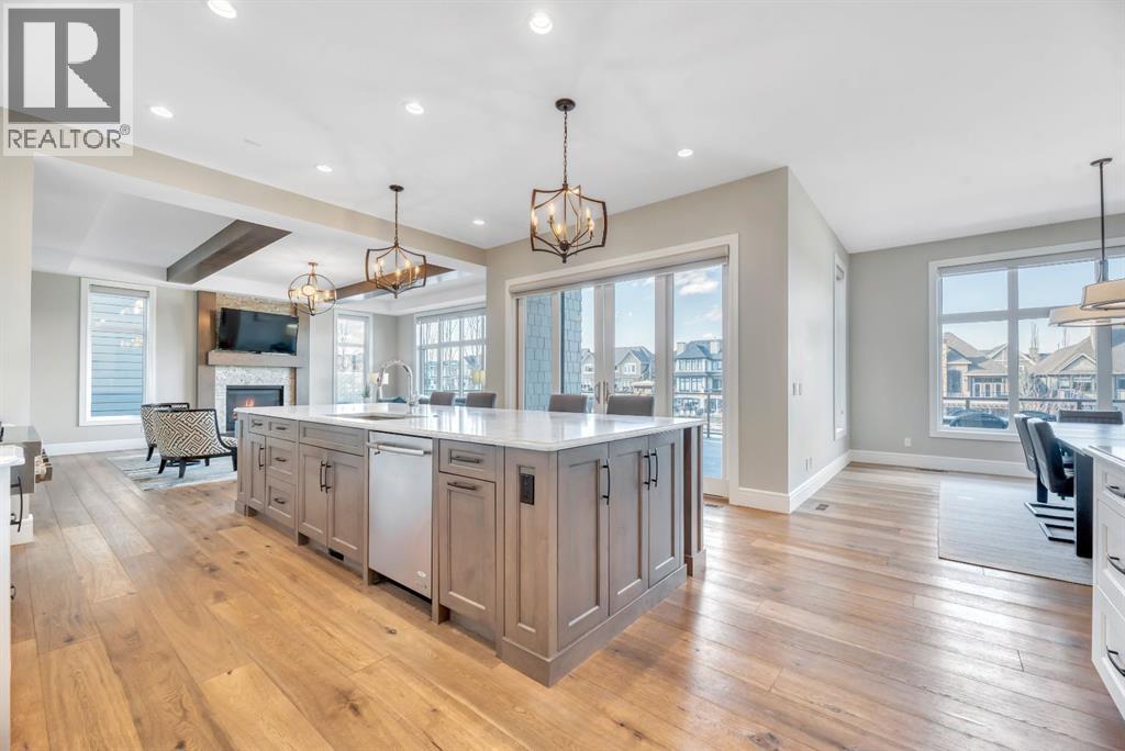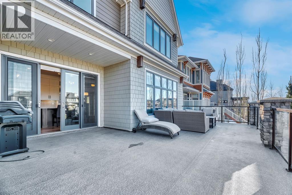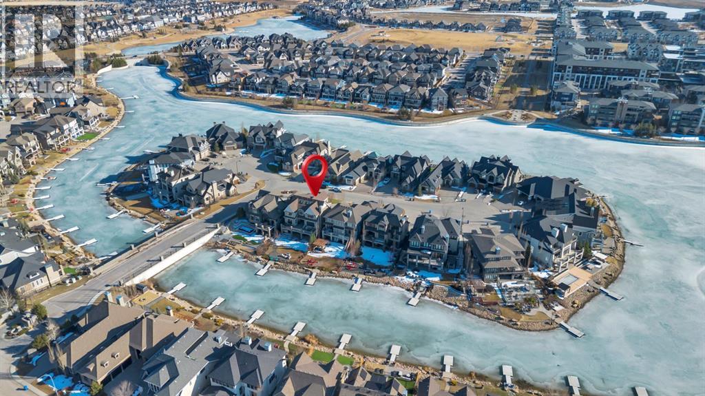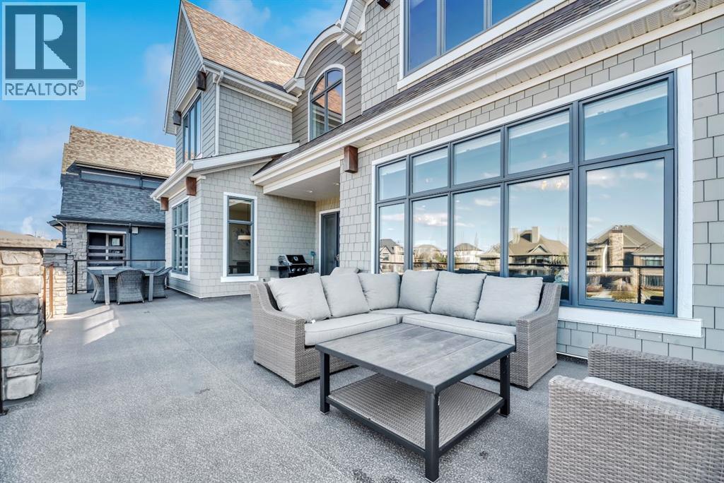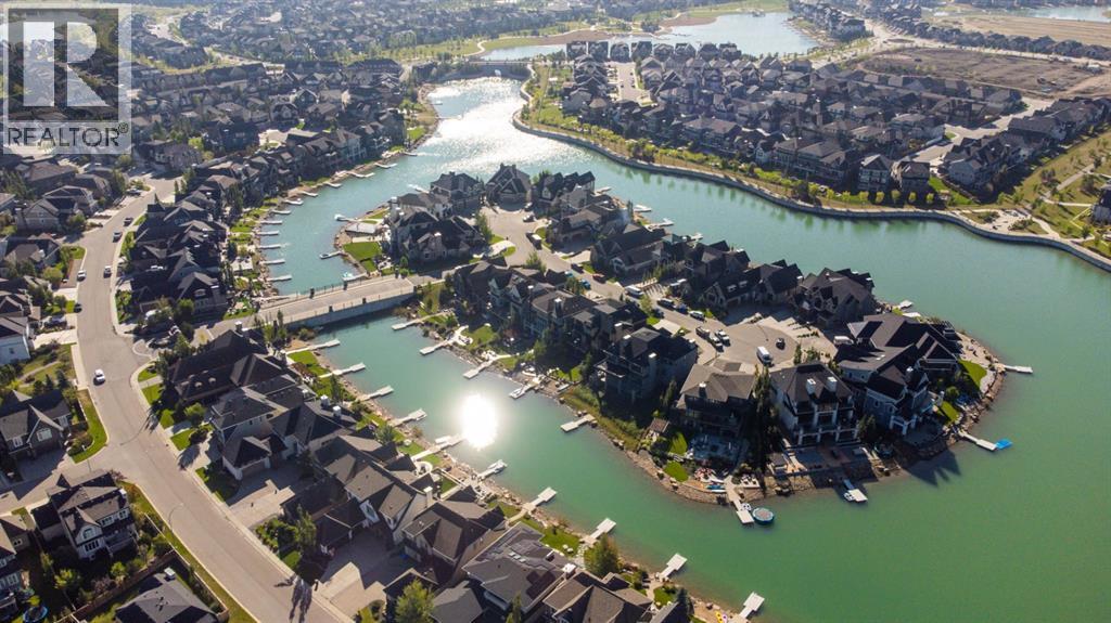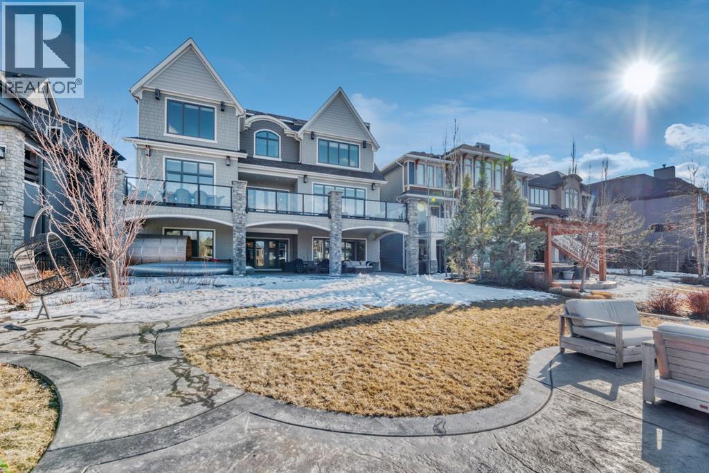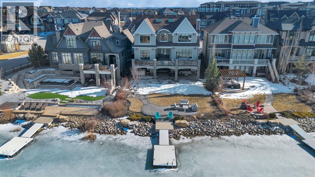 Experience elevated lake living on prestigious Mahogany Island, where exclusive island access, a private dock, beachfront surroundings, and year-round lake privileges create a truly exceptional lifestyle. Built by Calbridge Homes, this impressive Berkeley III offers over 5,100 sq. ft. of refined living space in one of Calgary’s most sought-after communities.The main floor showcases an open-concept design with soaring ceilings, 8-foot doors, gorgeous hardwood flooring, and a seamless flow for everyday living and entertaining. At the heart of the home is the chef-inspired kitchen, beautifully appointed with upgraded built-in stainless steel appliances, granite and quartz countertops, an oversized island, and elevated cabinetry. Adjacent the kitchen, is a sizable dining room with an additional bank of cabinets, great for cocktails or coffee bar. A main floor den adds flexibility for a home office or quiet retreat. Designed with both luxury and function in mind, this spacious estate home features 5 bedrooms and 5 full plus 1 half bathrooms, including 4 bedrooms upstairs and 1 in the fully developed walkout basement. With private ensuites in 3 of the bedrooms, this is an ideal layout for families, guests, or multi-generational living. Architectural features such as Hipped ceilings, skylights and arched windows make this home so very unique. The fully finished walkout basement with in-floor heating slab extends the living space with comfort and versatility, a generous entertainment area with wet bar, a full bathroom, and a fifth bedroom plus ample storage space in the mechanical room.Complimenting this home is an exceptional heated, side drive triple garage, with the third bay designed to accommodate a lift—perfect for car enthusiasts or additional storage needs with lots of room on the driveway for visitors. Outside is where it’s at! Enjoy a spacious full width upper deck just off the main living area as well as convenient lower patio area beyond the rec room. The yard is fabulously designed and professionally landscaped to enjoy hot summer days jumping off the dock or playing with your favorite lake toys and quiet evenings enjoying a toasty fire.This is an extremely rare opportunity to own a luxurious family home in an exclusive, gated lake community where upscale living meets the best of Mahogany’s island lifestyle. (id:63190)