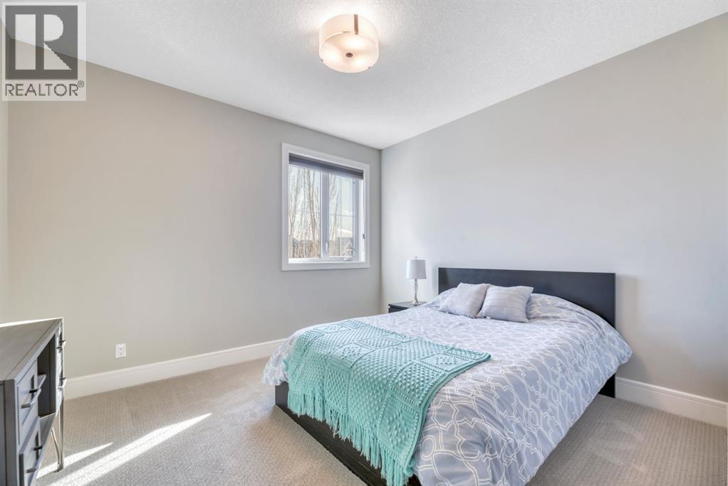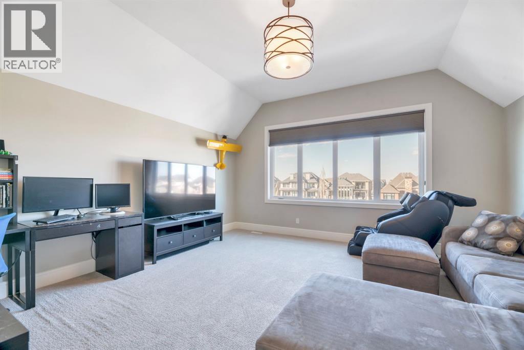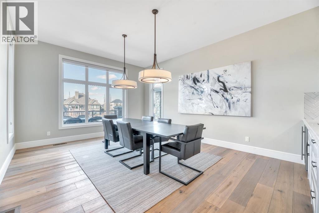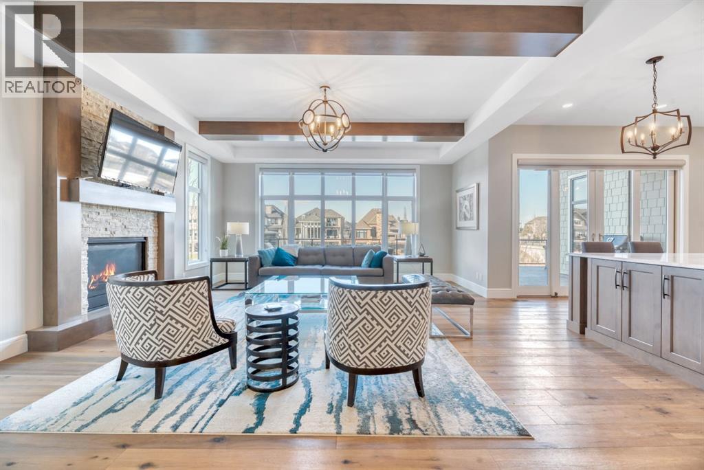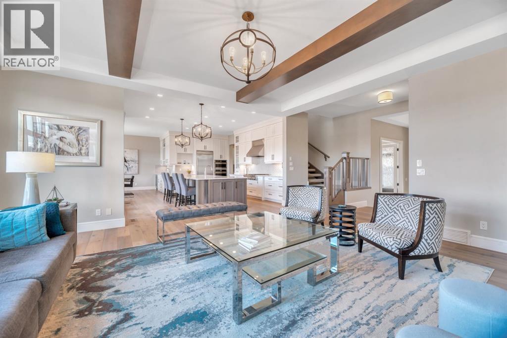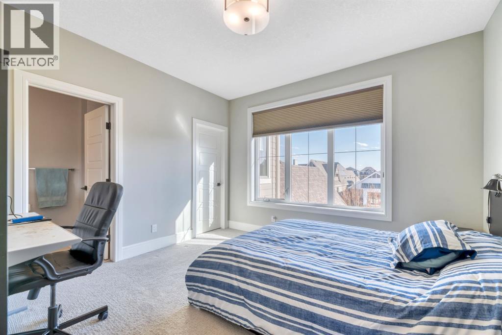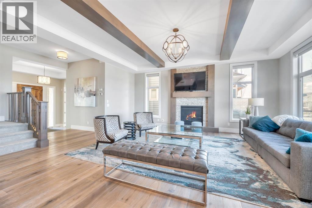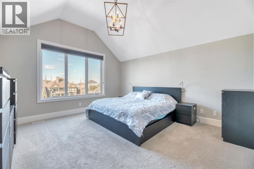Experience elevated lake living on prestigious Mahogany Island, where exclusive island access, a private dock, beachfront surroundings, and year-round lake privileges create a truly exceptional lifestyle. Built by Calbridge Homes, this impressive Berkeley III offers over 5,100 sq. ft. of refined living space in one of Calgary’s most sought-after communities.The main floor showcases an open-concept design with soaring ceilings, 8-foot doors, gorgeous hardwood flooring, and a seamless flow for everyday living and entertaining. At the heart of the home is the chef-inspired kitchen, beautifully appointed with upgraded built-in stainless steel appliances, granite and quartz countertops, an oversized island, and elevated cabinetry. Adjacent the kitchen, is a sizable dining room with an additional bank of cabinets, great for cocktails or coffee bar. A main floor den adds flexibility for a home office or quiet retreat. Designed with both luxury and function in mind, this spacious estate home features 5 bedrooms and 5 full plus 1 half bathrooms, including 4 bedrooms upstairs and 1 in the fully developed walkout basement. With private ensuites in 3 of the bedrooms, this is an ideal layout for families, guests, or multi-generational living. Architectural features such as Hipped ceilings, skylights and arched windows make this home so very unique. The fully finished walkout basement with in-floor heating slab extends the living space with comfort and versatility, a generous entertainment area with wet bar, a full bathroom, and a fifth bedroom plus ample storage space in the mechanical room.Complimenting this home is an exceptional heated, side drive triple garage, with the third bay designed to accommodate a lift—perfect for car enthusiasts or additional storage needs with lots of room on the driveway for visitors. Outside is where it’s at! Enjoy a spacious full width upper deck just off the main living area as well as convenient lower patio area beyond the rec room. The yard is fabulously designed and professionally landscaped to enjoy hot summer days jumping off the dock or playing with your favorite lake toys and quiet evenings enjoying a toasty fire.This is an extremely rare opportunity to own a luxurious family home in an exclusive, gated lake community where upscale living meets the best of Mahogany’s island lifestyle. (id:63190)