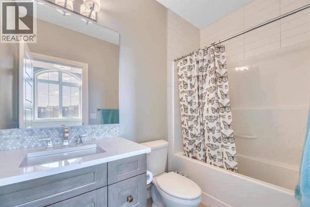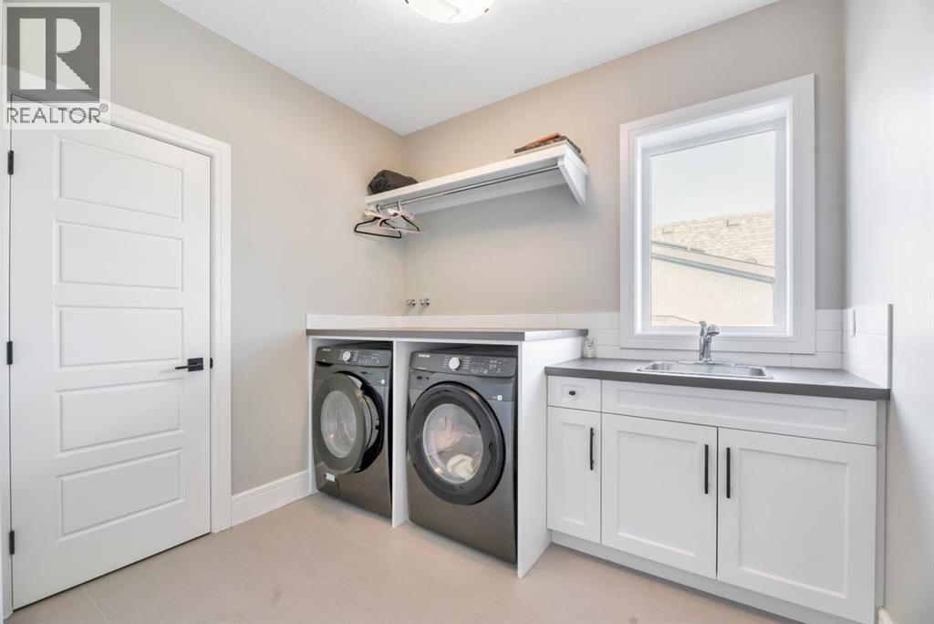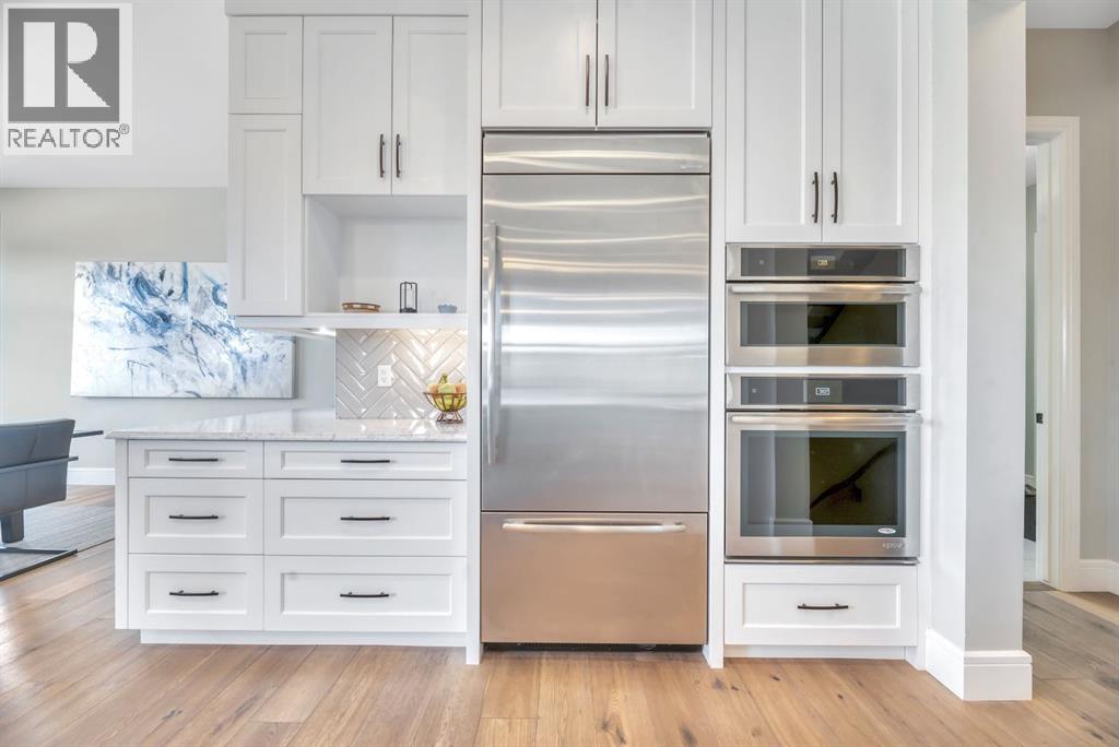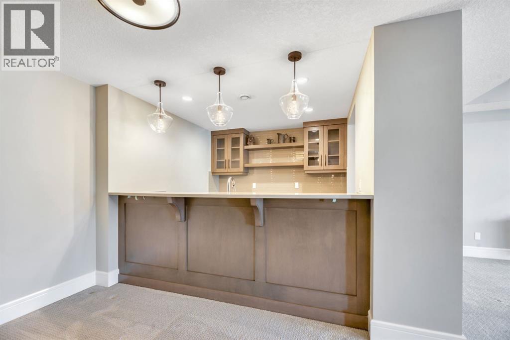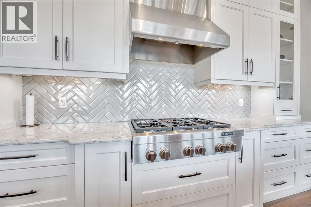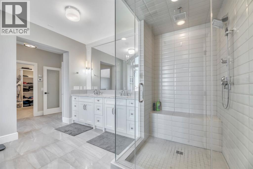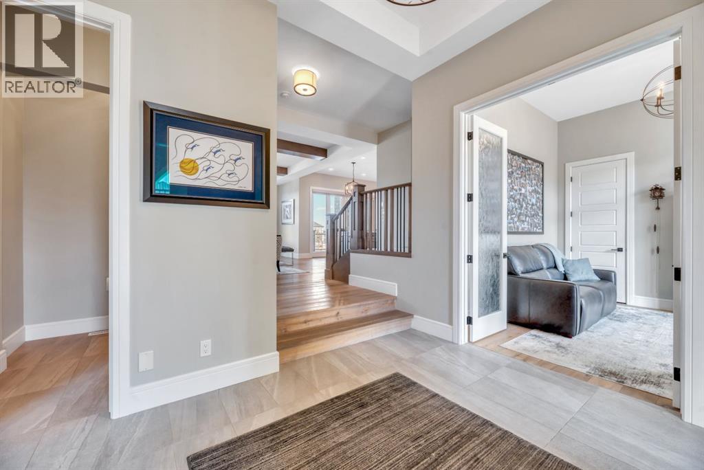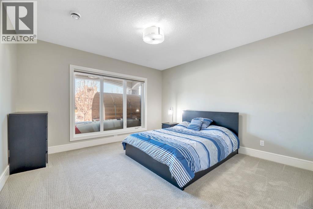Experience elevated lake living on prestigious Mahogany Island, where exclusive island access, a private dock, beachfront surroundings, and year-round lake privileges create a truly exceptional lifestyle. Built by Calbridge Homes, this impressive Berkeley III offers over 5,100 sq. ft. of refined living space in one of Calgary’s most sought-after communities.The main floor showcases an open-concept design with soaring ceilings, 8-foot doors, gorgeous hardwood flooring, and a seamless flow for everyday living and entertaining. At the heart of the home is the chef-inspired kitchen, beautifully appointed with upgraded built-in stainless steel appliances, granite and quartz countertops, an oversized island, and elevated cabinetry. Adjacent the kitchen, is a sizable dining room with an additional bank of cabinets, great for cocktails or coffee bar. A main floor den adds flexibility for a home office or quiet retreat. Designed with both luxury and function in mind, this spacious estate home features 5 bedrooms and 5 full plus 1 half bathrooms, including 4 bedrooms upstairs and 1 in the fully developed walkout basement. With private ensuites in 3 of the bedrooms, this is an ideal layout for families, guests, or multi-generational living. Architectural features such as Hipped ceilings, skylights and arched windows make this home so very unique. The fully finished walkout basement with in-floor heating slab extends the living space with comfort and versatility, a generous entertainment area with wet bar, a full bathroom, and a fifth bedroom plus ample storage space in the mechanical room.Complimenting this home is an exceptional heated, side drive triple garage, with the third bay designed to accommodate a lift—perfect for car enthusiasts or additional storage needs with lots of room on the driveway for visitors. Outside is where it’s at! Enjoy a spacious full width upper deck just off the main living area as well as convenient lower patio area beyond the rec room. The yard is fabulously designed and professionally landscaped to enjoy hot summer days jumping off the dock or playing with your favorite lake toys and quiet evenings enjoying a toasty fire.This is an extremely rare opportunity to own a luxurious family home in an exclusive, gated lake community where upscale living meets the best of Mahogany’s island lifestyle. (id:63190)