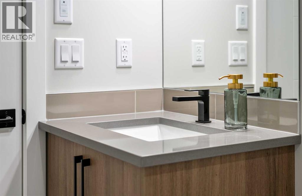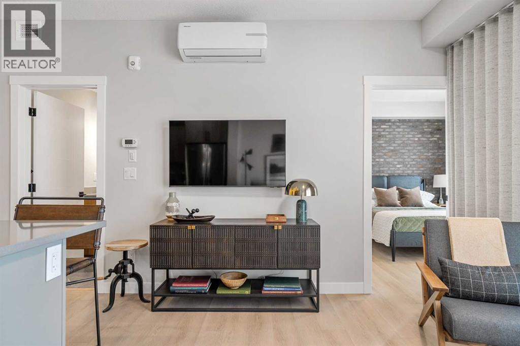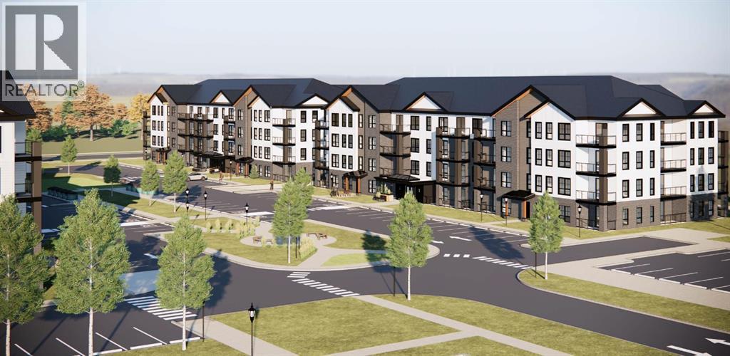 Welcome to the Brylee by Partners Homes, a thoughtfully designed 2 bedroom, 2 bathroom main floor condo in Okotoks, located in the sought after community of Lawrie Park at Wedderburn. Offering 744 sq ft of well planned living space, this new construction condo combines a functional layout, modern finishes, and full new home warranty, making it an ideal option for first time buyers or downsizers seeking low maintenance living in Okotoks. The bright open concept layout features knockdown ceilings, full height kitchen cabinetry, an upgraded backsplash, and added drawers for enhanced storage and everyday functionality. The kitchen is designed with efficiency in mind, offering generous counter space and a practical flow for both daily use and entertaining. A complete stainless steel appliance package is included, featuring an upgraded fridge and upgraded range. A dedicated laundry room with stacked washer and dryer adds convenience while keeping the main living space organized. The primary bedroom includes a private ensuite with a walk in shower and pot light, while the second bedroom and full bathroom provide flexibility for guests, roommates, or a home office setup. Additional upgrades include full air conditioning, a gas line, a raised outlet in the living room for a wall mounted TV, and an additional pot light in the shared bathroom. The north facing exposure helps maintain a consistent and comfortable temperature throughout the year. This pet friendly condo offers low condo fees and is located directly across from a dog park, making it a great option for pet owners. Lawrie Park at Wedderburn is a well planned Okotoks community with walking paths, green spaces, playgrounds, and mountain views. Located just 15 minutes south of Calgary, this home is steps from D’Arcy Crossing with convenient access to Safeway, Starbucks, Shoppers Drug Mart, and other everyday amenities. A new K to 9 school is also located nearby. An excellent opportunity to own a modern condo in Okotok s with a functional layout, upgraded finishes, and a well connected location. (id:63190)