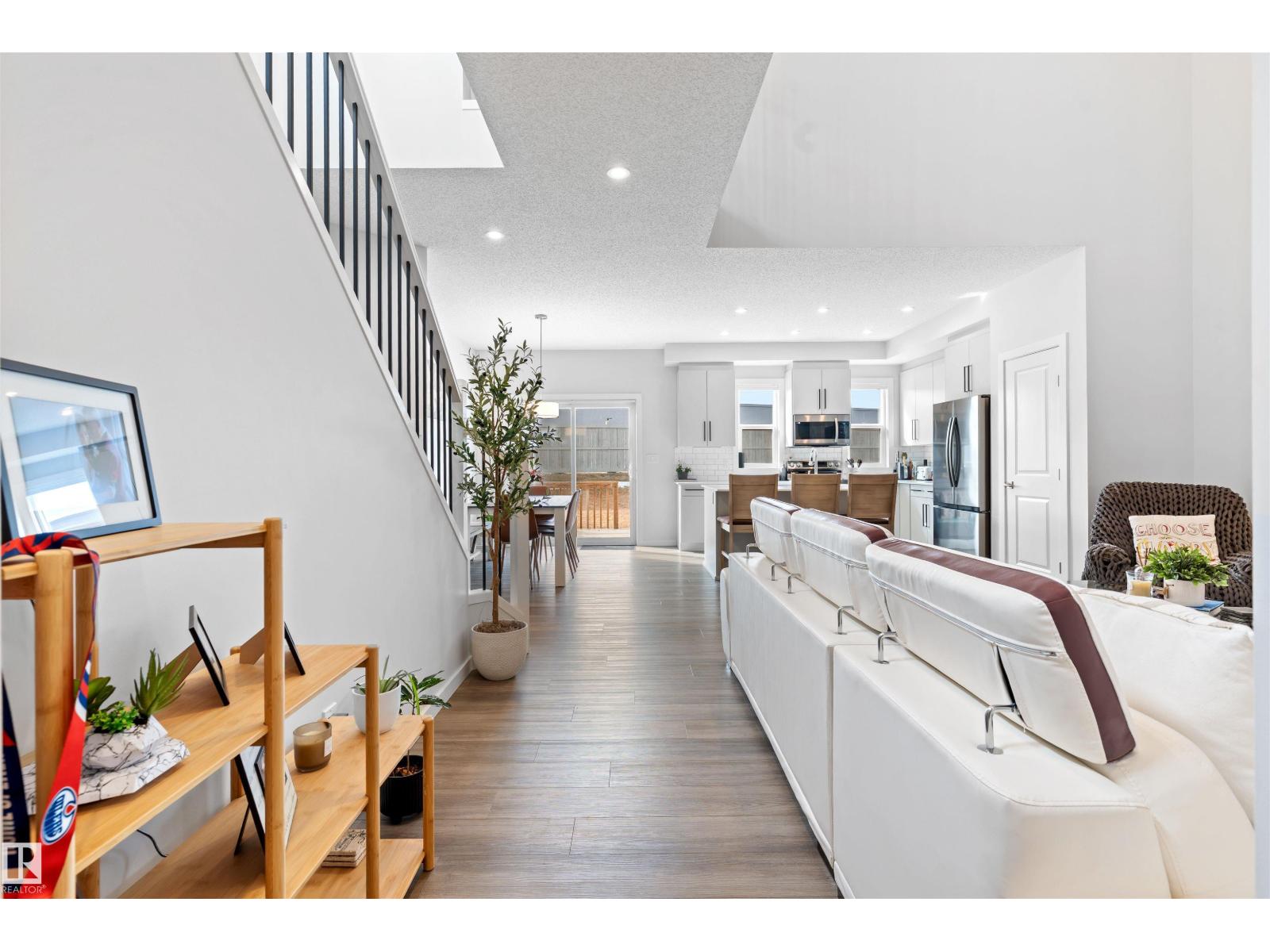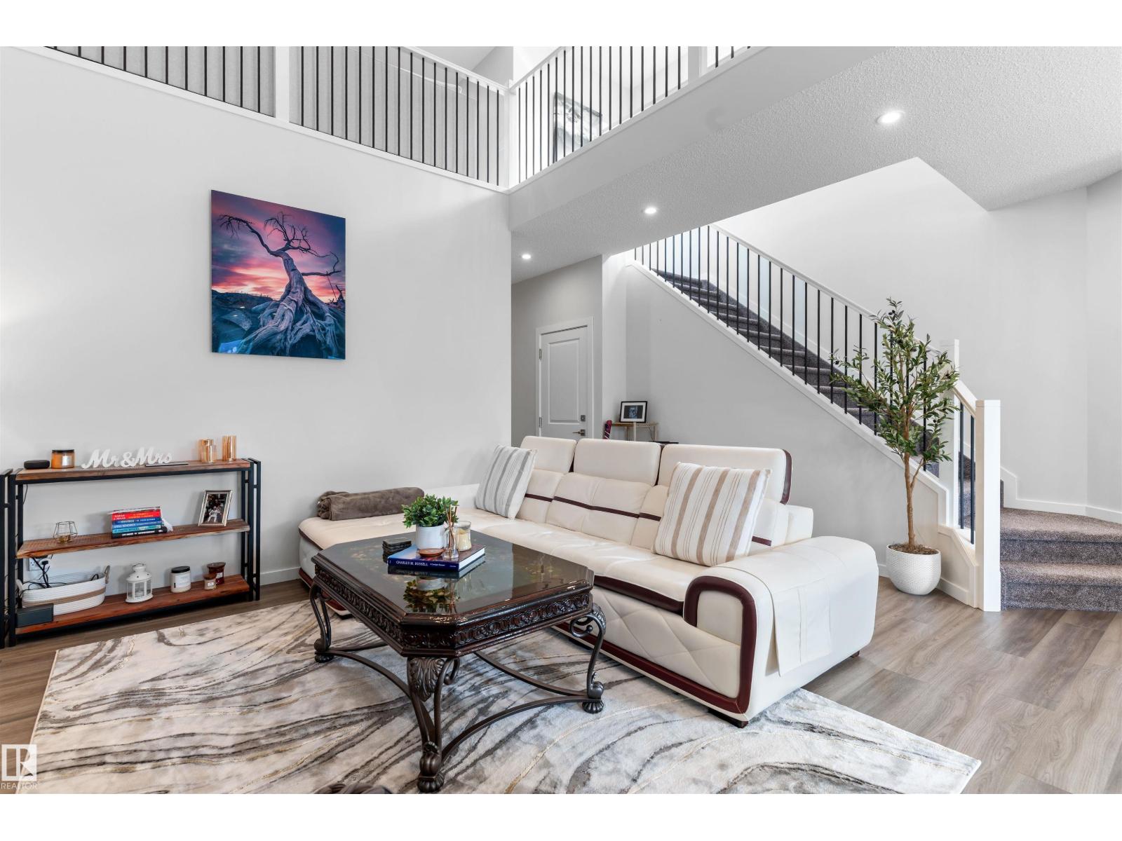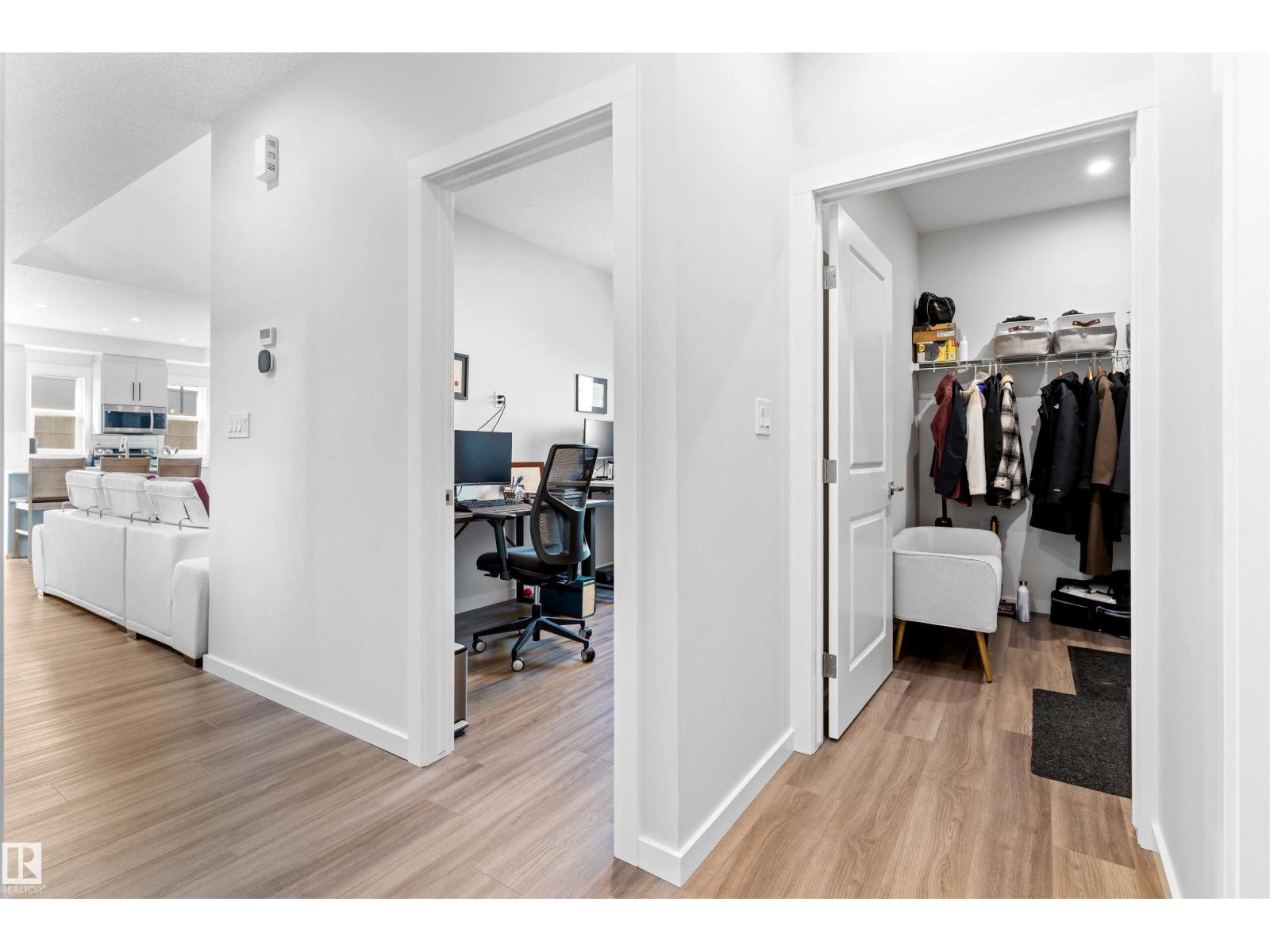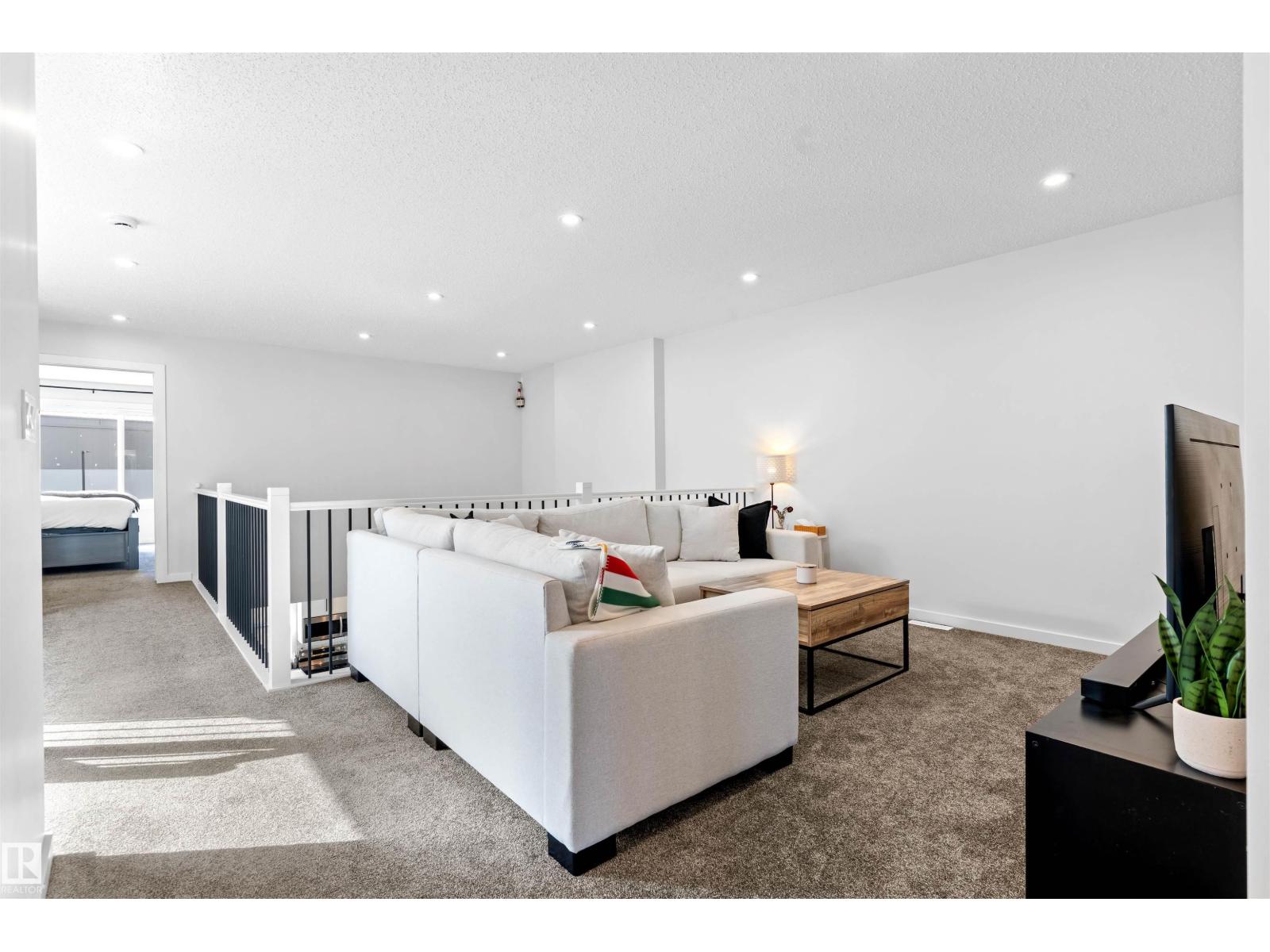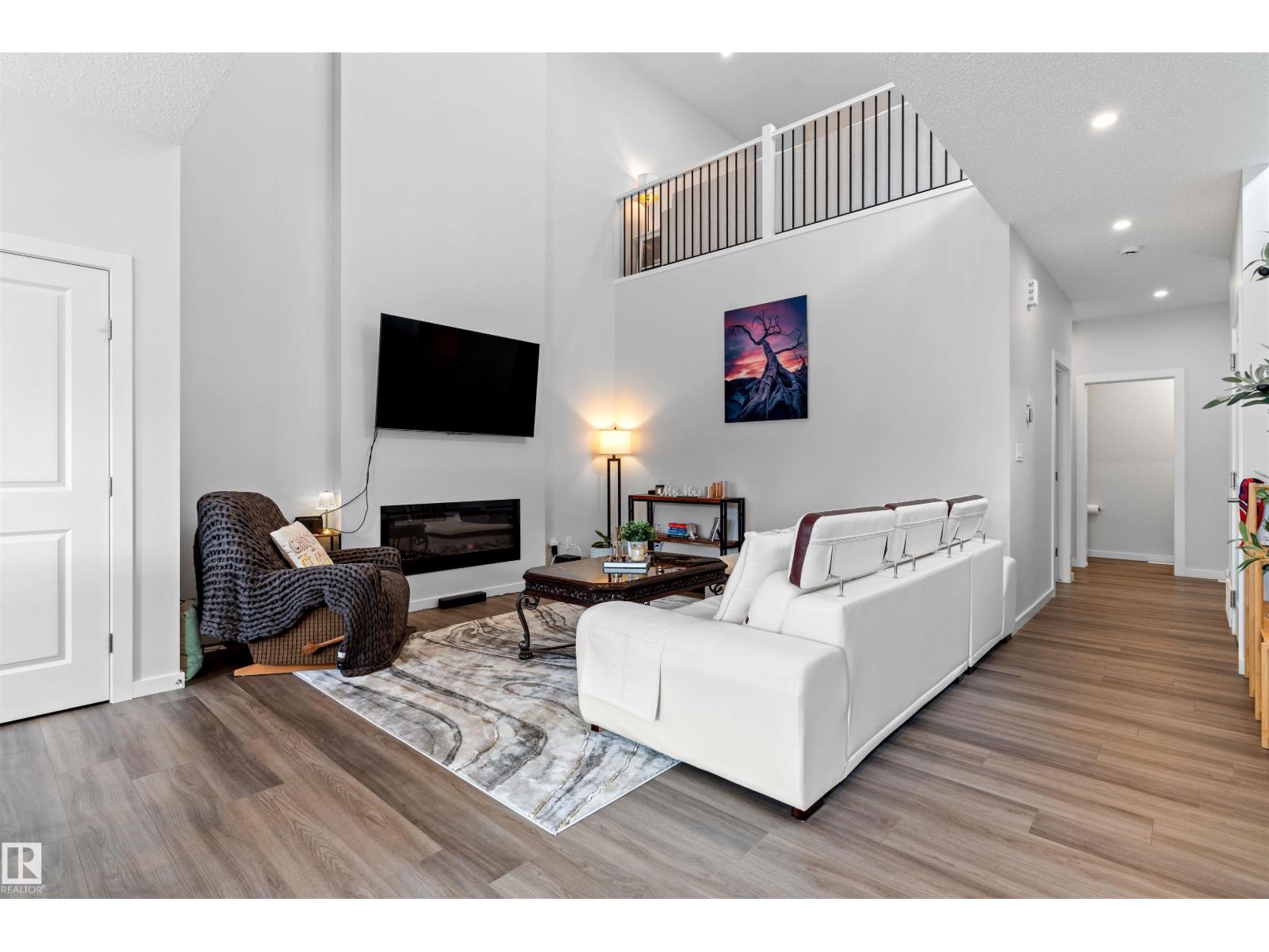 Step into this like-new SHOW HOME QUALITY two-storey residence, built by Bedrock Homes, and experience exceptional quality throughout. This bright, move-in-ready home offers 2,068 sqft with impeccable finishes, including luxury vinyl plank flooring and LED pot lights. The main floor features soaring 9’ ceilings, an open-to-below great room w/ a cozy fireplace, and a convenient main-floor den/office & bath. The gourmet kitchen shines with quartz countertops, an upgraded backsplash, 41” cabinetry, and Samsung stainless steel appliances. Upstairs you’ll find three generous bedrooms, a bonus room, a primary ensuite with dual sinks, upstairs laundry & a smart home package. Set on a RARE OVERSIZED PIE-SHAPED LOT (7,844 sqft) for maximum space & privacy. The SEPARATE SIDE ENTRANCE is ideal for a future legal basement suite w/ HRV unit. The spacious 18’ x 22’ attached double garage completes the package. Superb location! Nearby to K-9 & high schools, arena, parks, shopping, golf course, and easy access to HWY 16. (id:63190)