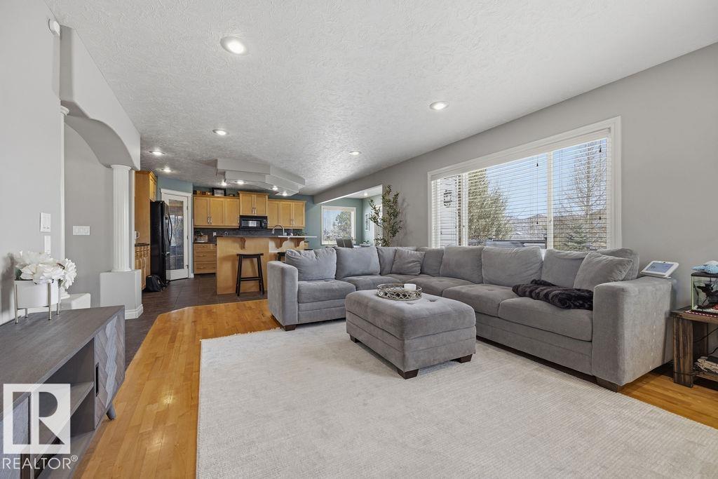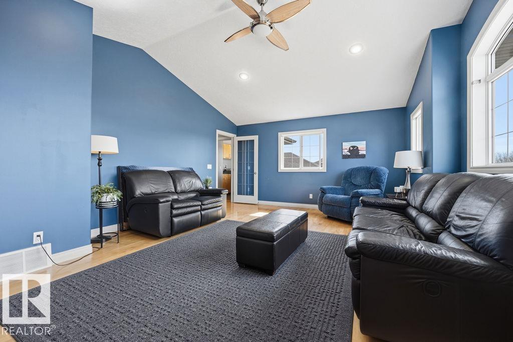 DESIRE QUIET LIVING minutes from Sherwood Park? How about a 2400 sqft home with TRIPLE GARAGE, FINISHED BASEMENT, PRIVATE YARD BACKING TREES and a POND? Welcome to 21 Creekside Drive in Ardrossan. This 2004 custom built home has everything for the growing family. Hardwood flooring, stamped ceilings, maple-wood finishings, the QUALITY is seen throughout. Open Main Floor has Large Kitchen with lots of cabinet space, corner panty, & island. Living Room with Gas Fireplace, built-in shelving, & along with the Dining area, has AMAZING VIEWS of nature year-round. The BACKYARD with that beautiful CEDAR DECK & electric awning is absolute wow. Upstairs has HUGE Primary Bedroom, 5 pce en-suite & walk-in closet, 2 more Bedrooms, Laundry Room, & Bonus Room with vaulted ceiling. Basement professionally developed in 2017: Dry Core Subfloor, 2 bedrooms adjoining closet, additional laundry room, 4 piece bathroom with heated floor. Other Home features: 75 Gal H.Water Tank, 2 Furnaces, pull-through garage & much more. (id:63190)