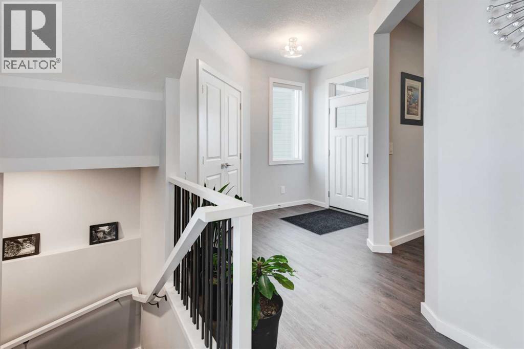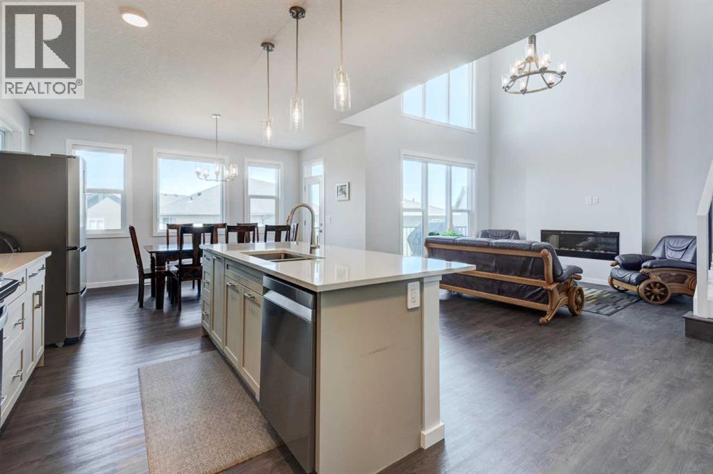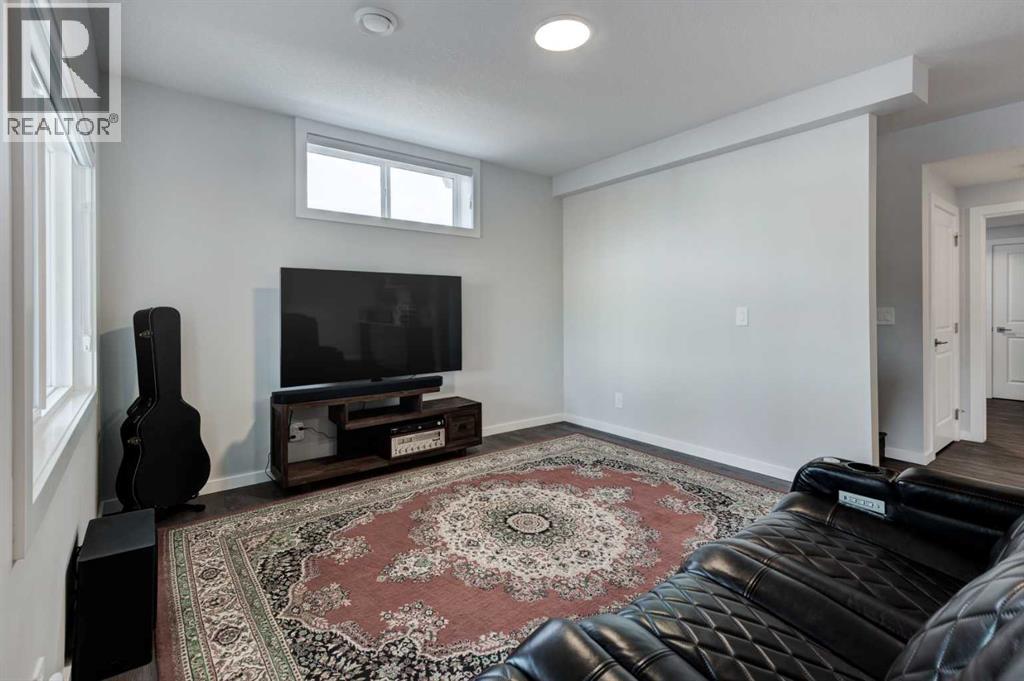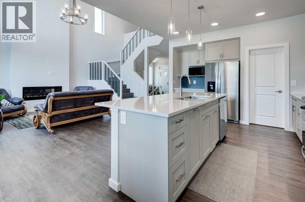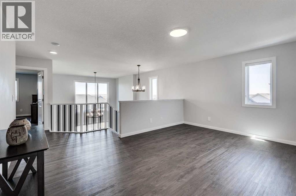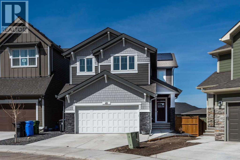 Welcome to 40 Verity Place, an exceptional, 2023 built residence offering 4 bedrooms and 3.5 bathrooms, perfectly situated on a professionally landscaped and fenced pie lot within a quiet cul-de-sac.Thoughtfully designed with a balance of elegance and functionality, the main floor showcases a private office and a stunning chef inspired kitchen featuring quartz countertops, premium finishes, and a convenient walk through pantry.At the heart of the home, the dramatic two storey great room and dining area make an unforgettable impression. Soaring ceilings, full-height windows, and a striking fireplace feature wall create a space that is both grand and inviting, with natural light pouring in throughout the day. This architectural focal point seamlessly blends everyday living with elevated entertaining.Upstairs, a central bonus room overlooks the great room below, enhancing the home’s open, airy feel while maintaining a strong visual connection between levels. On the second floor there are two additional bedrooms, along with a truly impressive primary retreat. Enjoy city and prairie views, a luxurious 5 piece ensuite complete with a soaker tub, and a spacious walk-in closet designed for both comfort and style. An upper level laundry room adds an extra layer of convenience.The fully developed walk-out basement has been designed with intention, offering a sophisticated extension of the home’s living space. Complete with a large family room, an additional bedroom, full bathroom, and a beautifully appointed bar, creating an ideal space for hosting, relaxing, and making the most of your downtime.Step outside to the expansive balcony just off the kitchen, perfect for morning coffee or evening unwinding. Additional upgrades include central air conditioning and solar panels, blending comfort with energy efficiency.Set within a thoughtfully planned southwest Calgary community, this home offers seamless access to Stoney Trail and a direct route to the mountains, making both daily commuting and weekend escapes effortless. Surrounded by pathways, green spaces, and future amenities, the location offers a rare combination of connectivity, tranquility, and room to grow. (id:63190)