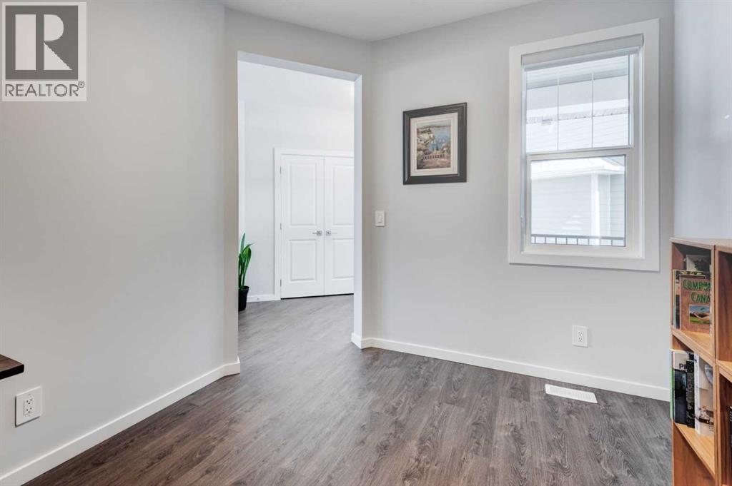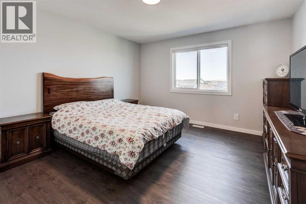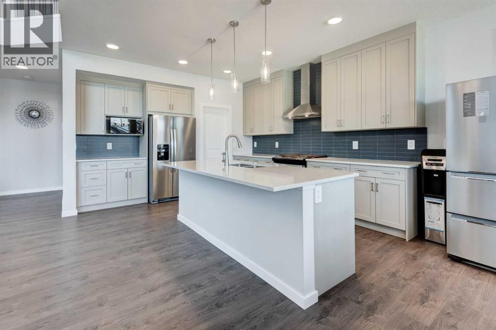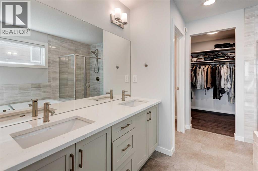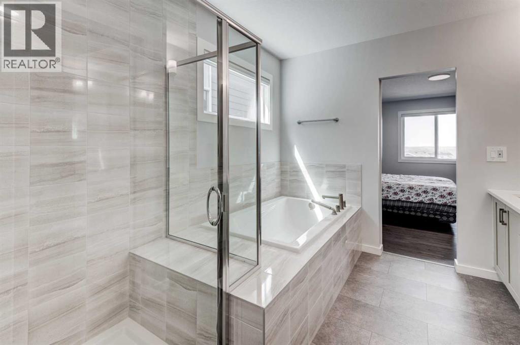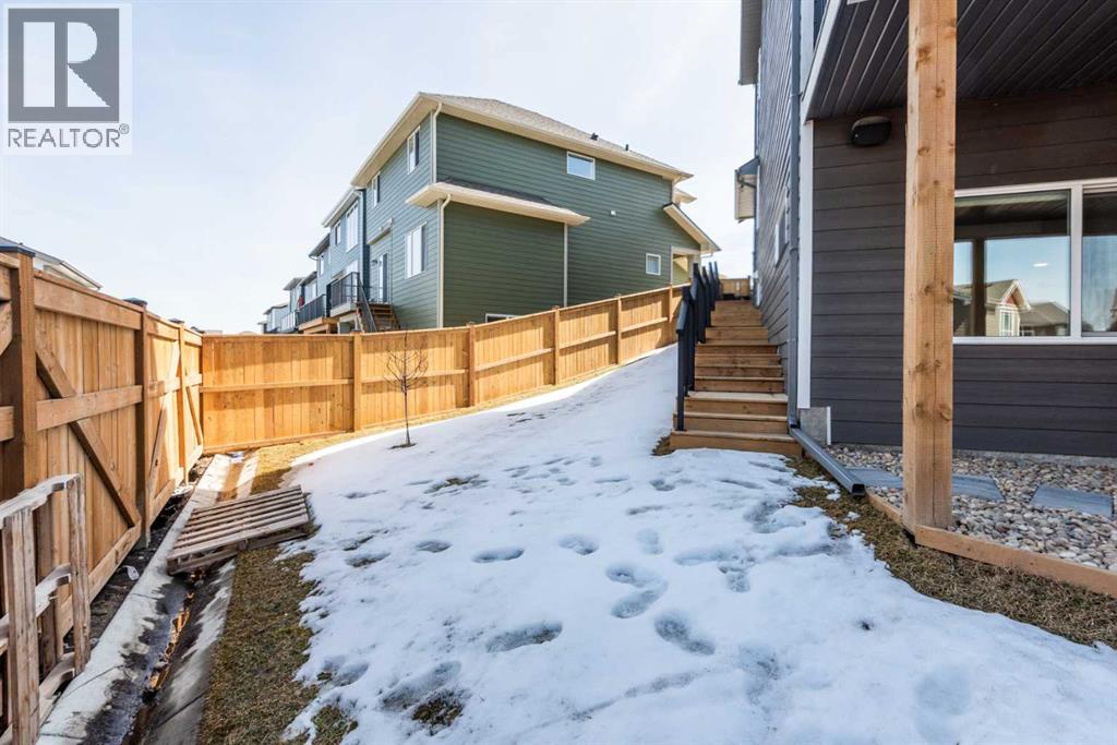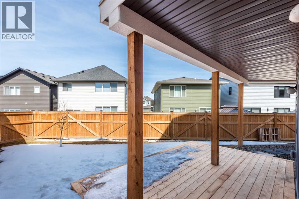 Welcome to 40 Verity Place, an exceptional, 2023 built residence offering 4 bedrooms and 3.5 bathrooms, perfectly situated on a professionally landscaped and fenced pie lot within a quiet cul-de-sac.Thoughtfully designed with a balance of elegance and functionality, the main floor showcases a private office and a stunning chef inspired kitchen featuring quartz countertops, premium finishes, and a convenient walk through pantry.At the heart of the home, the dramatic two storey great room and dining area make an unforgettable impression. Soaring ceilings, full-height windows, and a striking fireplace feature wall create a space that is both grand and inviting, with natural light pouring in throughout the day. This architectural focal point seamlessly blends everyday living with elevated entertaining.Upstairs, a central bonus room overlooks the great room below, enhancing the home’s open, airy feel while maintaining a strong visual connection between levels. On the second floor there are two additional bedrooms, along with a truly impressive primary retreat. Enjoy city and prairie views, a luxurious 5 piece ensuite complete with a soaker tub, and a spacious walk-in closet designed for both comfort and style. An upper level laundry room adds an extra layer of convenience.The fully developed walk-out basement has been designed with intention, offering a sophisticated extension of the home’s living space. Complete with a large family room, an additional bedroom, full bathroom, and a beautifully appointed bar, creating an ideal space for hosting, relaxing, and making the most of your downtime.Step outside to the expansive balcony just off the kitchen, perfect for morning coffee or evening unwinding. Additional upgrades include central air conditioning and solar panels, blending comfort with energy efficiency.Set within a thoughtfully planned southwest Calgary community, this home offers seamless access to Stoney Trail and a direct route to the mountains, making both daily commuting and weekend escapes effortless. Surrounded by pathways, green spaces, and future amenities, the location offers a rare combination of connectivity, tranquility, and room to grow. (id:63190)