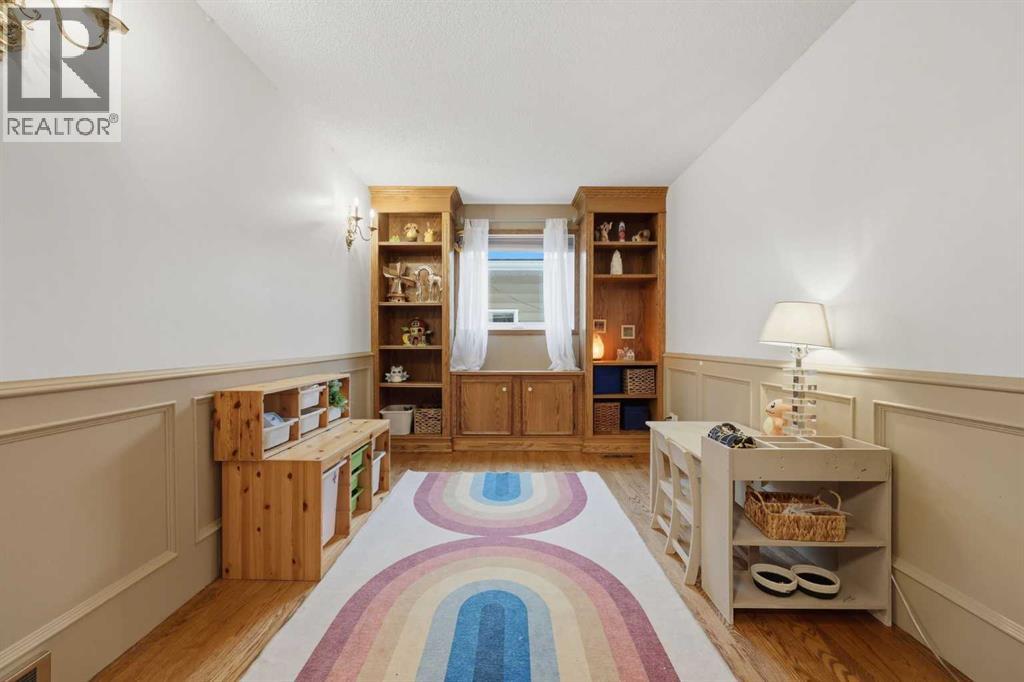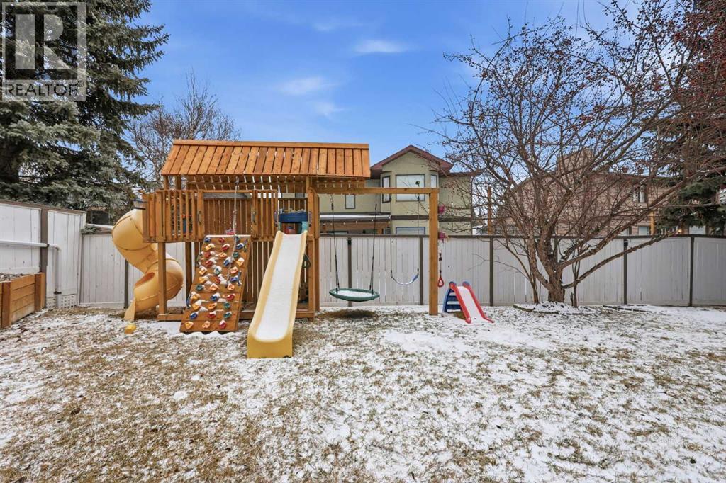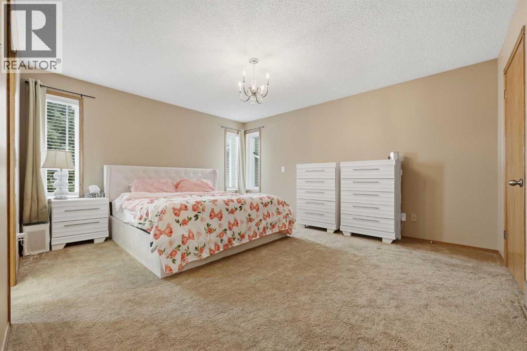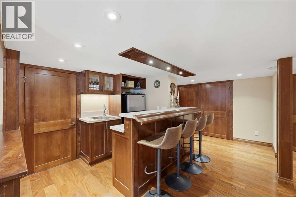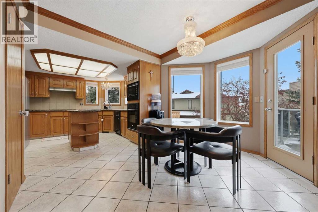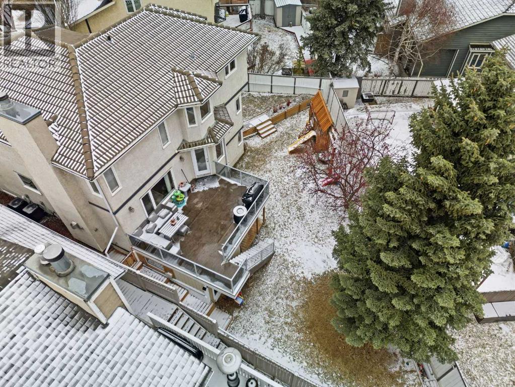 Hello gorgeous! This estate style home combines warmth, oak finishes and that Ralph Lauren throwback feel. The character remains intact with recent updates and fully developed walkout basement offering a more than comfortable 3700 sqft of living space, You’ll find this sprawling home on a quiet cul-de-sac in sought-after Woodbriar Estates. With over $130,000 in recent improvements, including a fully permitted basement renovation and brand-new windows, this property delivers a wonderful combination of space, craftsmanship and charm. The main level is designed for flexibility, featuring a private home office, formal dining area, and a spacious kitchen that opens into multiple living areas—perfect for families who want both connection and separation in their day-to-day living. Natural light pours in through the upgraded windows, enhancing the home’s brightness and functional layout. Upstairs offers four bedrooms, a generous primary suite complete with two walk-in closets and a 5-piece ensuite. The walkout basement has been professionally renovated with engineered hardwood and insulated Dricore subfloor. An expansive rec room, wet bar, half bath and a custom hobby room. There is an incredible amount of shortage space in the basement. Whether for entertaining, hosting the in-laws or working from home, you’ll find value and accessibility in the bottom level. Outside, the pie-shaped lot offers a sunny southeast exposure, mature landscaping and privacy. Also included is the play structure. The elevated deck—with glass railing and gas hookup—extends your living space outdoors, while the recently completed retaining wall adds both structure and visual appeal.Additional updates: removal of poly-b plumbing, new garage door, exterior trim refresh and the comfort of dual A/C units. Fish creek and walking paths are minutes away. Come check out this masterpiece. (id:63190)