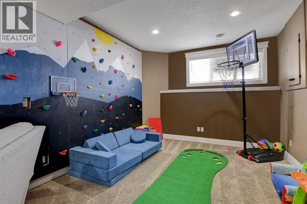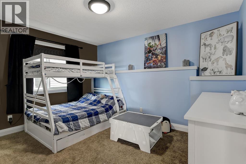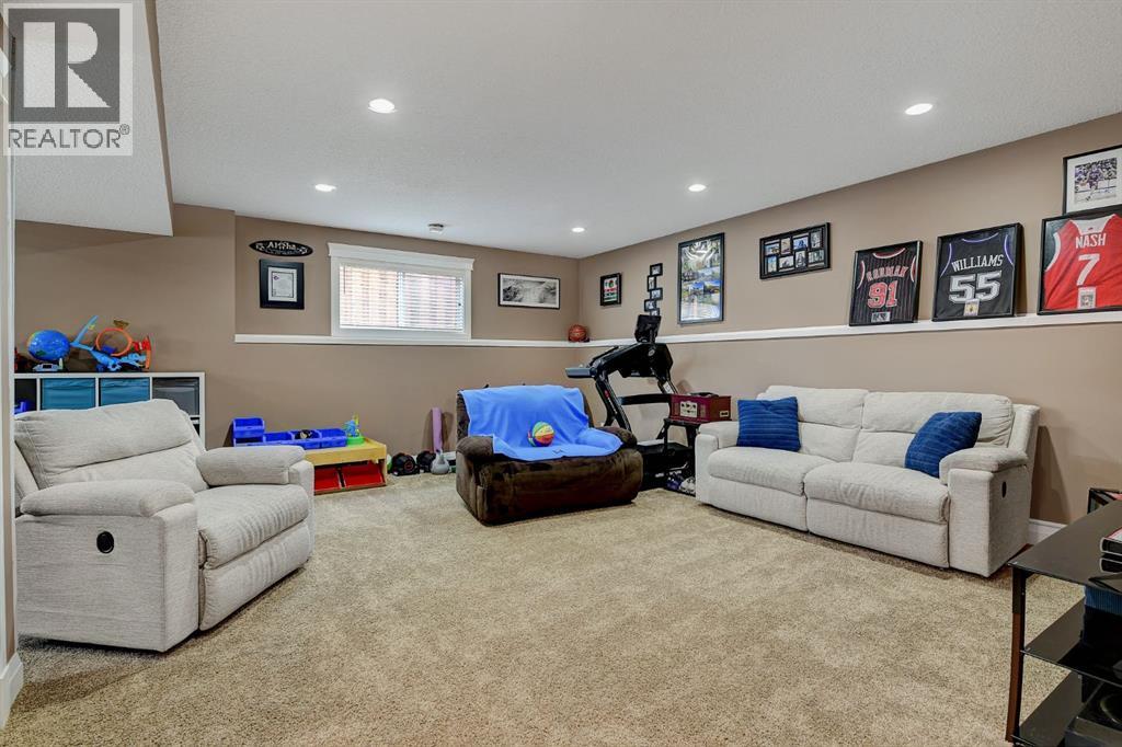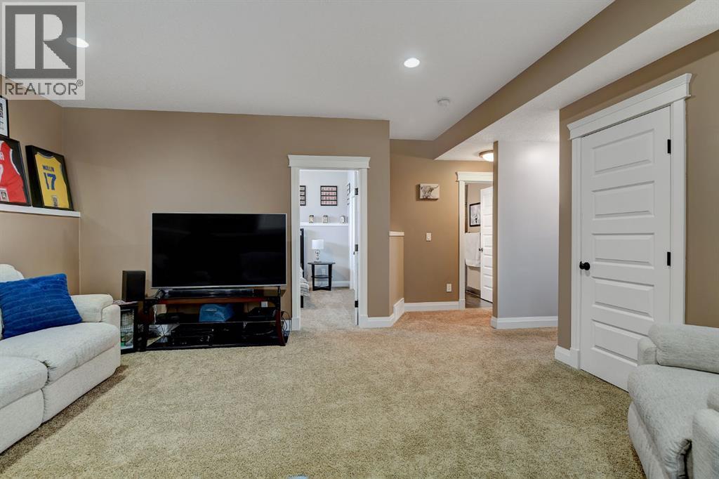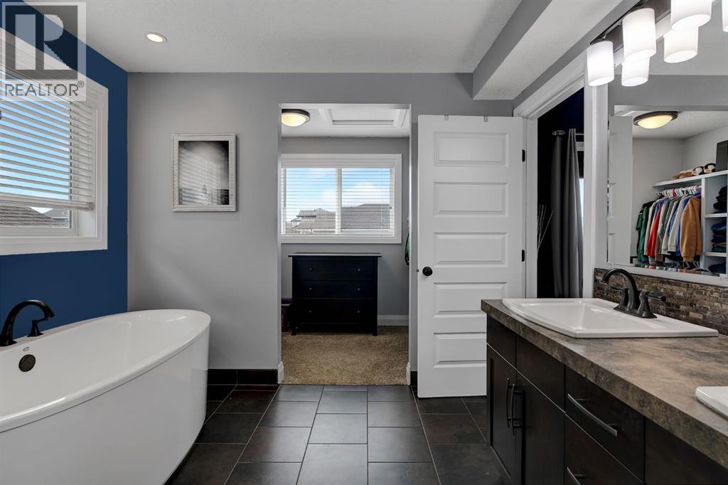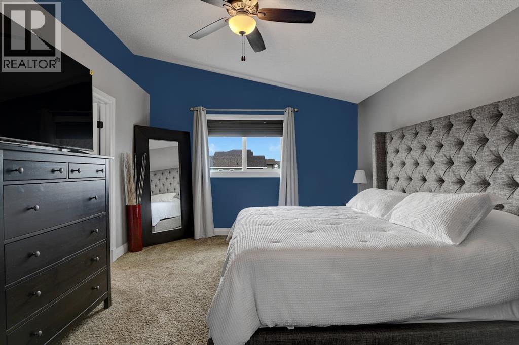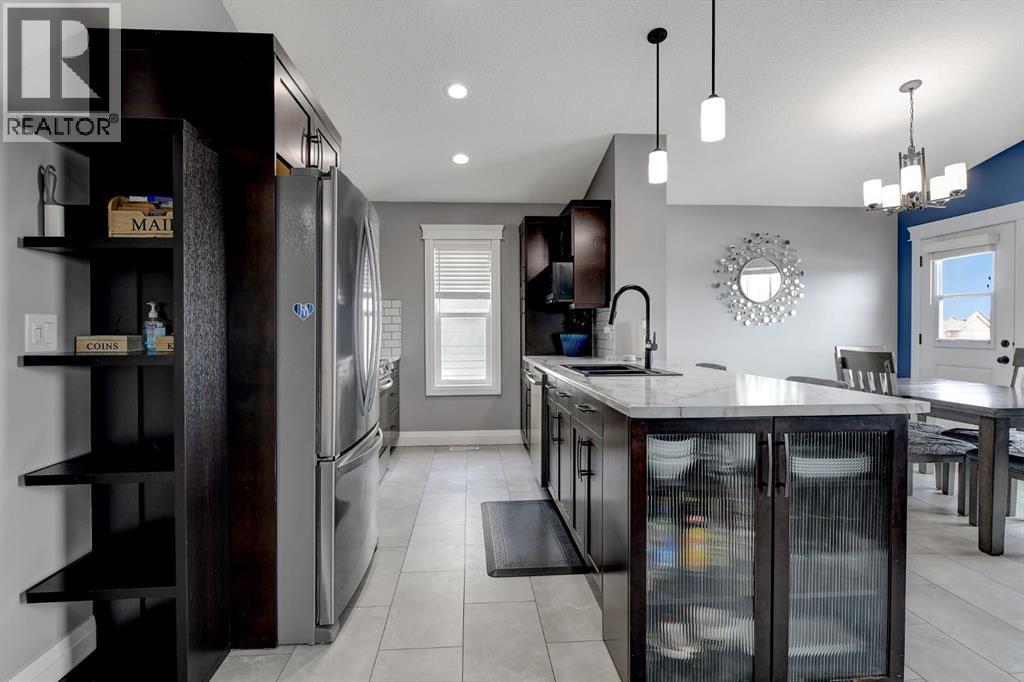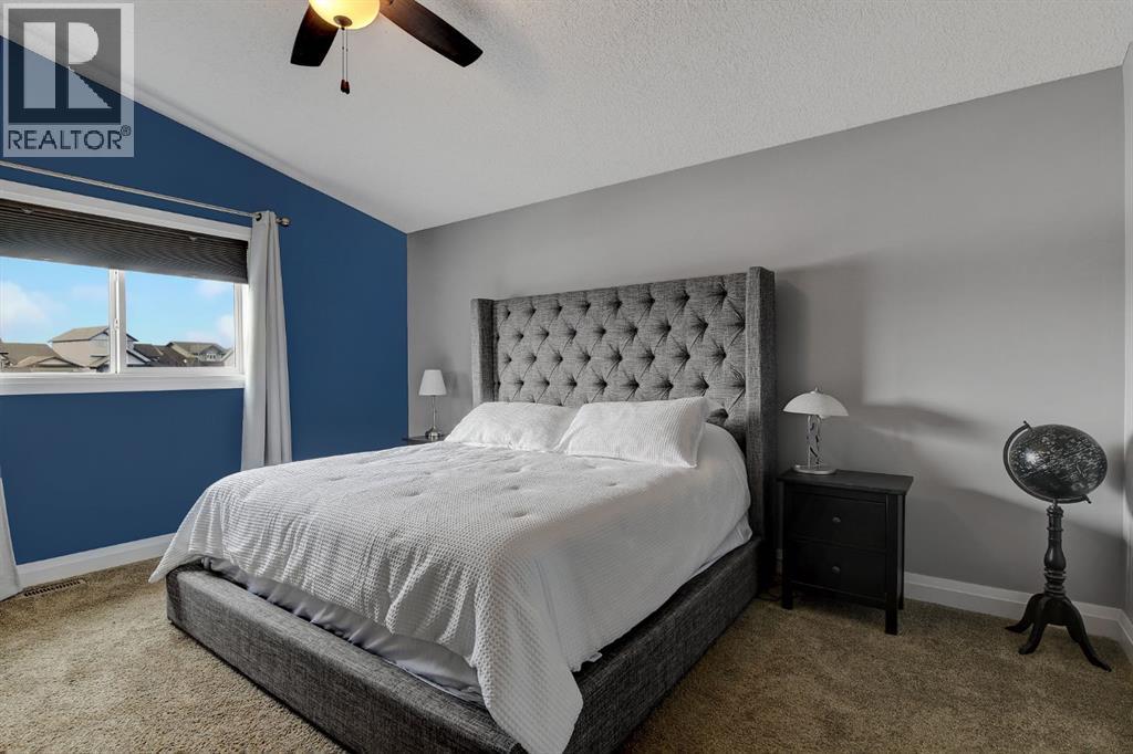 Absolutely immaculate, fully developed modified bi-level backing onto green space and just steps from a park in the family friendly community of Westpointe. This move in ready home has it all. A spacious tiled front entry welcomes you into the open concept main floor, featuring durable vinyl tile flooring throughout. The inviting galley style kitchen showcases rich espresso cabinetry, stainless steel appliances, and excellent functionality. The bright dining area opens onto a composite deck and a fully fenced, landscaped backyard with no rear neighbours perfect for relaxing or entertaining in complete privacy. The living room is warm and inviting, highlighted by a cozy gas fireplace, large windows that flood the space with natural light, and the added comfort of central air conditioning for the summer months. Two generously sized bedrooms and a full bathroom with a stunning tiled surround complete the main level. Above the garage, the oversized primary suite offers a true private retreat, featuring a luxurious ensuite with heated floors, a soaker tub, separate tiled shower, dual sinks, and direct access to a spacious walk-in closet. The fully developed basement boasts a massive rec room with a fun climbing wall, a fourth bedroom, and a third full bathroom providing a versatile layout ideal for families of all sizes. This home shows exceptionally well and is sure to impress. (id:63190)
