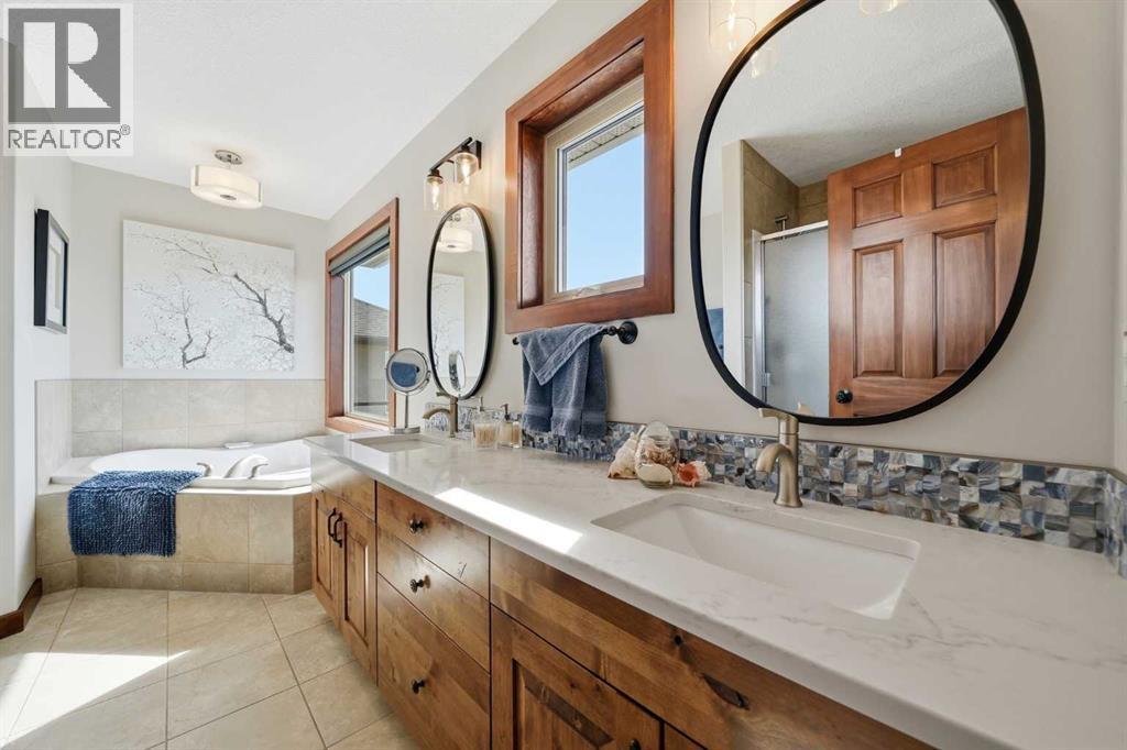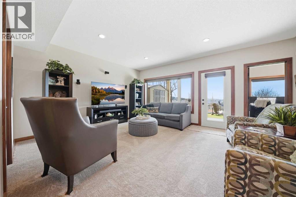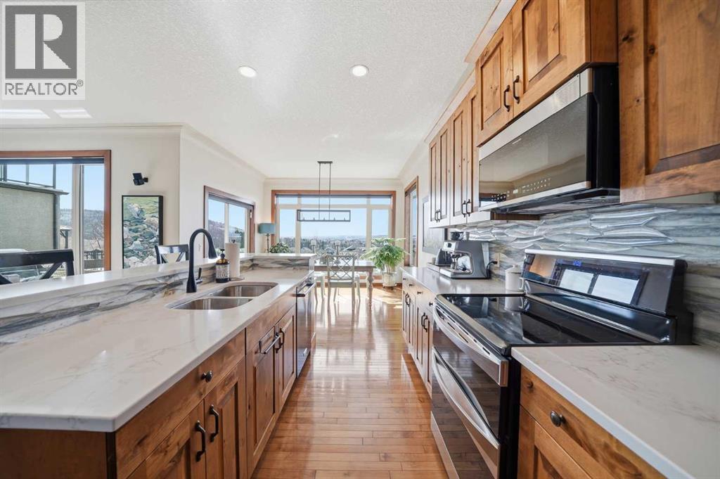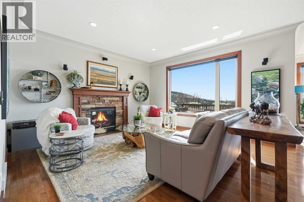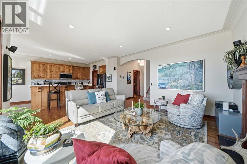 INCREDIBLE MOUNTAIN VIEWS! The coveted ridge location of 185 Sunset Circle will truly take your breath away, offering a daily panorama of the Rockies across all three levels of this exceptional 4 bedroom/3.5 bathroom WALKOUT home. Backing directly onto a walking path leading to Cochrane’s expansive trail system, this fully finished and AIR CONDITIONED two-storey residence sits on a QUIET, LOW TRAFFIC STREET just around the corner from a playground and with all levels of schools nearby. Immaculately clean and move-in ready - just bring your suitcases! The pride of ownership is evident in all of the upgrades and renovations, including FULLY PAID SOLAR PANELS that significantly reduce utility bills, TWO NEW HOT WATER TANKS installed in 2022, and PREMIUM SMART BLINDS with dual blackout and solar shades. Every detail has been meticulously updated, from the FRESH PAINT and NEW PREMIUM CARPETING to the replacement of every light fixture. The build quality is evident in the solid wood doors, refinished trim and banisters, and wood shelving in all the closets and pantry. With an open plan concept, the main floor offers 9-foot ceilings and beautiful HARDWOOD with inlay detailing, leading to a large KITCHEN RECENTLY RENOVATED with elegant QUARTZ COUNTERTOPS, a new tile backsplash, premium appliances including a double oven, a new KitchenAid dishwasher, and custom drawer pull-outs. Relax on the deck overlooking the backyard, BBQ and enjoy the mountain views and frequent wildlife sightings. There is also an awning for shelter on hot days! Completing the main floor is a laundry room/mud room with a utility sink and powder room - also renovated to match the kitchen. Upstairs, the primary retreat remains a standout, strategically positioned to capture the mountain view, complete with a spa-like ensuite and walk-in closet. Completing the upper level are two generously sized additional bedrooms. The bright walkout level features IN FLOOR HEATING, a fourth bedroom, family room, a stor age/hobby room, and a radon mitigation system for total peace of mind. Outside, the professionally landscaped backyard with NEWLY INSTALLED TURF, connects you directly to recreation along the ravine pathways. Enjoy your private backyard space by the fire pit or barbecuing with friends on the patio. The cherry on top of this remarkable property is the FULLY INSULATED, HEATED, OVERSIZED GARAGE! This is truly a once in a lifetime home offering a laid-back Cochrane lifestyle with MILLION DOLLAR VIEWS for only $889,900. Call your Realtor for a private viewing! (id:63190)