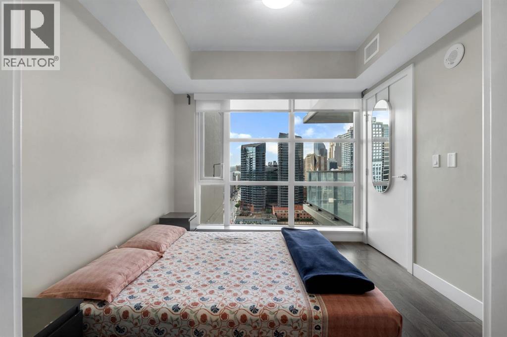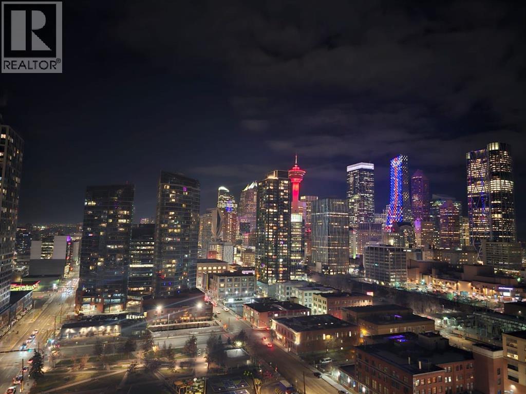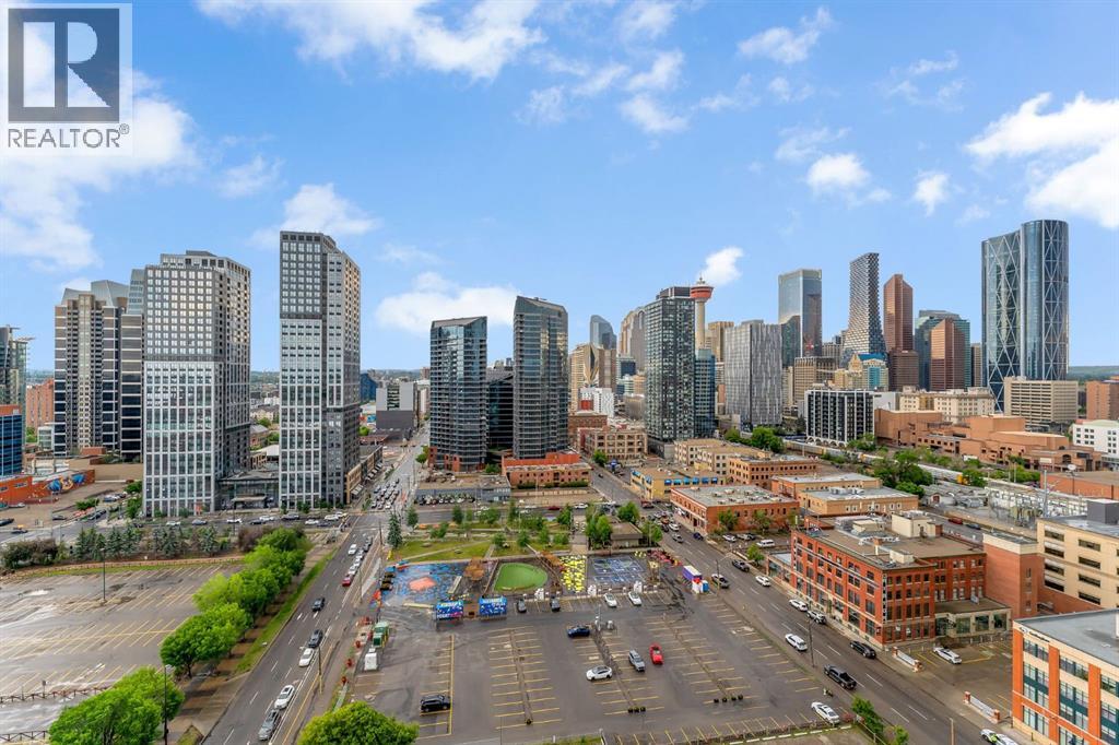 Welcome to the 18th floor of South Guardian Tower—this bright and spacious one-bedroom, one-bathroom condo in the South Tower offers stunning views of downtown Calgary and the mountains. Expansive windows fill the space with natural light while showcasing breathtaking scenery. The open-concept kitchen is designed for both functionality and style, featuring a central island, quartz countertops, and stainless steel appliances—perfect for cooking and entertaining. The bedroom offers floor-to-ceiling windows, a walk-through closet, and access to a sleek four-piece bathroom. Enjoy the views from your living room or step out onto your oversized private balcony to take it all in. This unit also includes a titled underground parking stall, a storage unit, and access to premium building amenities, including a modern fitness center (6th floor), yoga studio, social lounge with a garden terrace, and a meeting space. Ideally located across from the Calgary Stampede grounds and Cowboys Casino, you’re just steps from events, entertainment, dining, cafes, and boutique shopping, with quick access to Macleod Trail and Deerfoot Trail. Don’t miss this opportunity, book your private viewing today and be sure to check out the virtual tour! (id:63190)