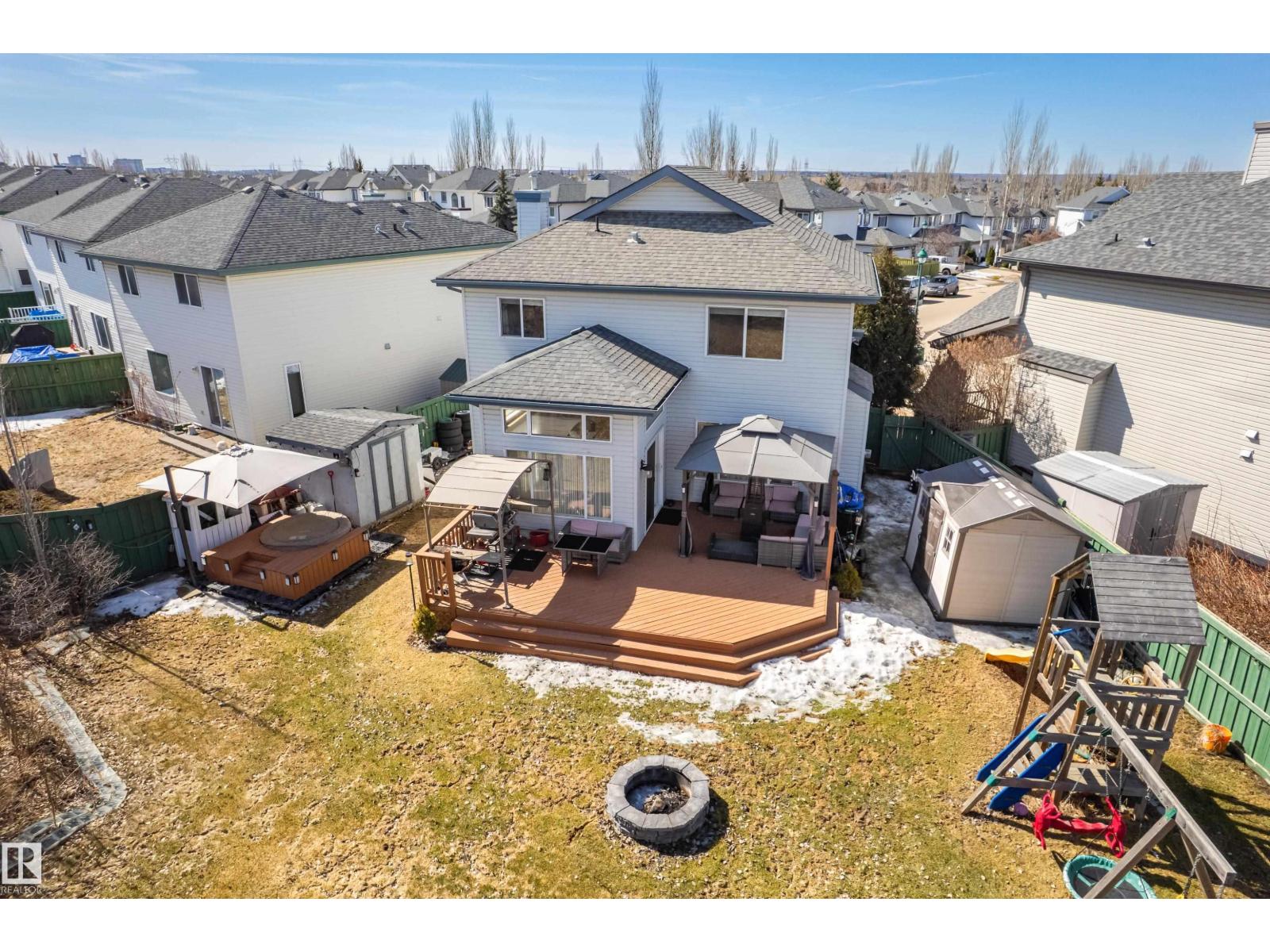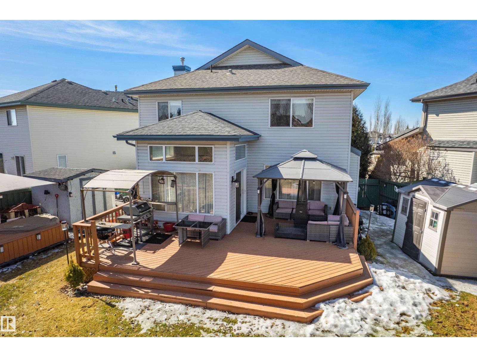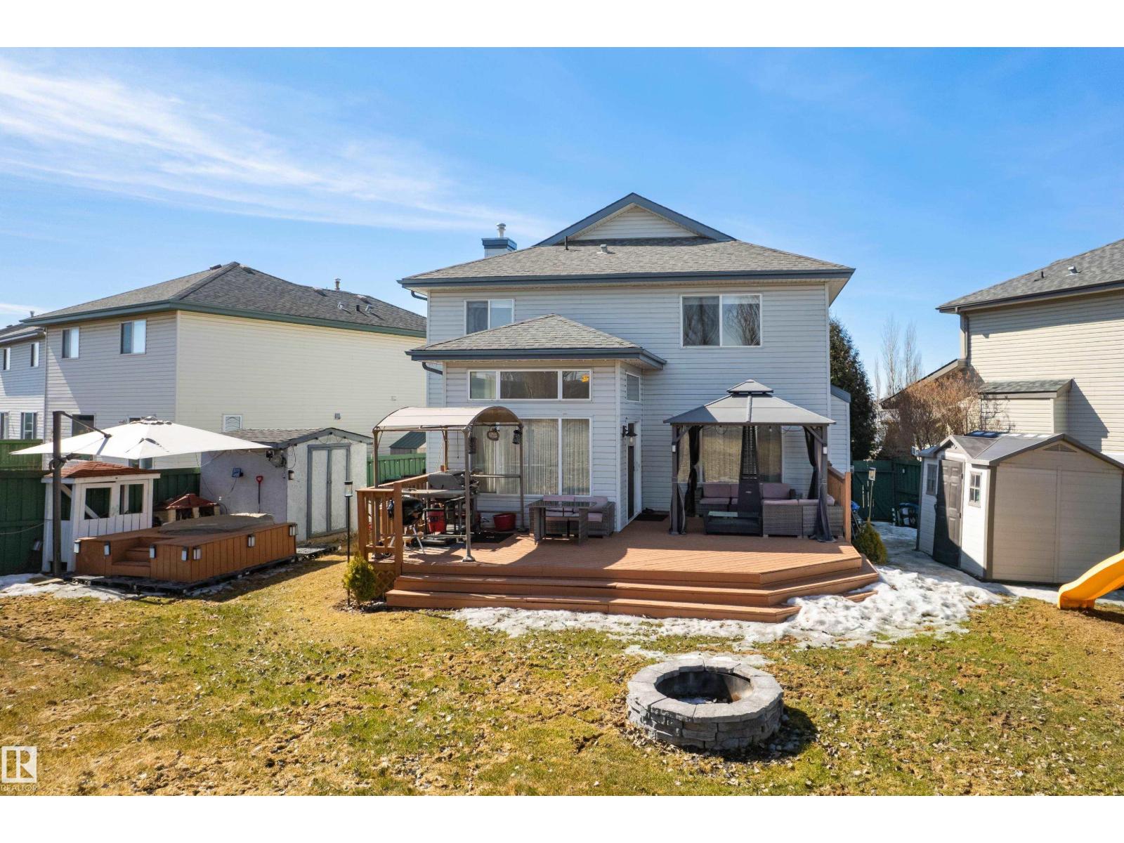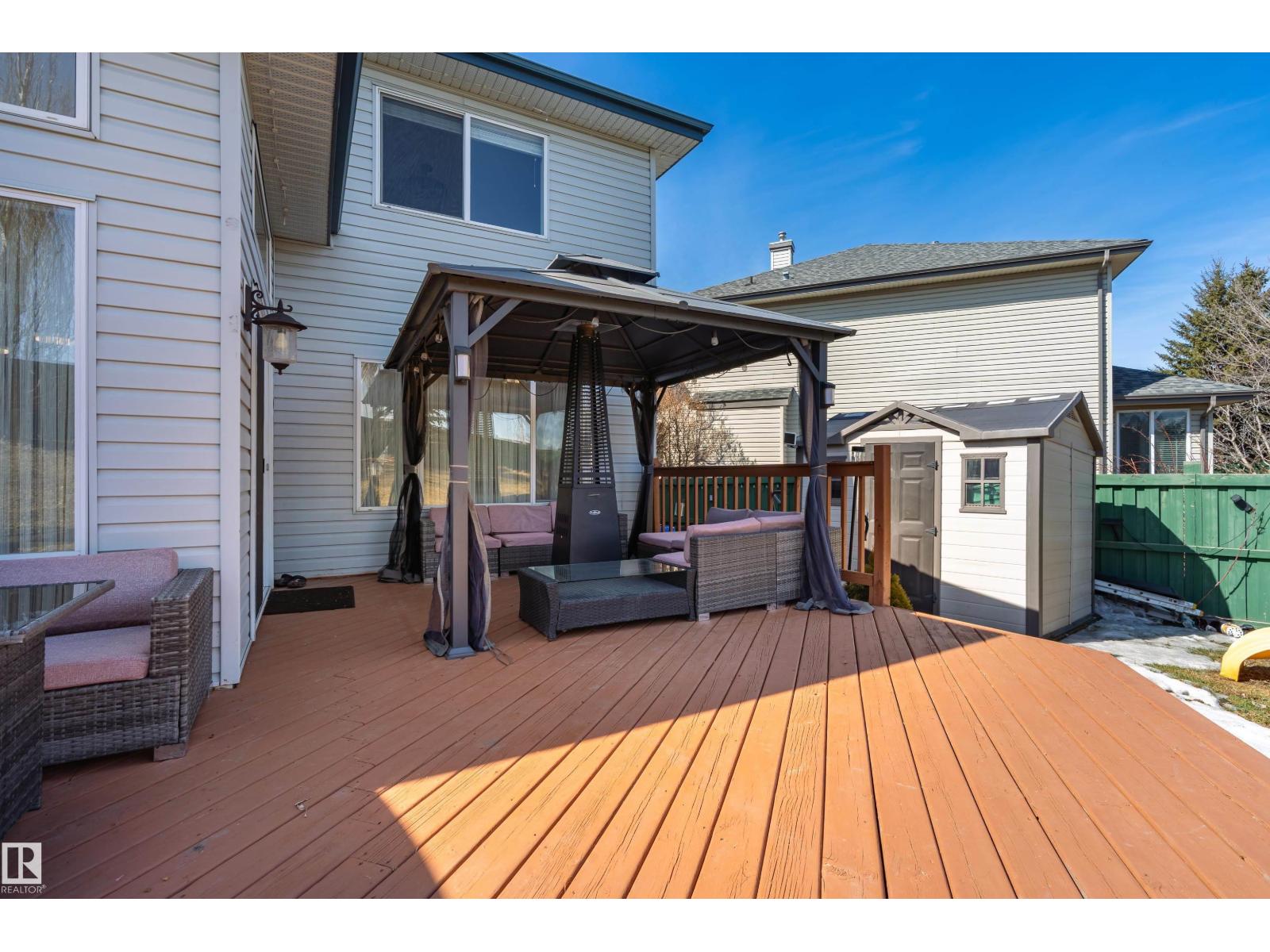 Welcome to this stunning 2-storey home offering approximately 1,800 SQF. of well-maintained living space in the beautiful community of Haddow. Backing onto a green space and walking distance to the Terwilliger Recreation Centre, this property perfectly blends comfort & style. Sunlight pours through large windows & 10' ceiling in the dining area, making it a bright home. The main floor features a spacious kitchen that flows seamlessly into a bright nook area and living room. Upstairs, the gorgeous bonus room, the master bedroom offers a private en-suite, accompanied by two additional bedrooms and a second full bathroom, with the developed basement to offer more living space, perfect for a growing family. Step outside to your large landscaped backyard, complete with a fire pit, an expansive deck, and a charming gazebo, a double-oversized attached garage, insulated, heated, and finished with epoxy flooring, close to transportation, a shopping center & easy access to White Mud Drive and Anthony Hendy. (id:63190)