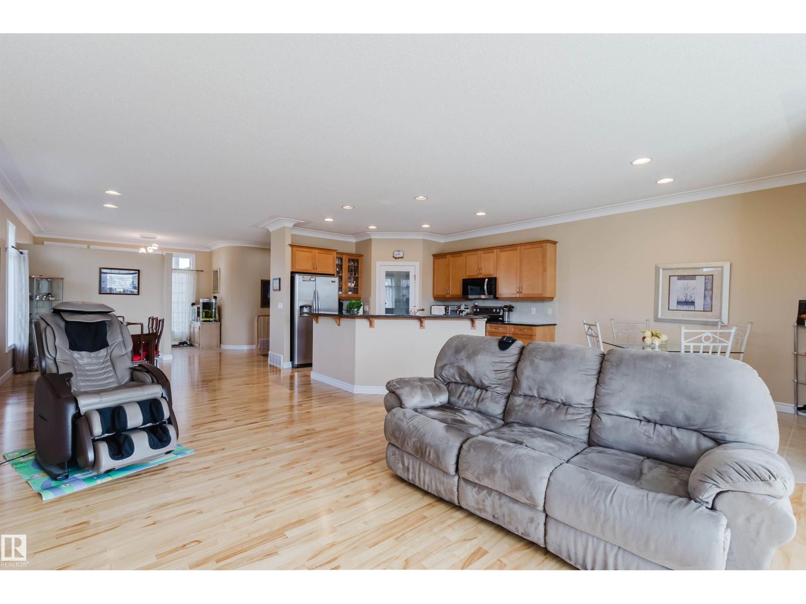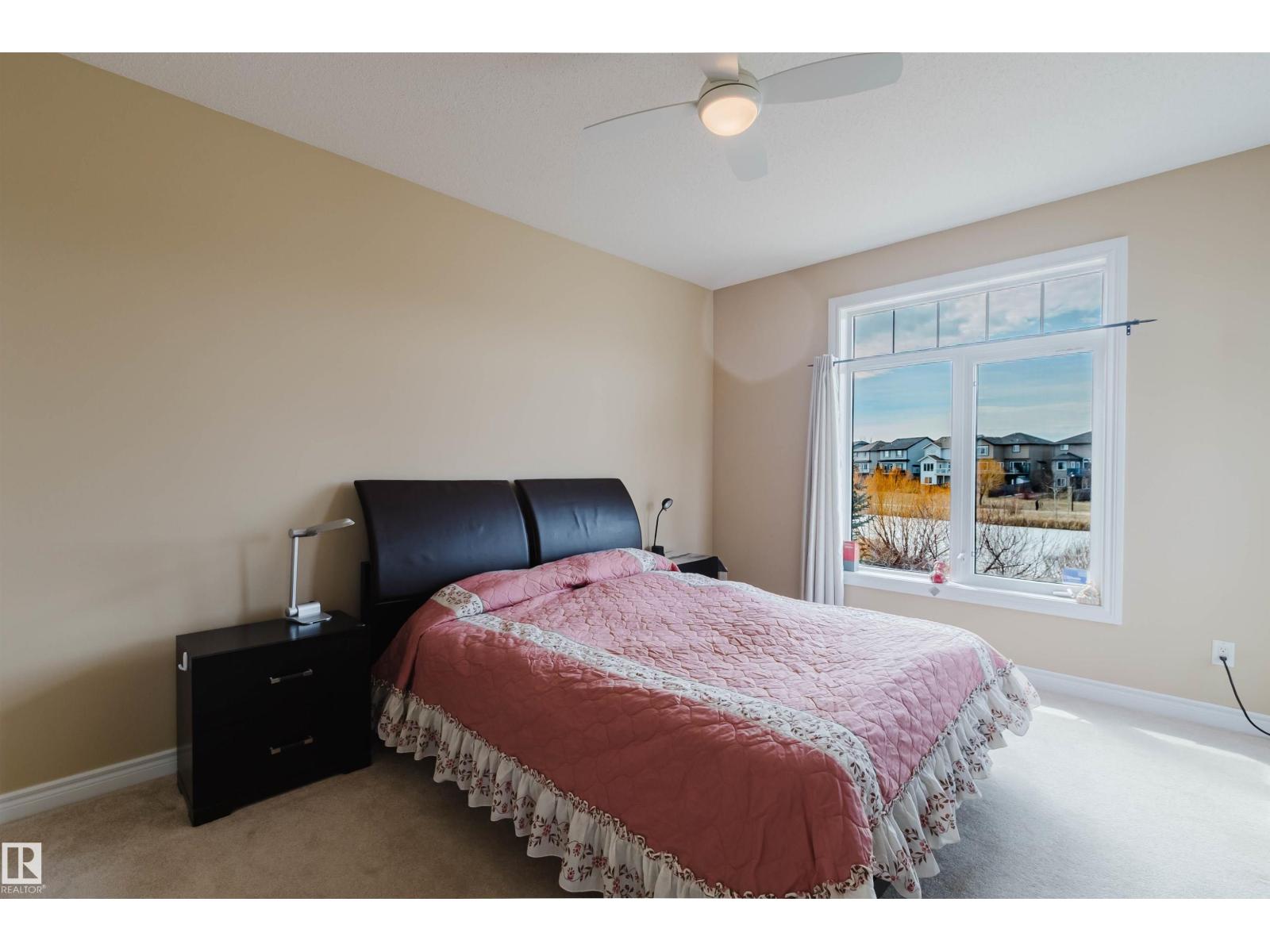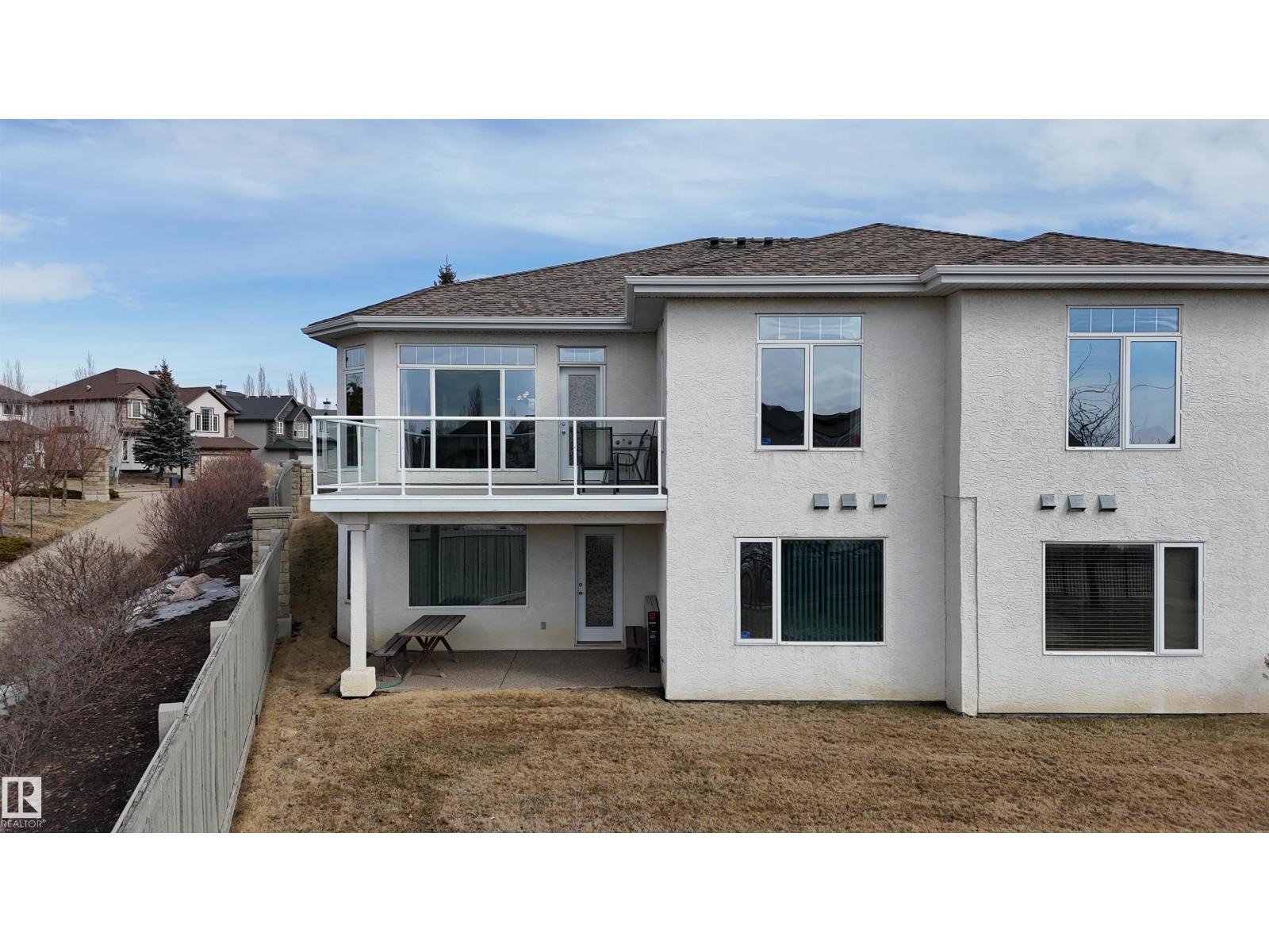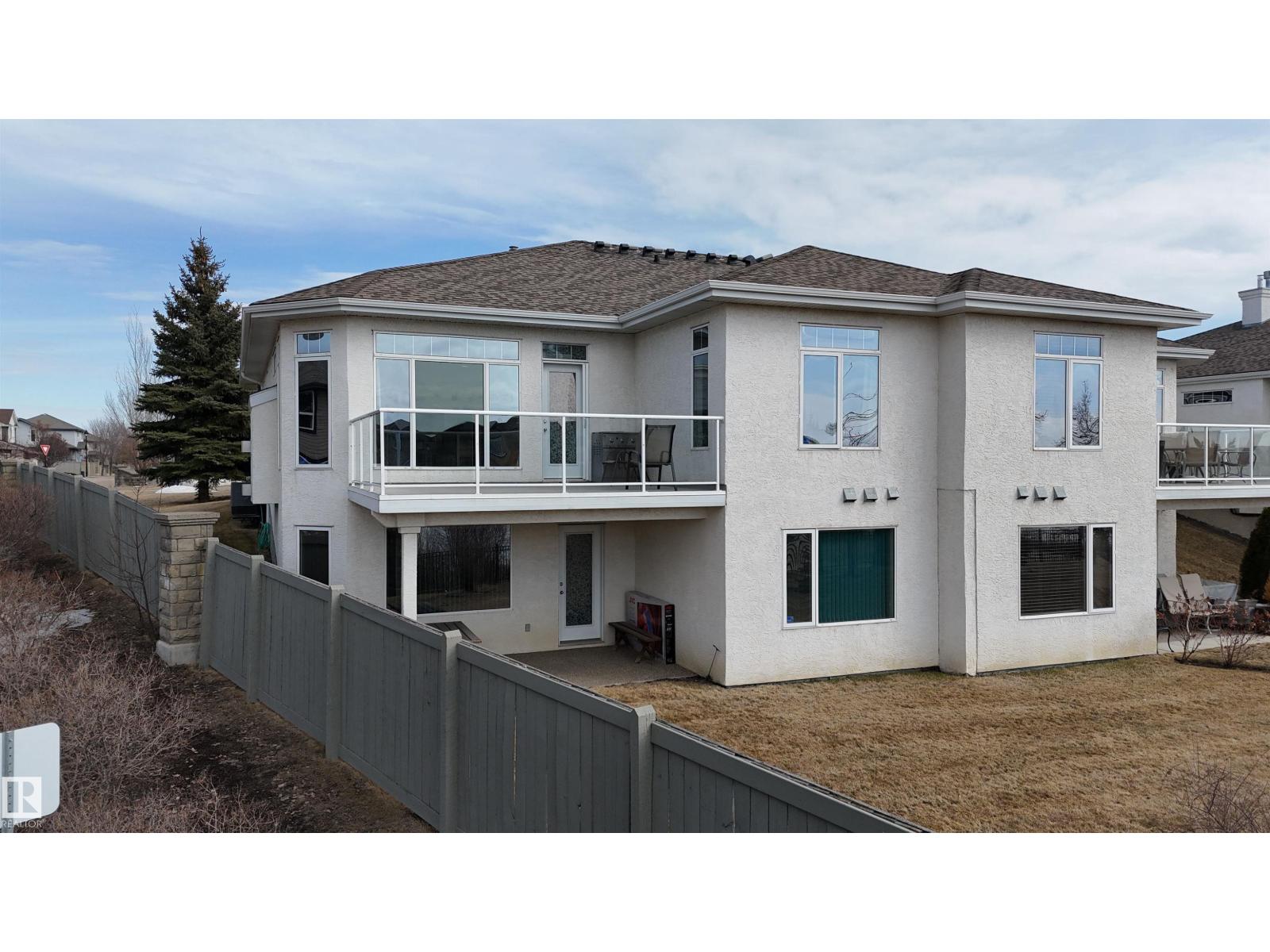 Rare opportunity in the prestigious Brass III Sandin Cove! This former show home is a stunning single-family walkout bungalow situated on a massive 7,168 sq. ft. lot—one of the largest in the area—positioned perfectly at the dragon’s head of the row. Backing directly onto a tranquil pond and scenic trails, this south-facing gem features over 3,100 sq. ft. of finished living space. Enjoy soaring ceilings, expansive Low-E windows, and elegant crown moulding throughout. The main floor offers a primary suite with a 5-piece ensuite, a second bedroom, and laundry. The builder-finished walkout basement includes a massive rec room, two large bedrooms, and a full bath. Practical perks include a heated garage with floor drains and a $140 HOA that handles all snow removal, irrigation, and landscaping. Experience low-maintenance luxury in South Terwillegar. This rare, move-in-ready property combines the privacy of a detached home with the ease of a villa. (id:63190)