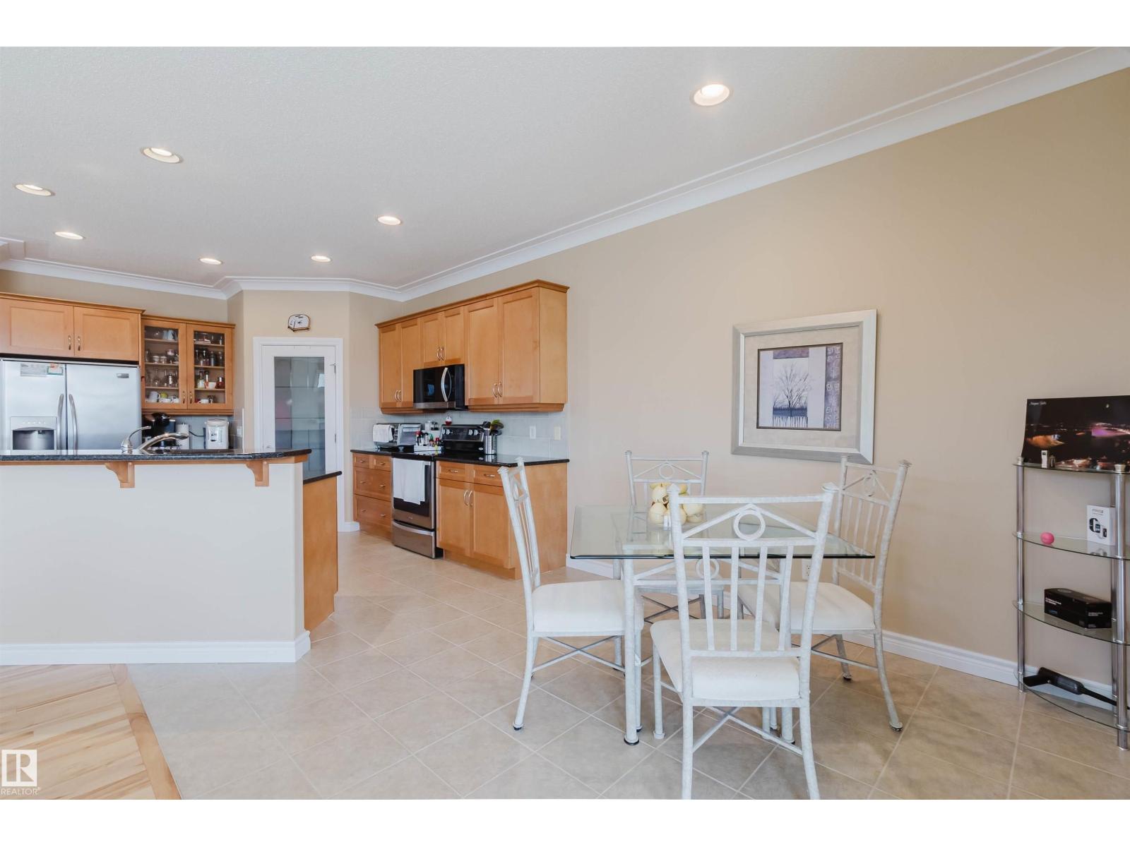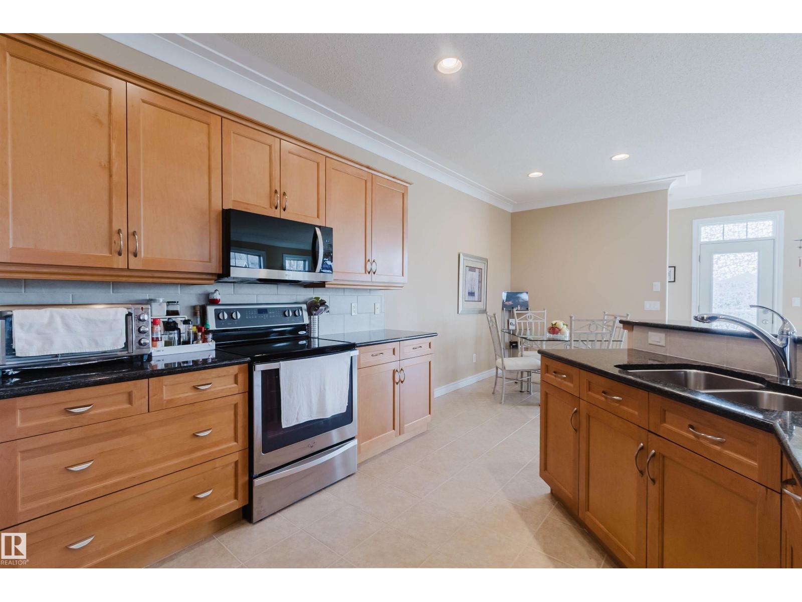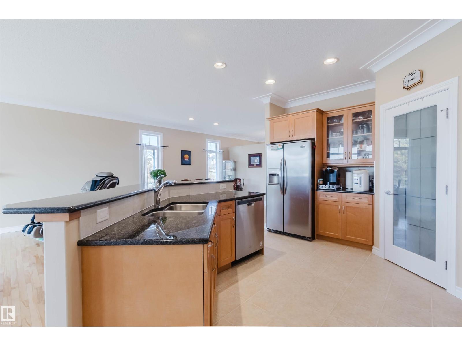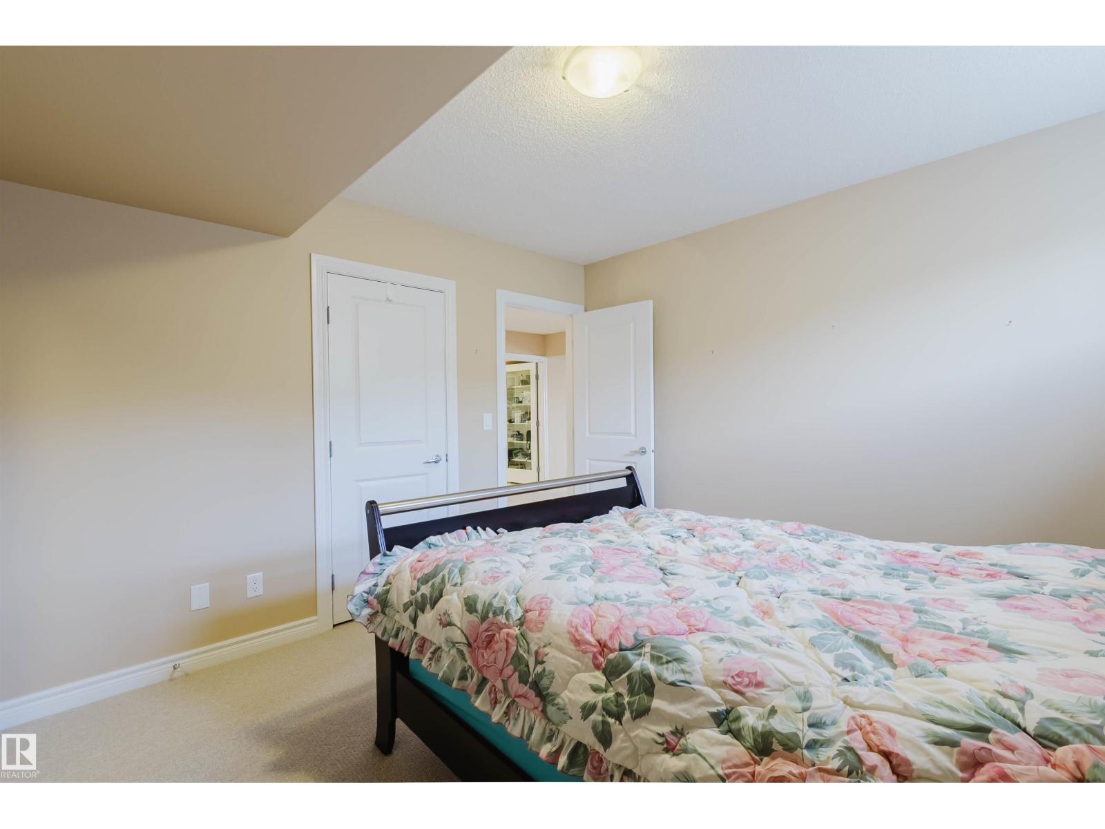 Rare opportunity in the prestigious Brass III Sandin Cove! This former show home is a stunning single-family walkout bungalow situated on a massive 7,168 sq. ft. lot—one of the largest in the area—positioned perfectly at the dragon’s head of the row. Backing directly onto a tranquil pond and scenic trails, this south-facing gem features over 3,100 sq. ft. of finished living space. Enjoy soaring ceilings, expansive Low-E windows, and elegant crown moulding throughout. The main floor offers a primary suite with a 5-piece ensuite, a second bedroom, and laundry. The builder-finished walkout basement includes a massive rec room, two large bedrooms, and a full bath. Practical perks include a heated garage with floor drains and a $140 HOA that handles all snow removal, irrigation, and landscaping. Experience low-maintenance luxury in South Terwillegar. This rare, move-in-ready property combines the privacy of a detached home with the ease of a villa. (id:63190)