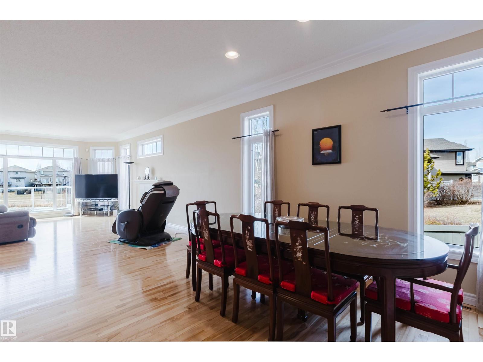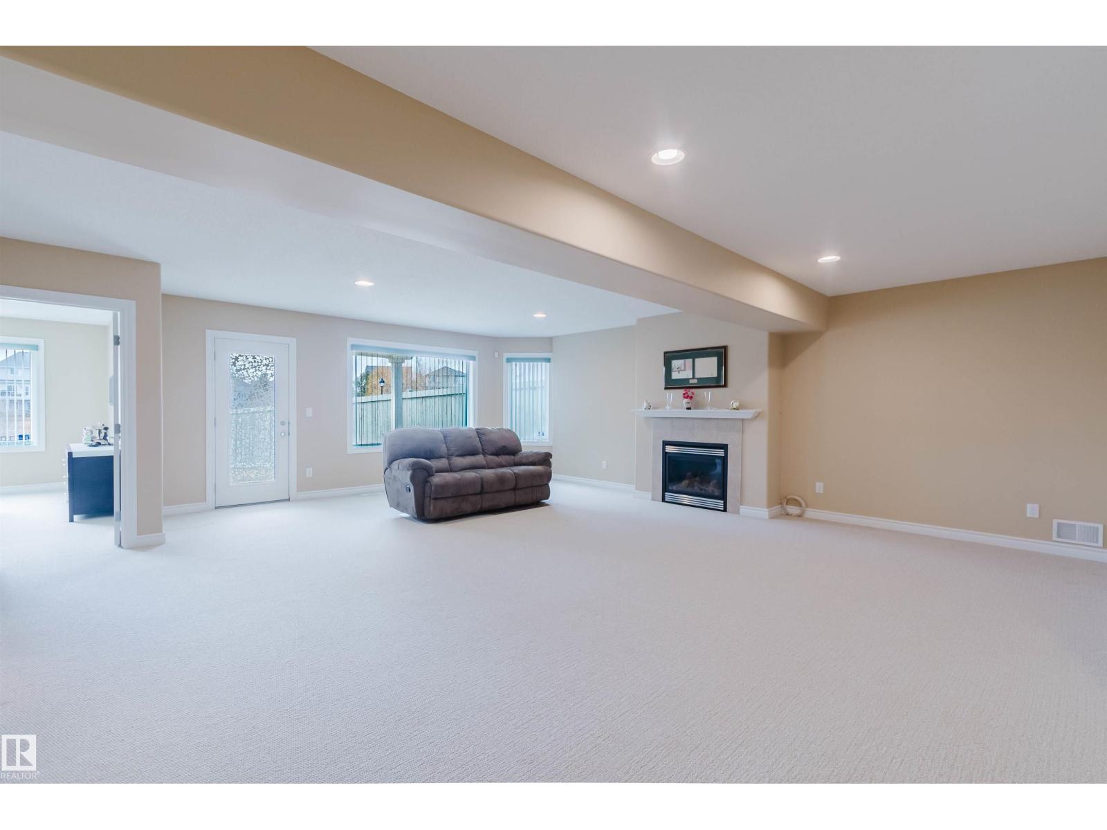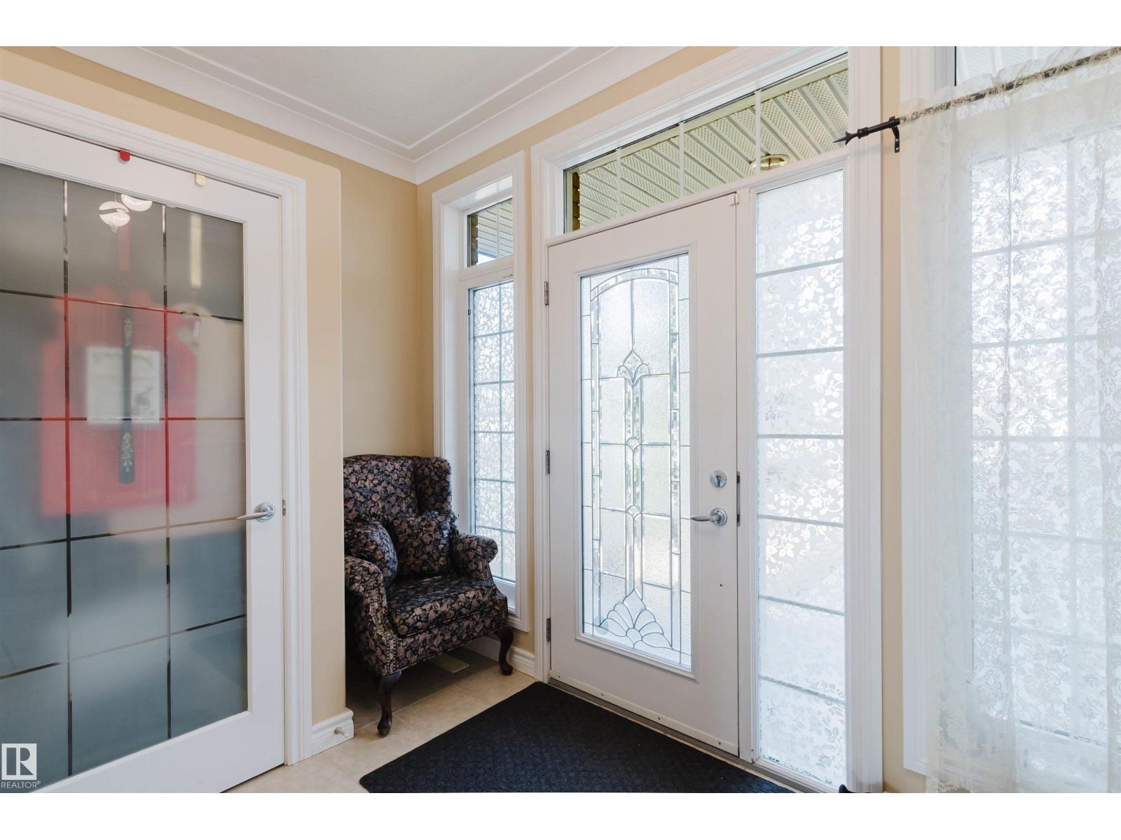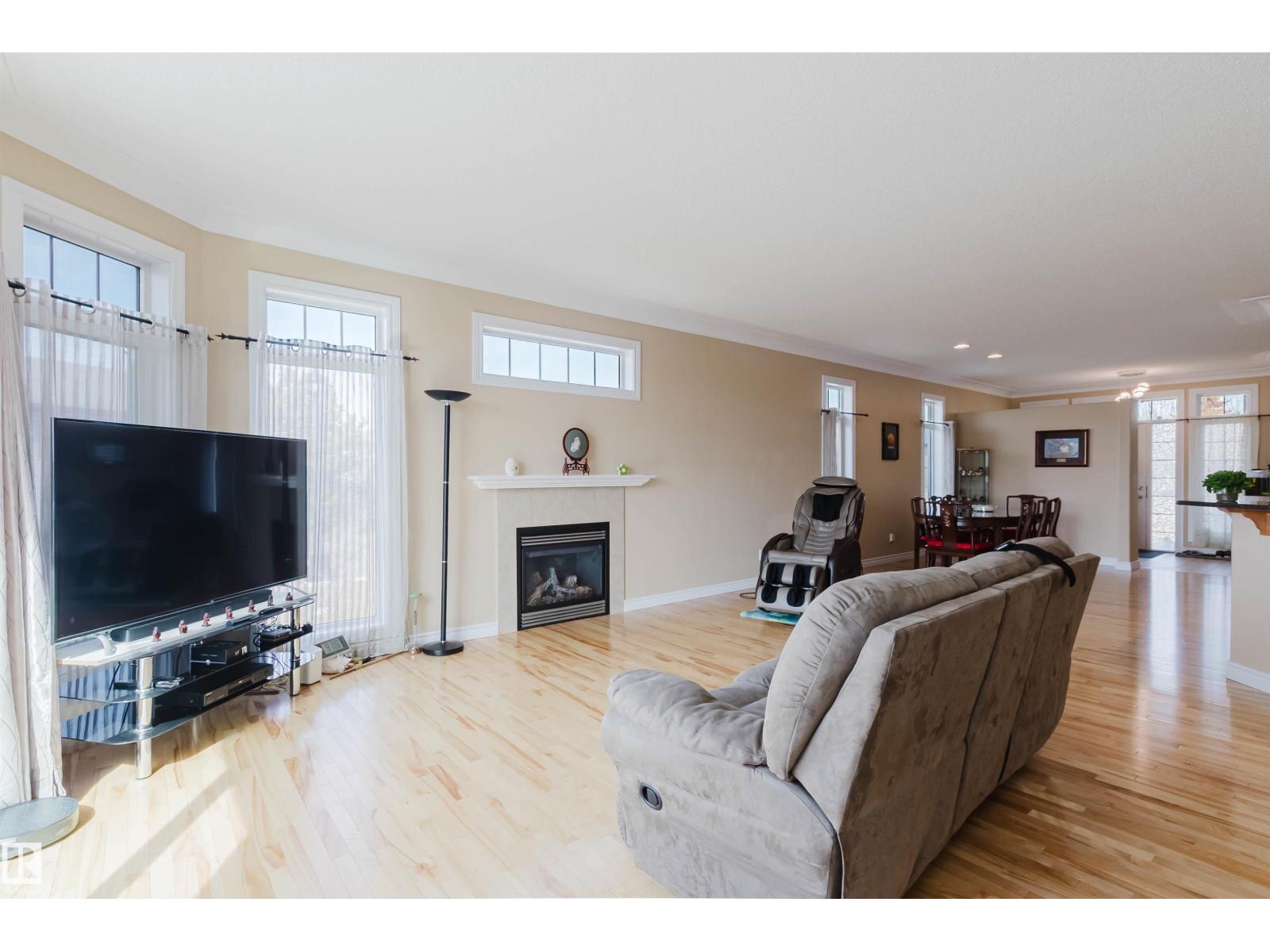 Rare opportunity in the prestigious Brass III Sandin Cove! This former show home is a stunning single-family walkout bungalow situated on a massive 7,168 sq. ft. lot—one of the largest in the area—positioned perfectly at the dragon’s head of the row. Backing directly onto a tranquil pond and scenic trails, this south-facing gem features over 3,100 sq. ft. of finished living space. Enjoy soaring ceilings, expansive Low-E windows, and elegant crown moulding throughout. The main floor offers a primary suite with a 5-piece ensuite, a second bedroom, and laundry. The builder-finished walkout basement includes a massive rec room, two large bedrooms, and a full bath. Practical perks include a heated garage with floor drains and a $140 HOA that handles all snow removal, irrigation, and landscaping. Experience low-maintenance luxury in South Terwillegar. This rare, move-in-ready property combines the privacy of a detached home with the ease of a villa. (id:63190)
