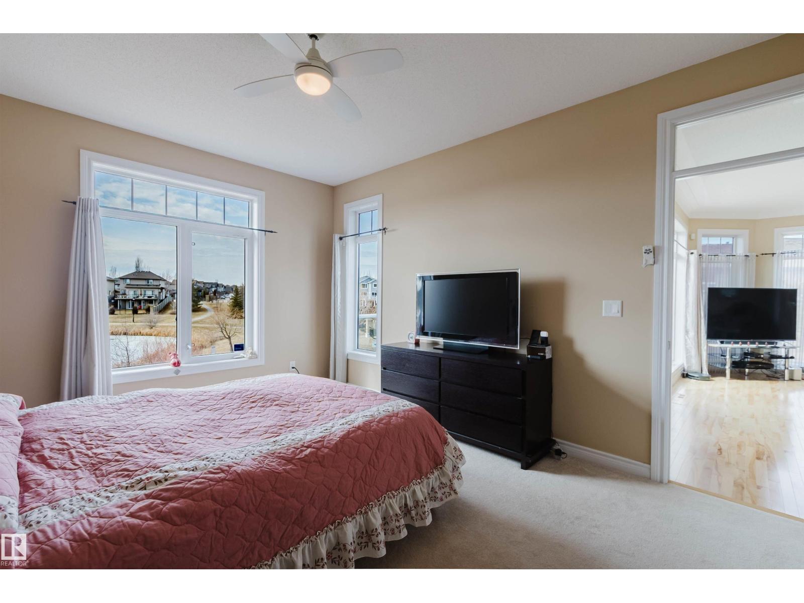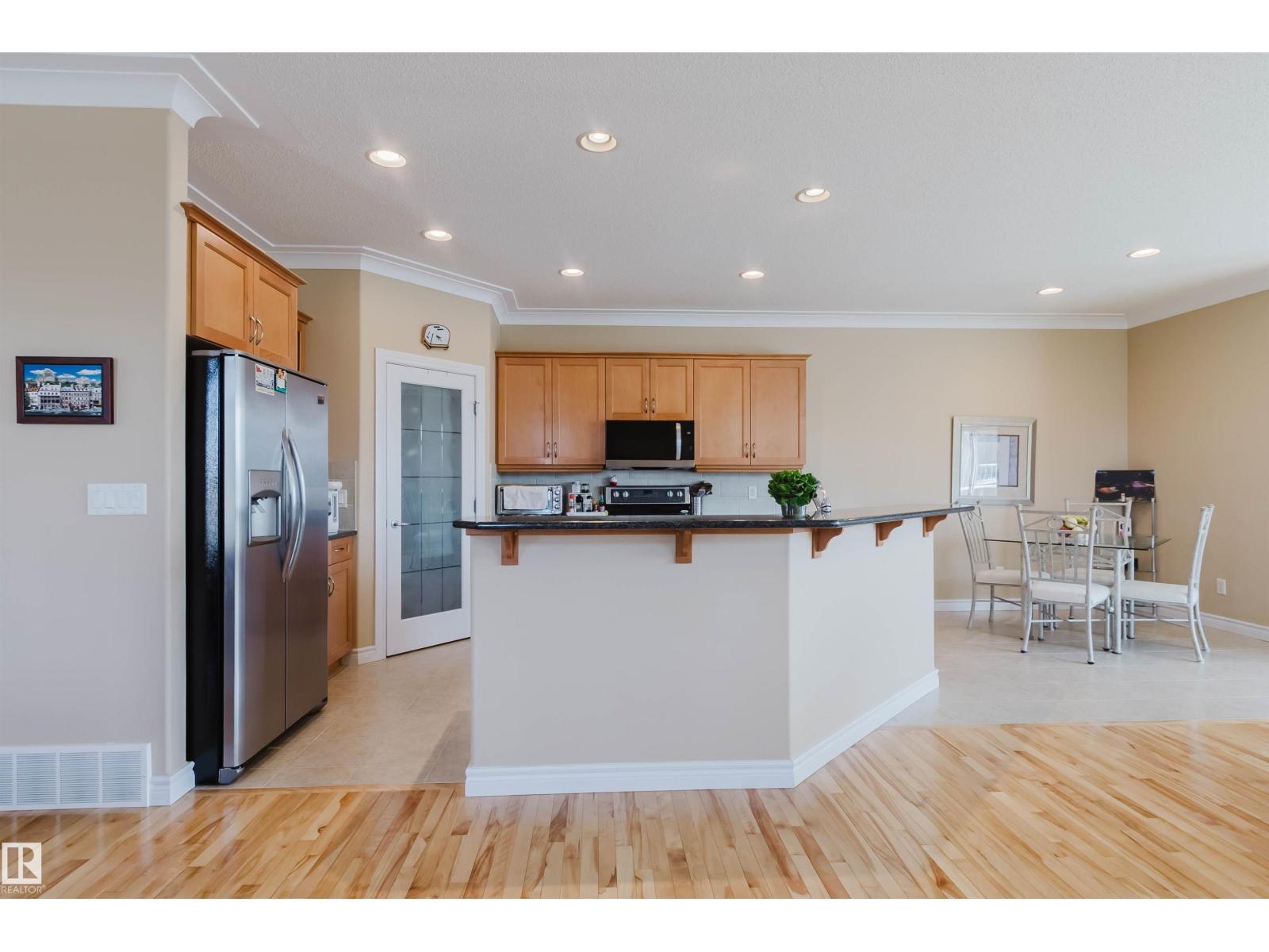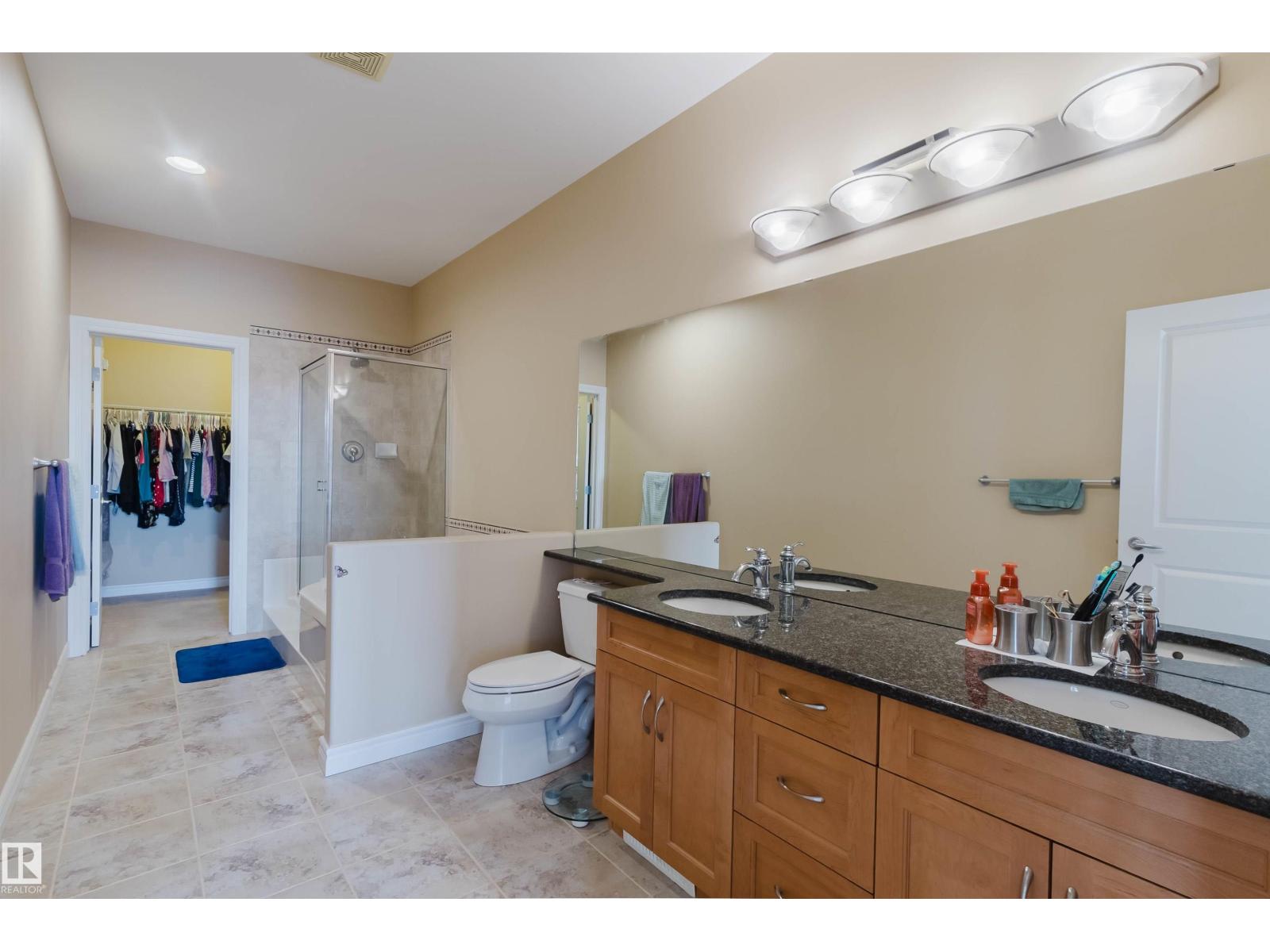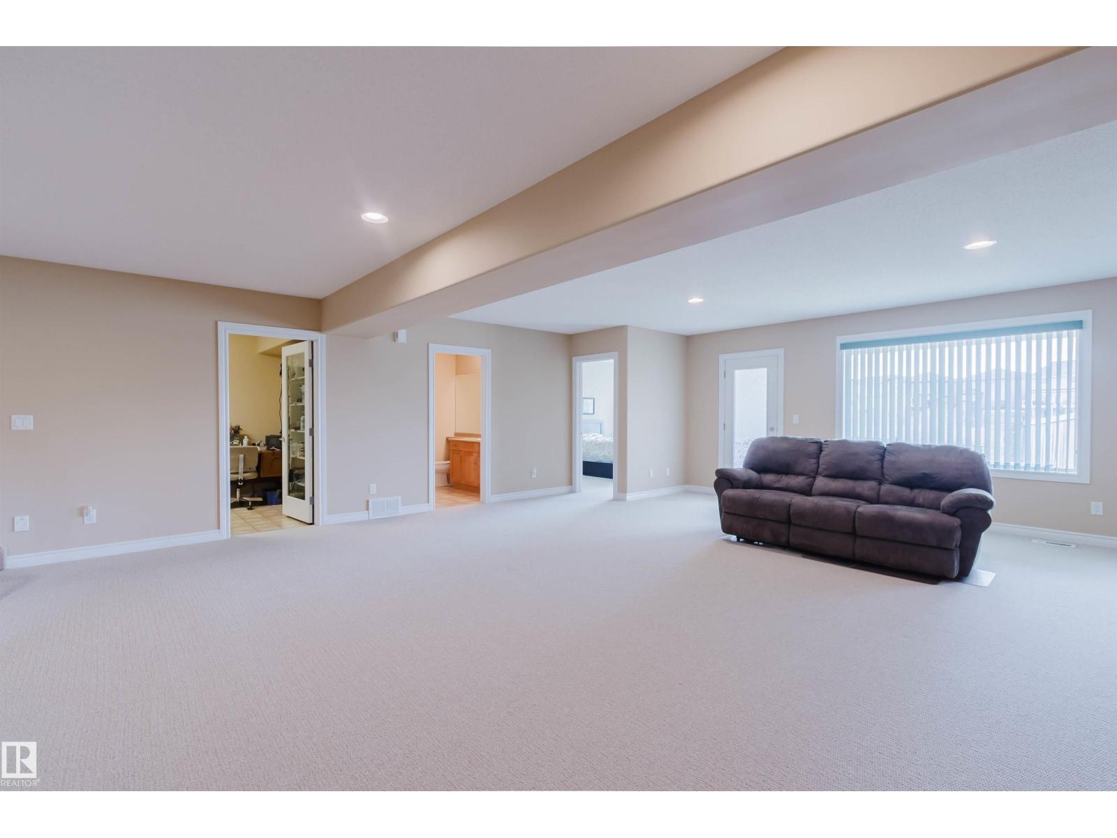 Rare opportunity in the prestigious Brass III Sandin Cove! This former show home is a stunning single-family walkout bungalow situated on a massive 7,168 sq. ft. lot—one of the largest in the area—positioned perfectly at the dragon’s head of the row. Backing directly onto a tranquil pond and scenic trails, this south-facing gem features over 3,100 sq. ft. of finished living space. Enjoy soaring ceilings, expansive Low-E windows, and elegant crown moulding throughout. The main floor offers a primary suite with a 5-piece ensuite, a second bedroom, and laundry. The builder-finished walkout basement includes a massive rec room, two large bedrooms, and a full bath. Practical perks include a heated garage with floor drains and a $140 HOA that handles all snow removal, irrigation, and landscaping. Experience low-maintenance luxury in South Terwillegar. This rare, move-in-ready property combines the privacy of a detached home with the ease of a villa. (id:63190)