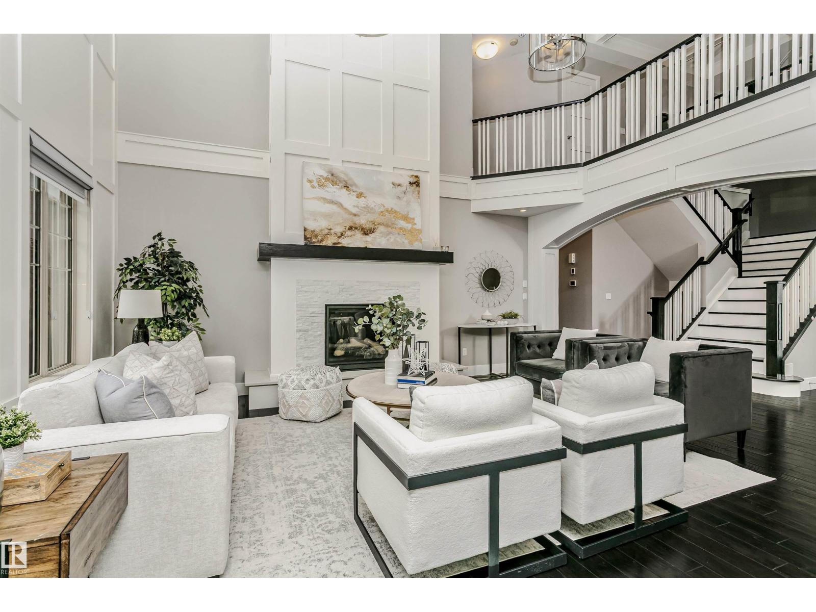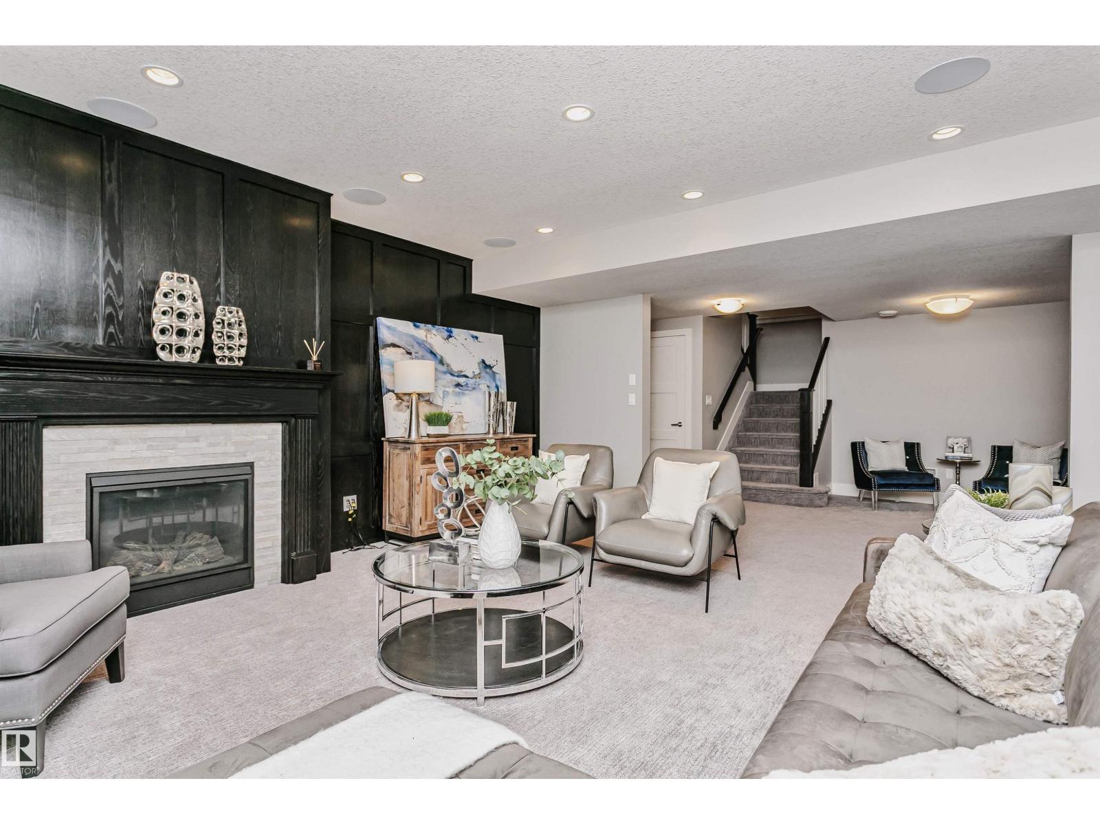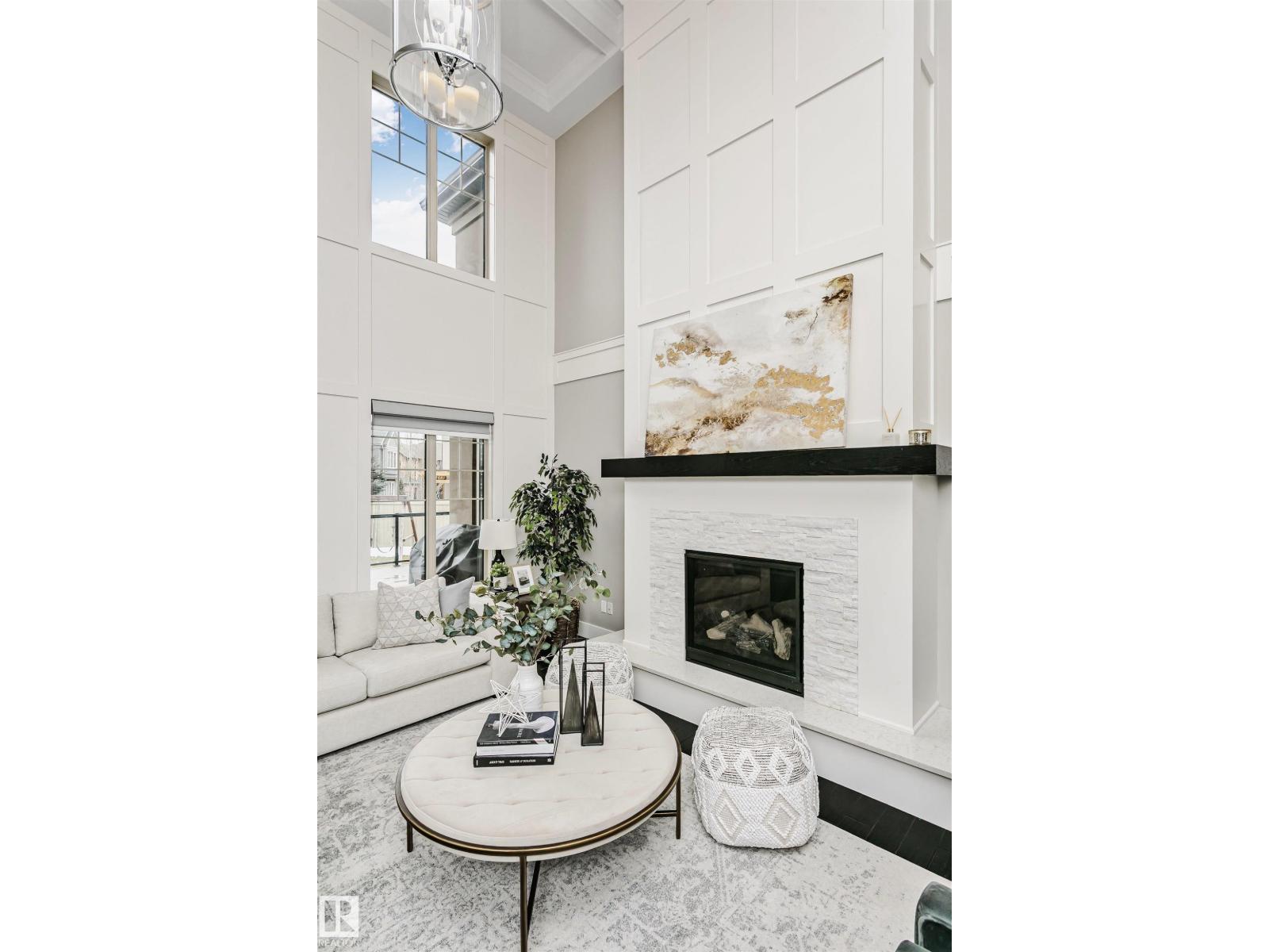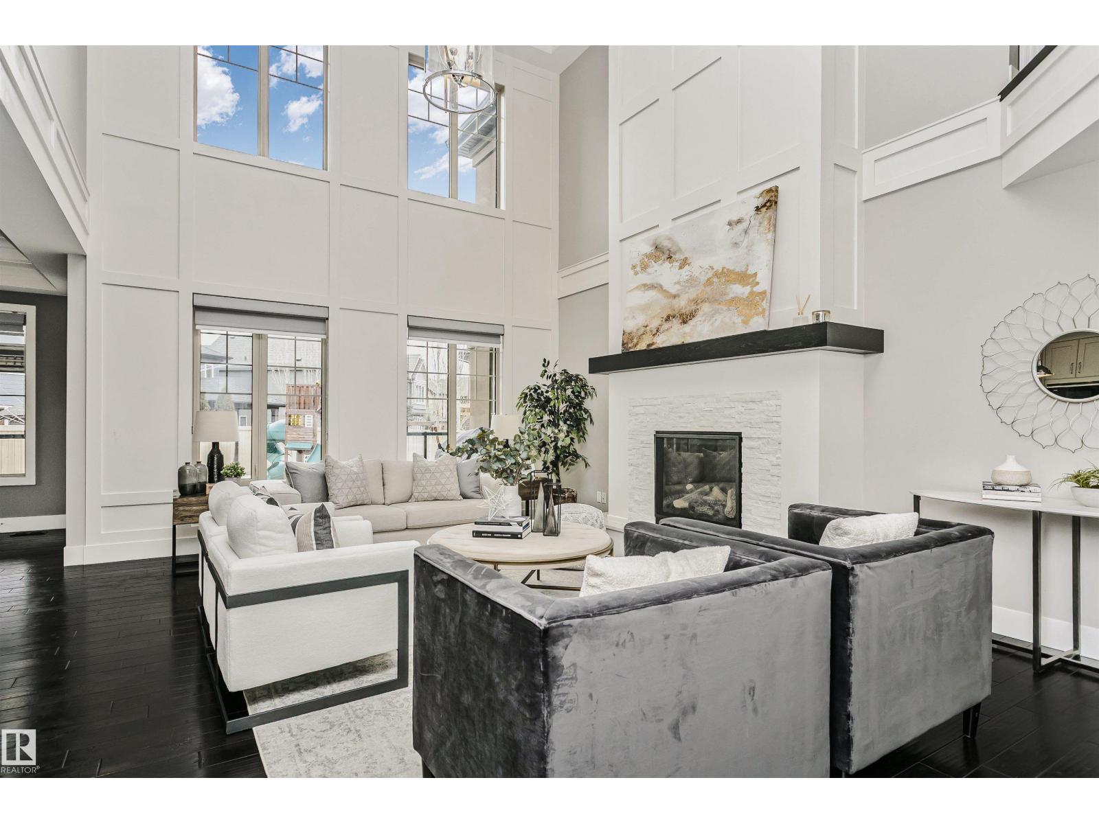 Welcome to this architecturally stunning residence in the prestigious community of Keswick on the River. Boasting over 4,950 sqft of refined living space (3,350+ above-grade), this home offers a rare 300+ sqft main-floor bedroom with a full ensuite and private coffee bar—perfect for multi-generational living or guests. The grand 2-story living room is flooded with natural light, featuring a modern fireplace wall that anchors the open-concept layout. A chef-inspired kitchen awaits with a massive granite island and premium built-in appliances. Retreat upstairs to the opulent primary suite, complete with a cozy fireplace, walk-in closet, and a 5-piece spa-inspired ensuite. Two additional spacious bedrooms and a large bonus room complete the upper level. The builder-finished basement is an entertainer's dream with a rec room, custom bar, gym, and guest room. Outside, enjoy a composite deck with gazebo and a landscaped yard. Complete with a triple-car garage and just steps to river valley trails! (id:63190)