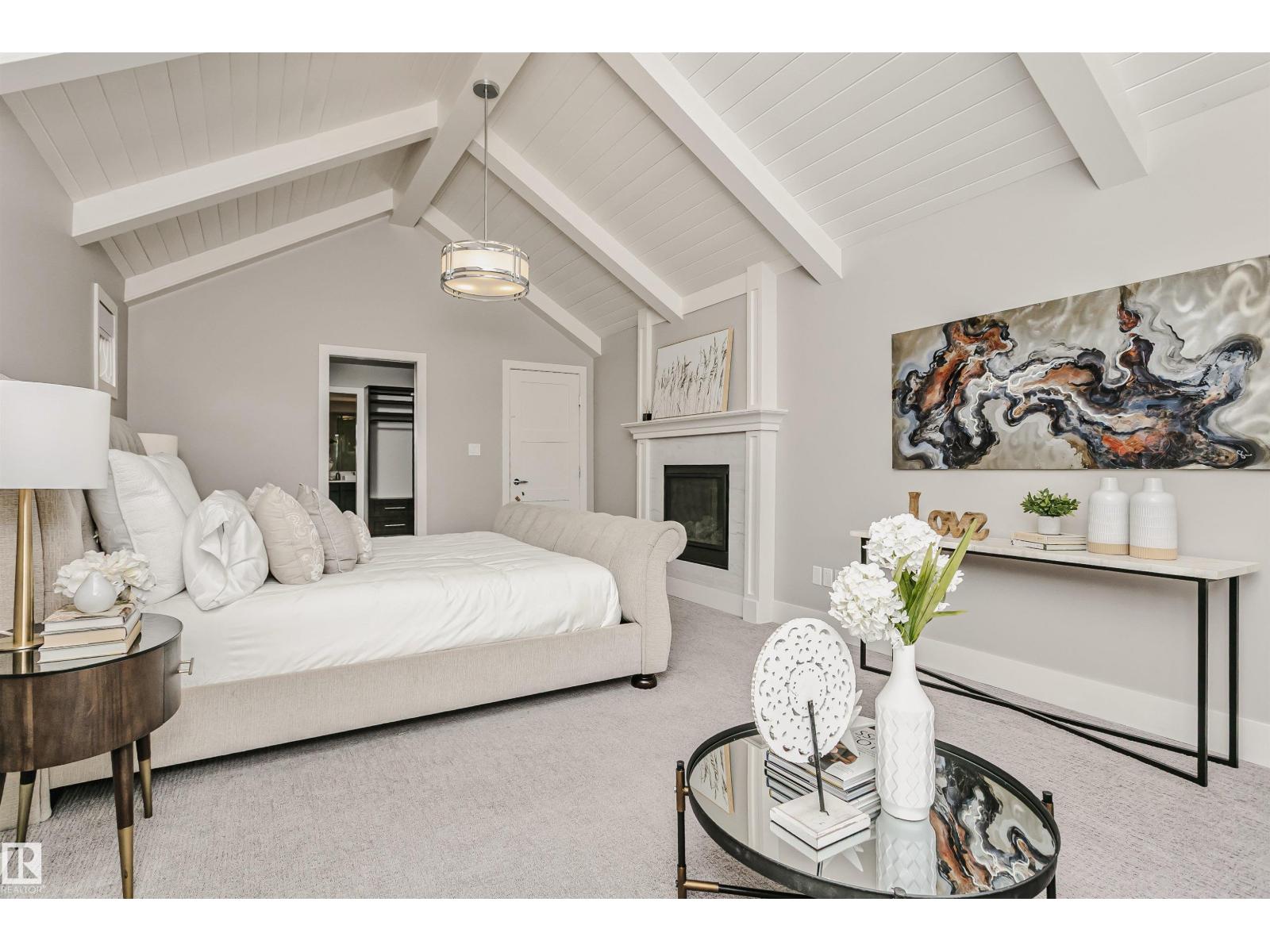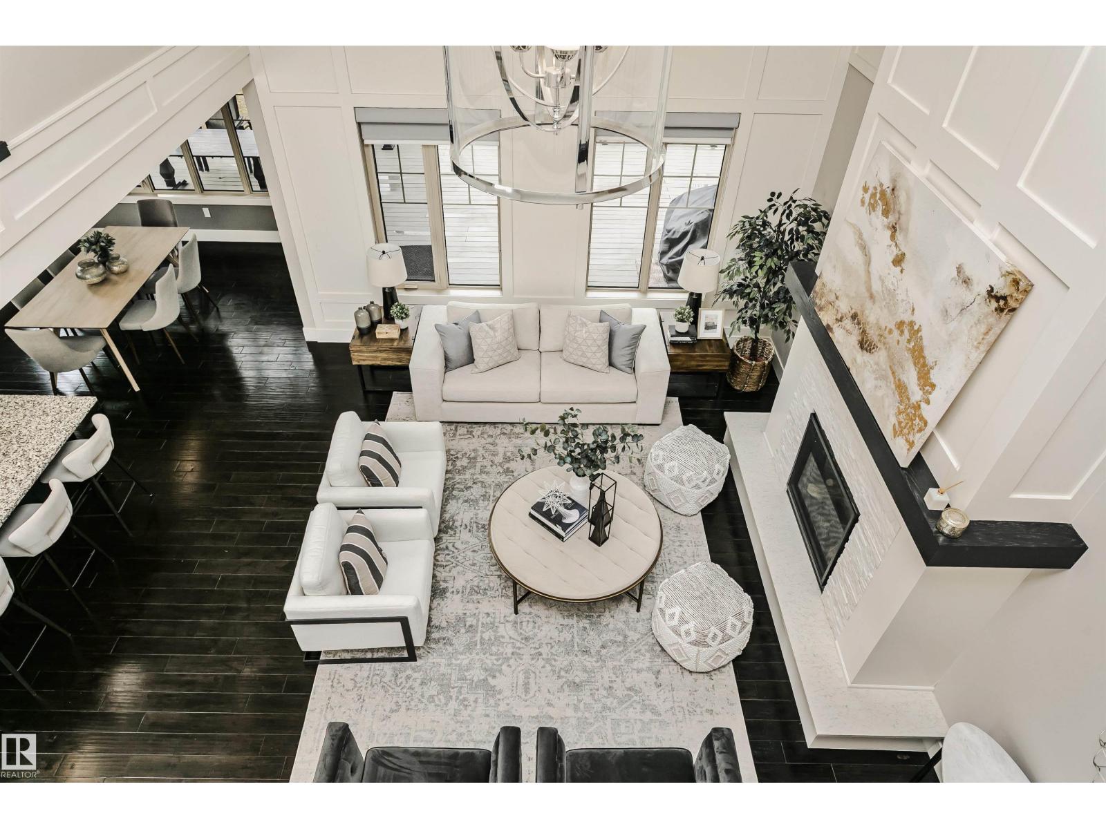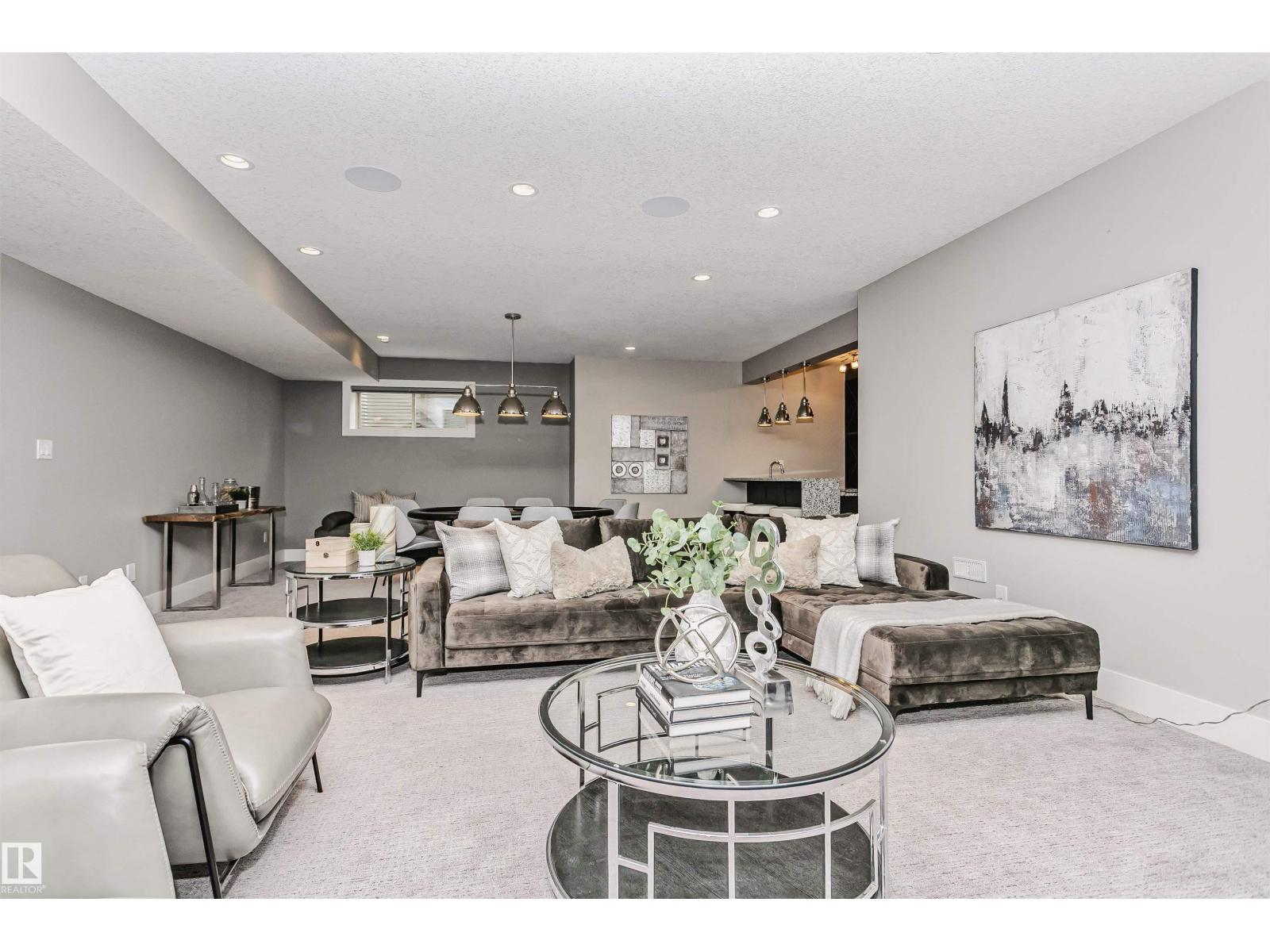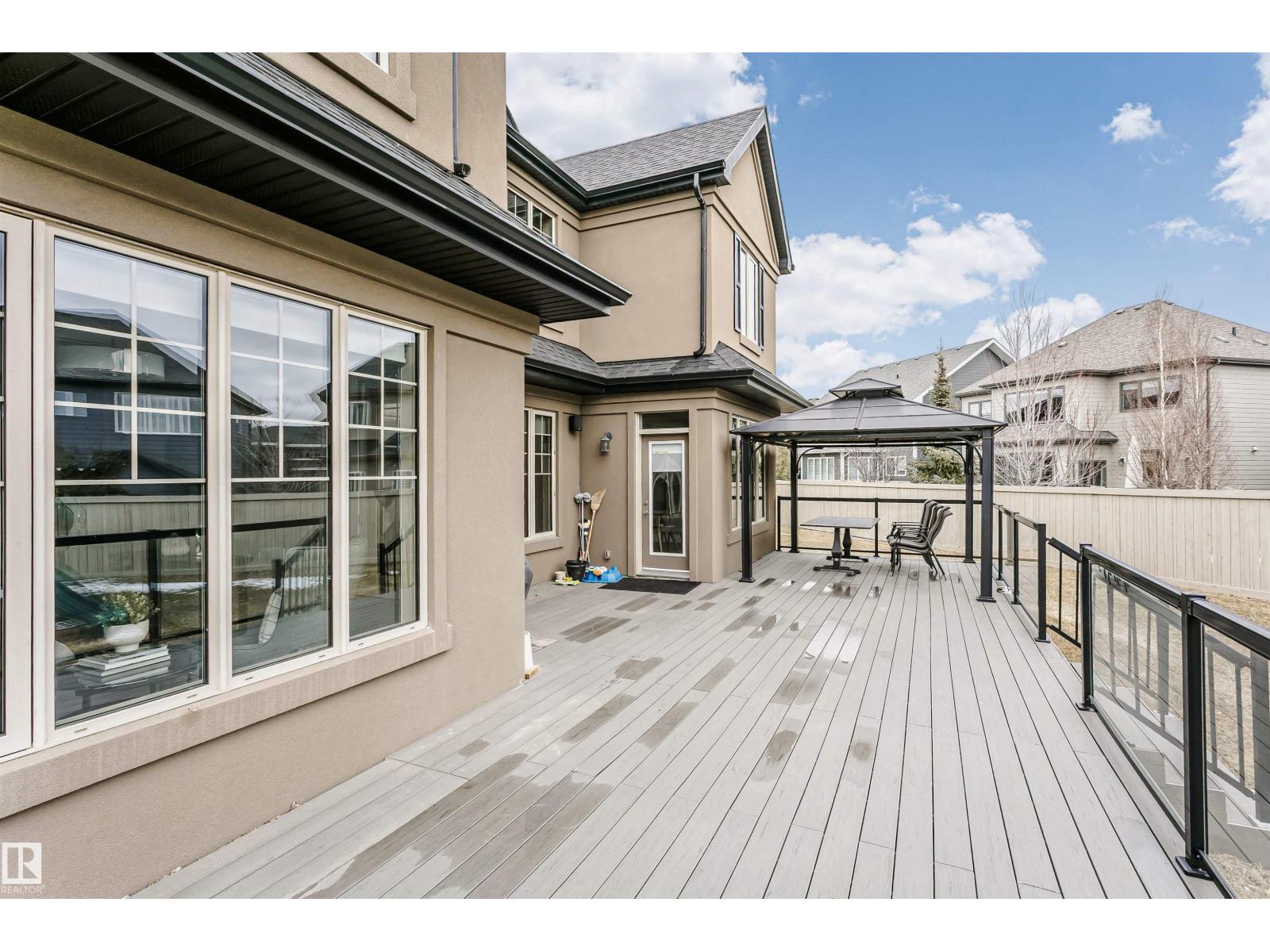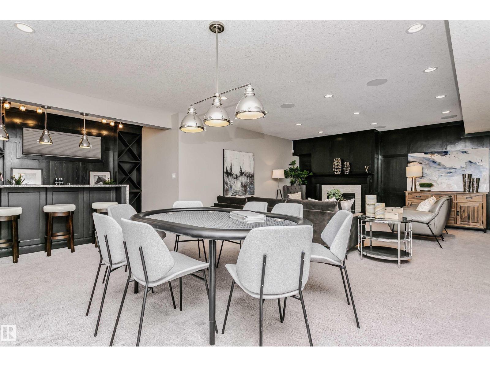 Welcome to this architecturally stunning residence in the prestigious community of Keswick on the River. Boasting over 4,950 sqft of refined living space (3,350+ above-grade), this home offers a rare 300+ sqft main-floor bedroom with a full ensuite and private coffee bar—perfect for multi-generational living or guests. The grand 2-story living room is flooded with natural light, featuring a modern fireplace wall that anchors the open-concept layout. A chef-inspired kitchen awaits with a massive granite island and premium built-in appliances. Retreat upstairs to the opulent primary suite, complete with a cozy fireplace, walk-in closet, and a 5-piece spa-inspired ensuite. Two additional spacious bedrooms and a large bonus room complete the upper level. The builder-finished basement is an entertainer's dream with a rec room, custom bar, gym, and guest room. Outside, enjoy a composite deck with gazebo and a landscaped yard. Complete with a triple-car garage and just steps to river valley trails! (id:63190)