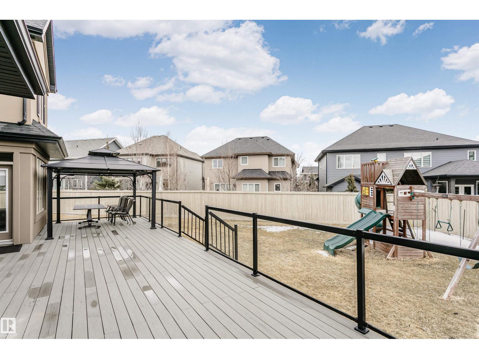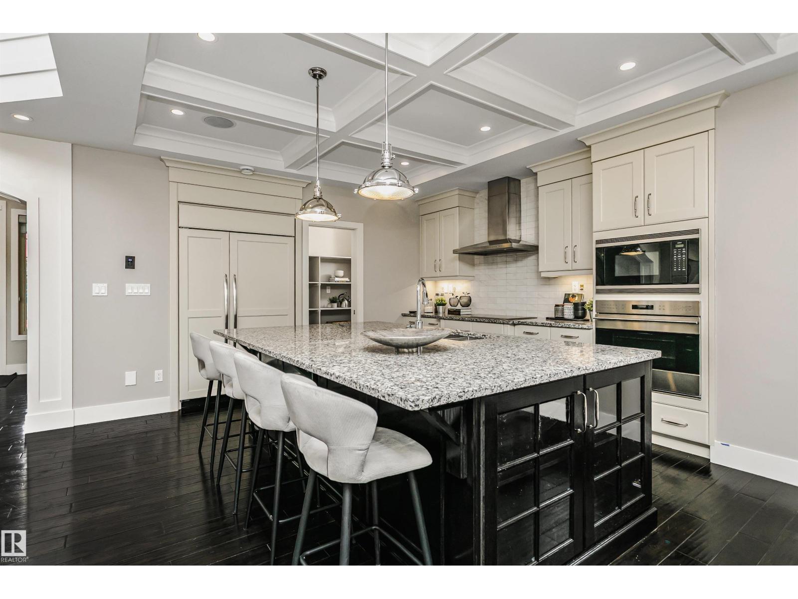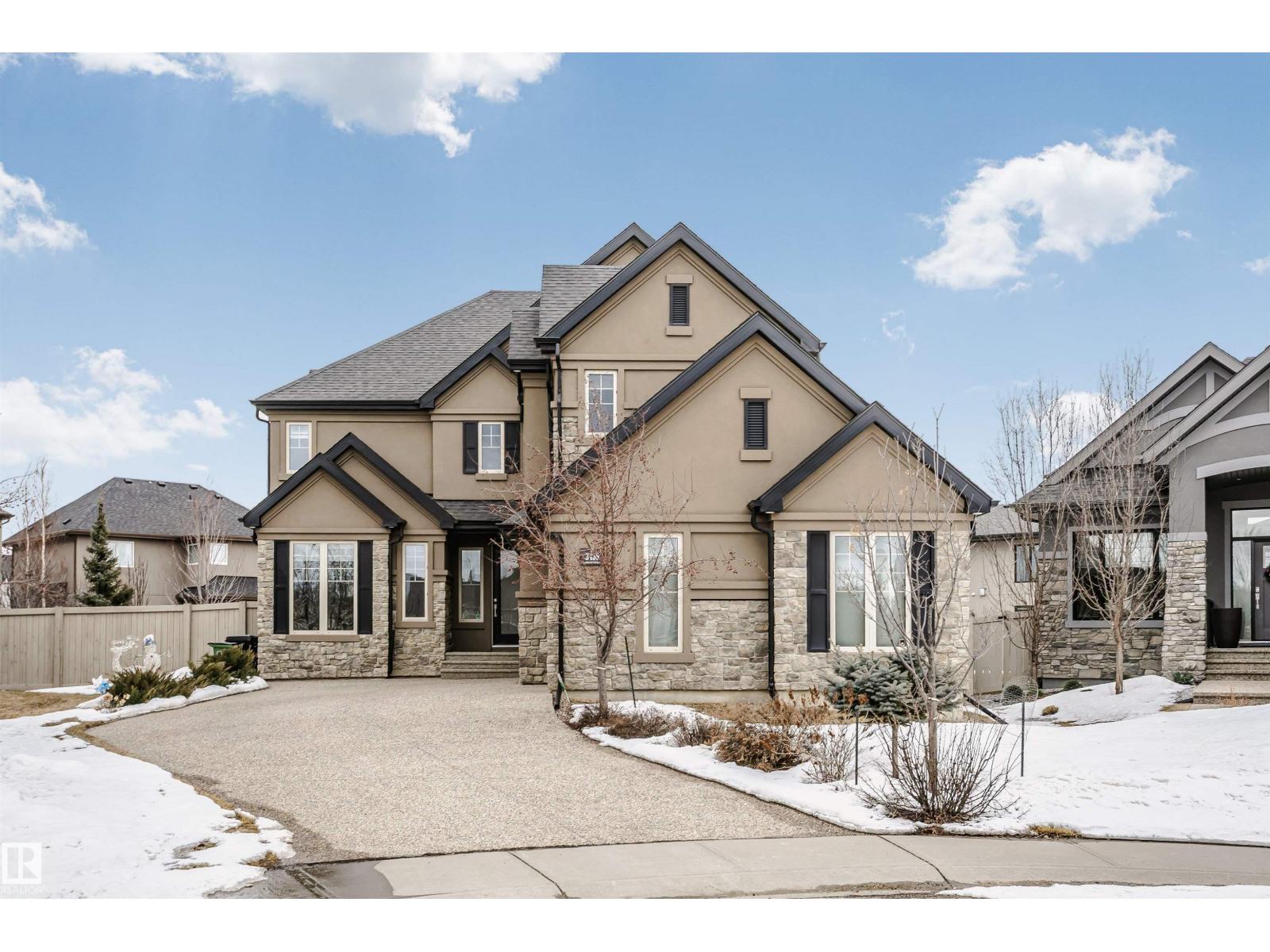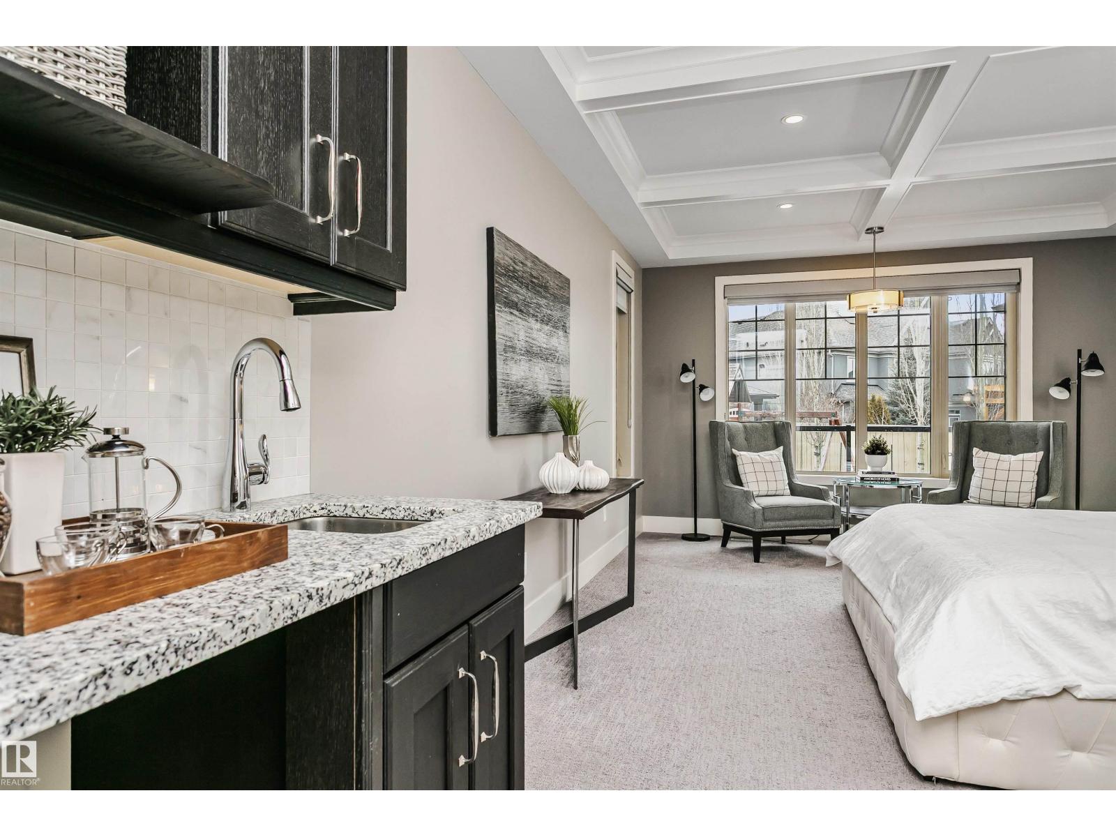Welcome to this architecturally stunning residence in the prestigious community of Keswick on the River. Boasting over 4,950 sqft of refined living space (3,350+ above-grade), this home offers a rare 300+ sqft main-floor bedroom with a full ensuite and private coffee bar—perfect for multi-generational living or guests. The grand 2-story living room is flooded with natural light, featuring a modern fireplace wall that anchors the open-concept layout. A chef-inspired kitchen awaits with a massive granite island and premium built-in appliances. Retreat upstairs to the opulent primary suite, complete with a cozy fireplace, walk-in closet, and a 5-piece spa-inspired ensuite. Two additional spacious bedrooms and a large bonus room complete the upper level. The builder-finished basement is an entertainer's dream with a rec room, custom bar, gym, and guest room. Outside, enjoy a composite deck with gazebo and a landscaped yard. Complete with a triple-car garage and just steps to river valley trails! (id:63190)