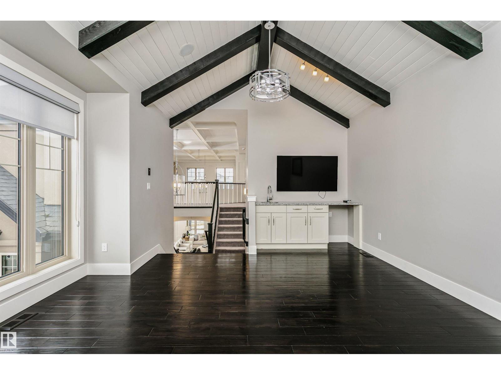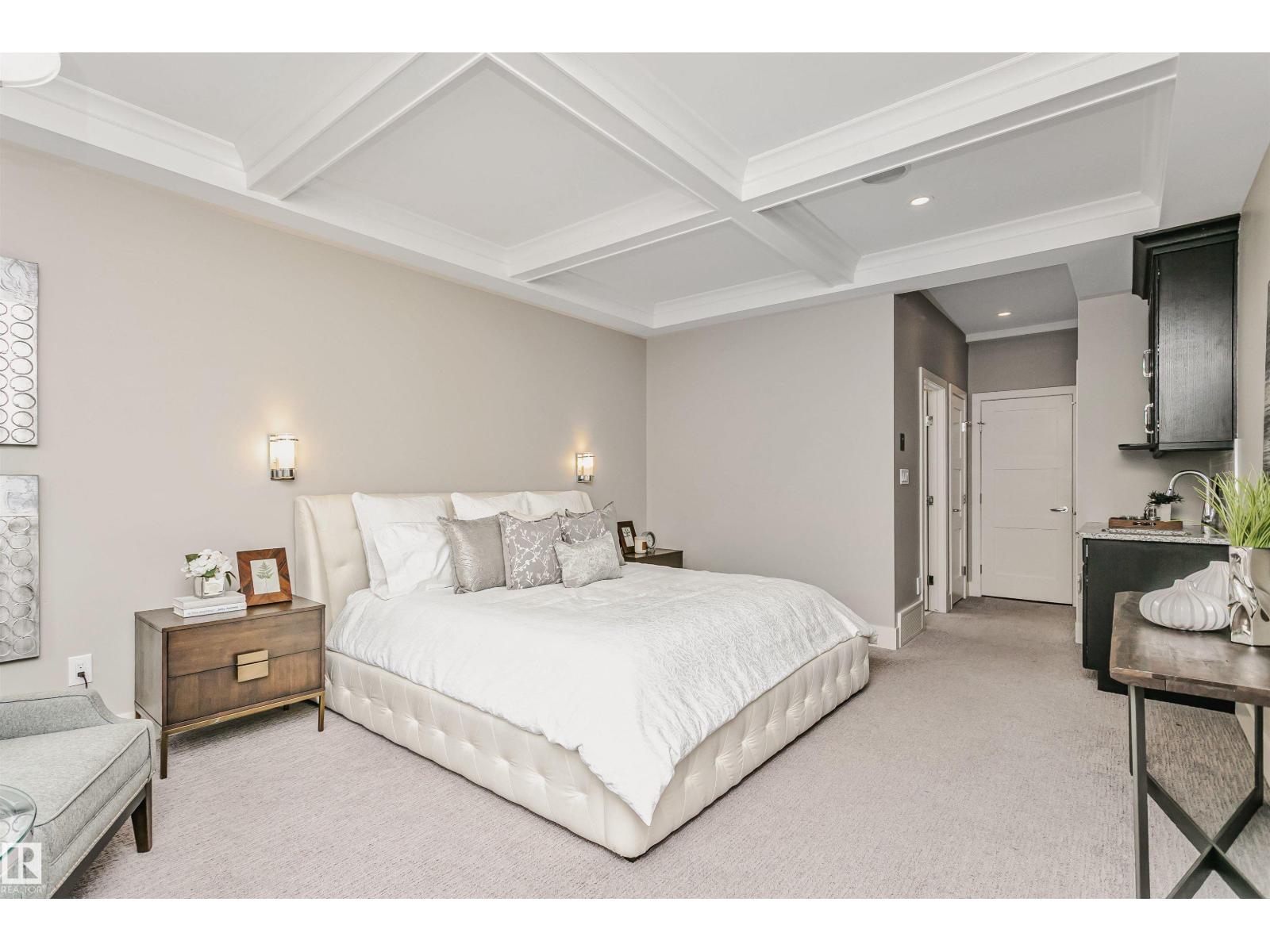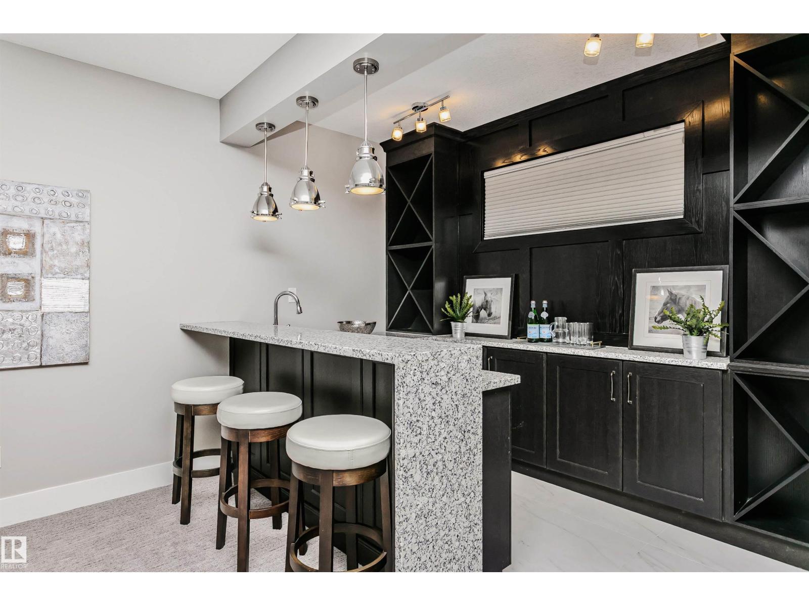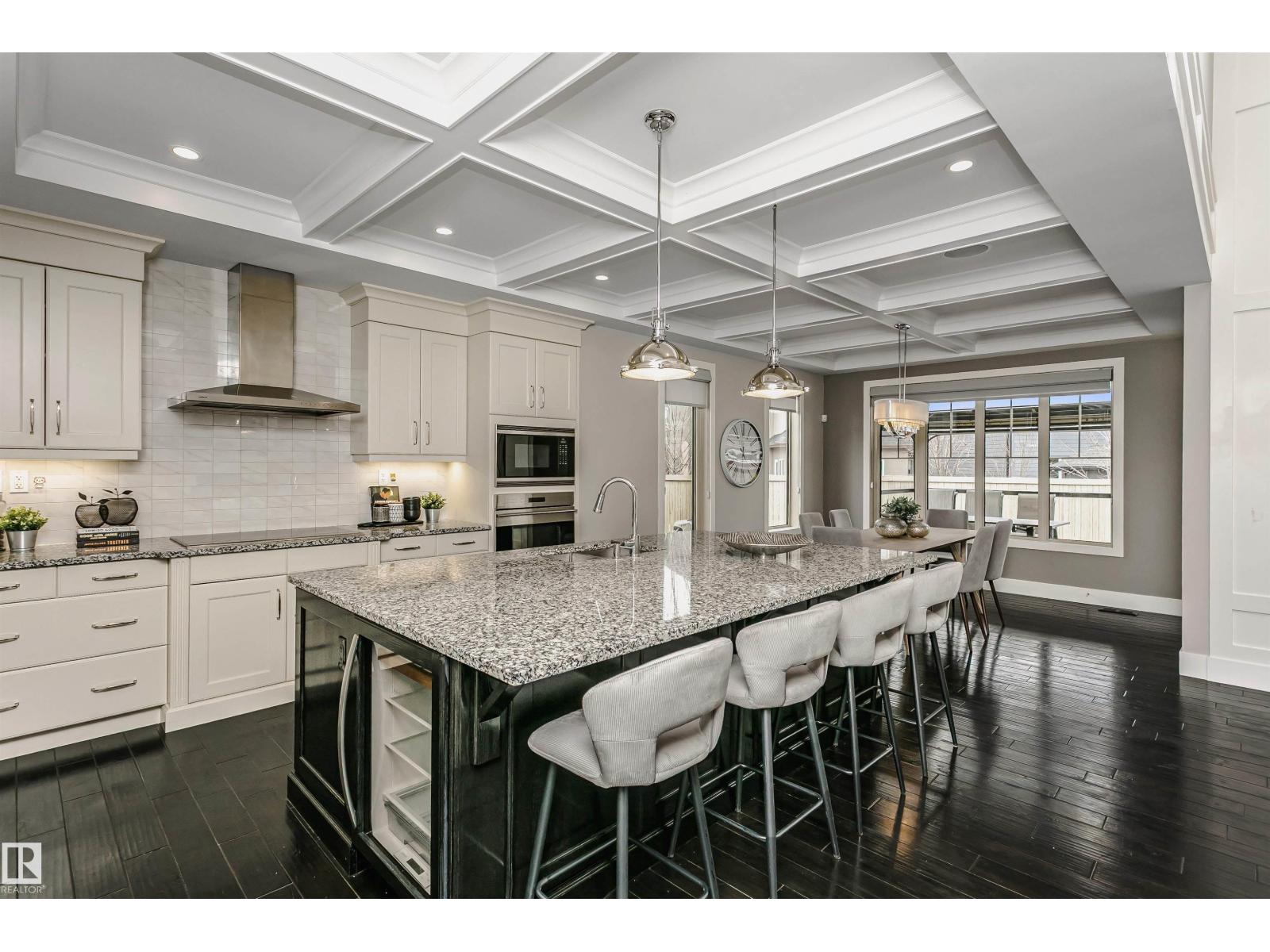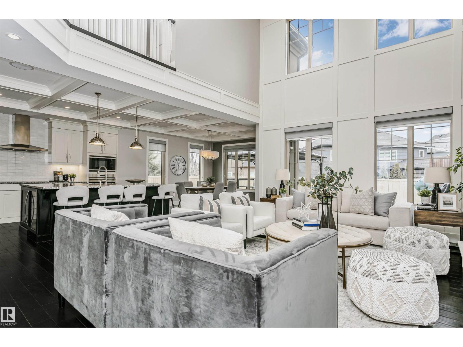 Welcome to this architecturally stunning residence in the prestigious community of Keswick on the River. Boasting over 4,950 sqft of refined living space (3,350+ above-grade), this home offers a rare 300+ sqft main-floor bedroom with a full ensuite and private coffee bar—perfect for multi-generational living or guests. The grand 2-story living room is flooded with natural light, featuring a modern fireplace wall that anchors the open-concept layout. A chef-inspired kitchen awaits with a massive granite island and premium built-in appliances. Retreat upstairs to the opulent primary suite, complete with a cozy fireplace, walk-in closet, and a 5-piece spa-inspired ensuite. Two additional spacious bedrooms and a large bonus room complete the upper level. The builder-finished basement is an entertainer's dream with a rec room, custom bar, gym, and guest room. Outside, enjoy a composite deck with gazebo and a landscaped yard. Complete with a triple-car garage and just steps to river valley trails! (id:63190)