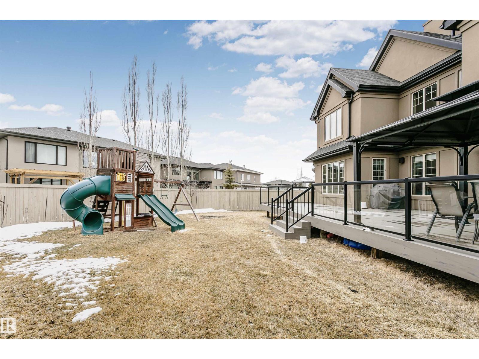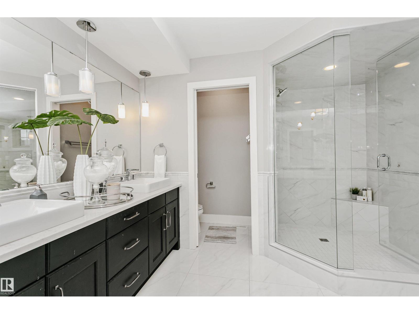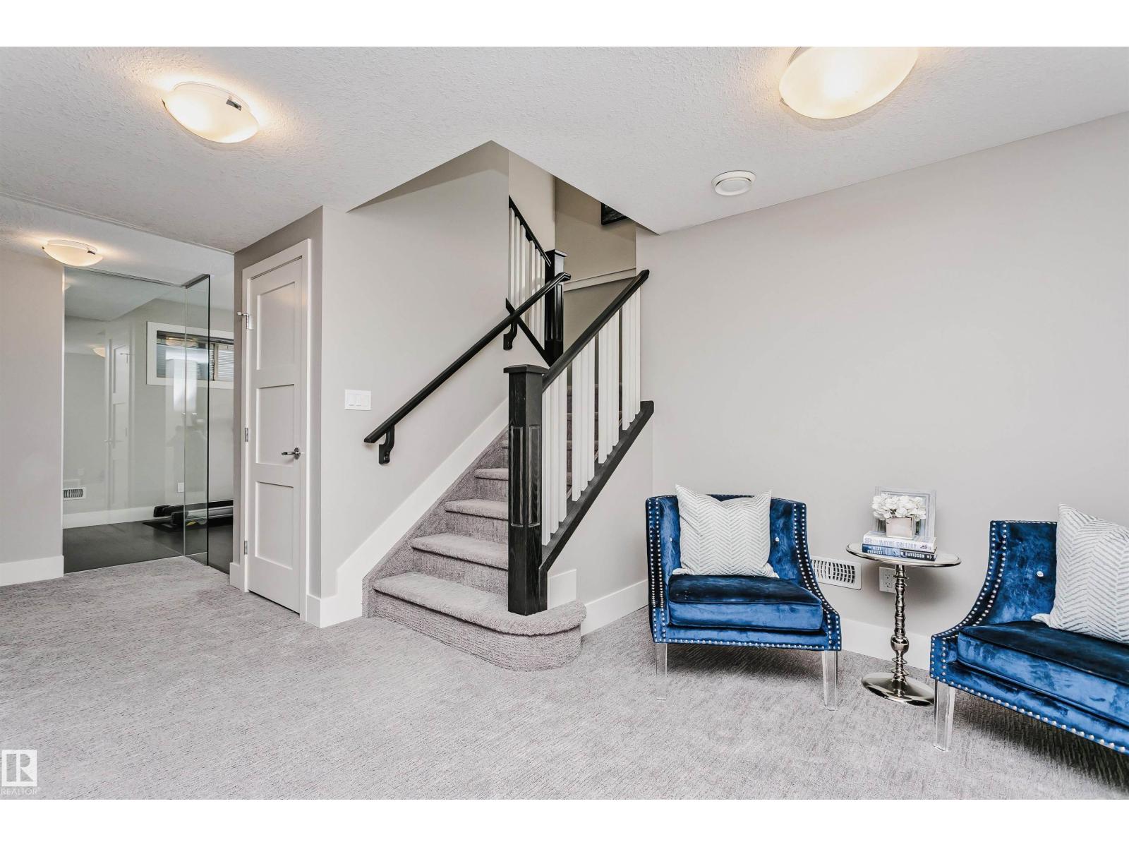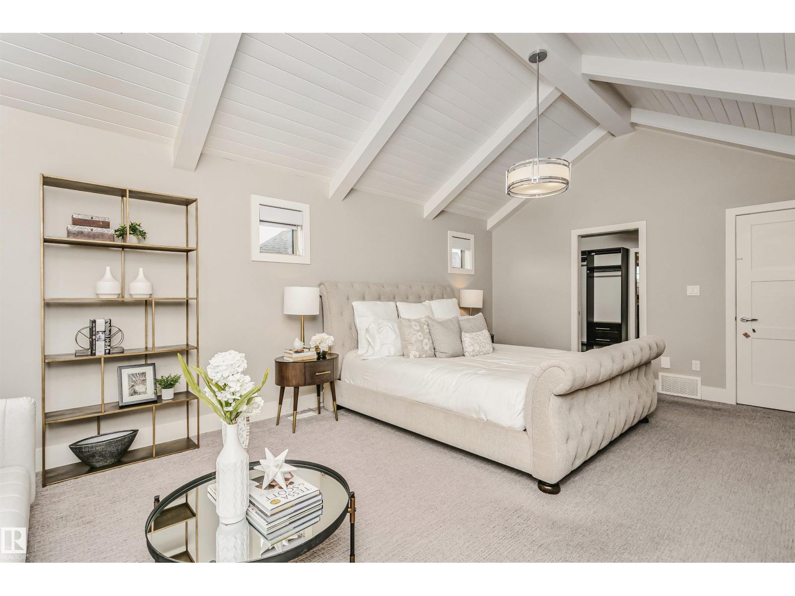 Welcome to this architecturally stunning residence in the prestigious community of Keswick on the River. Boasting over 4,950 sqft of refined living space (3,350+ above-grade), this home offers a rare 300+ sqft main-floor bedroom with a full ensuite and private coffee bar—perfect for multi-generational living or guests. The grand 2-story living room is flooded with natural light, featuring a modern fireplace wall that anchors the open-concept layout. A chef-inspired kitchen awaits with a massive granite island and premium built-in appliances. Retreat upstairs to the opulent primary suite, complete with a cozy fireplace, walk-in closet, and a 5-piece spa-inspired ensuite. Two additional spacious bedrooms and a large bonus room complete the upper level. The builder-finished basement is an entertainer's dream with a rec room, custom bar, gym, and guest room. Outside, enjoy a composite deck with gazebo and a landscaped yard. Complete with a triple-car garage and just steps to river valley trails! (id:63190)